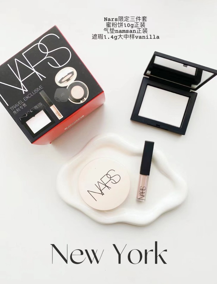 👑NARS限定套装 👍独家彩妆限定三件套 ✅nars家王牌单品集合 🙌粉饼质地细腻柔滑 ✨新款气垫(namsan,粉一白) 🔥香草遮瑕,三合一套装,非常划算噢~ 【套装包括】:粉饼10g+气垫+遮瑕1.4g小样