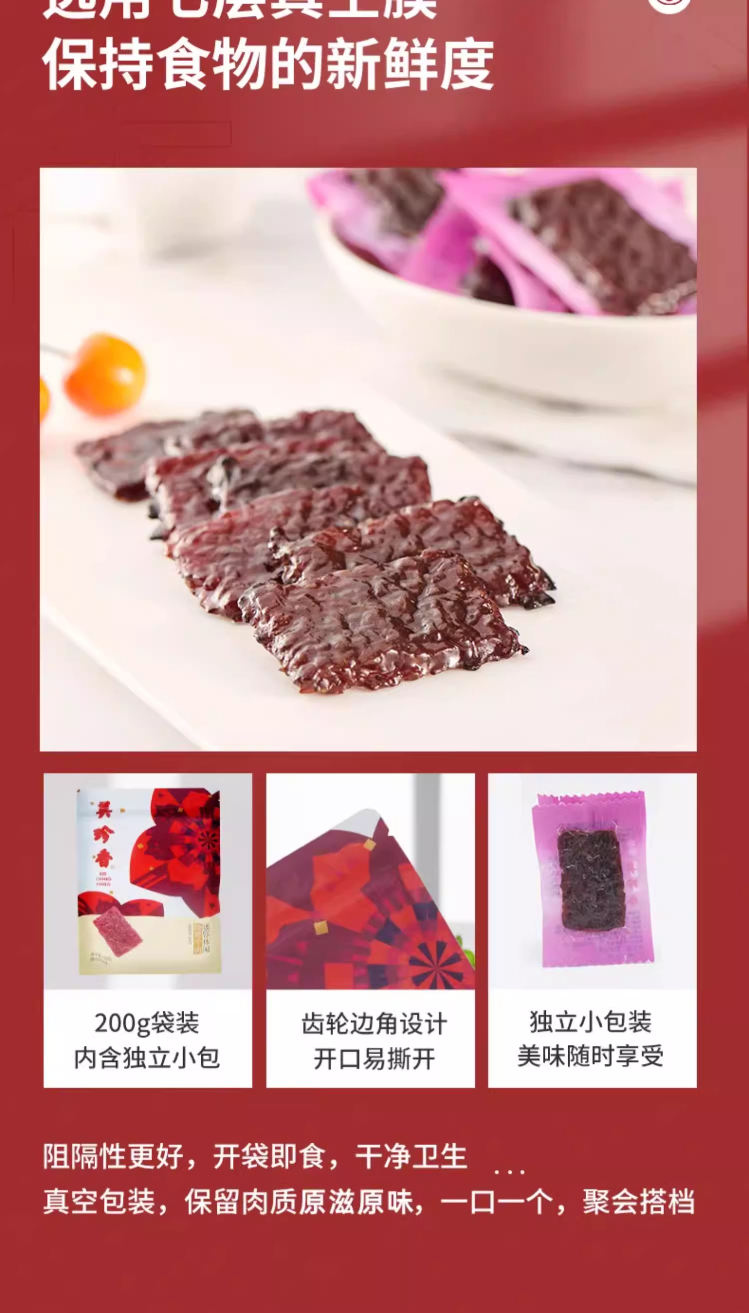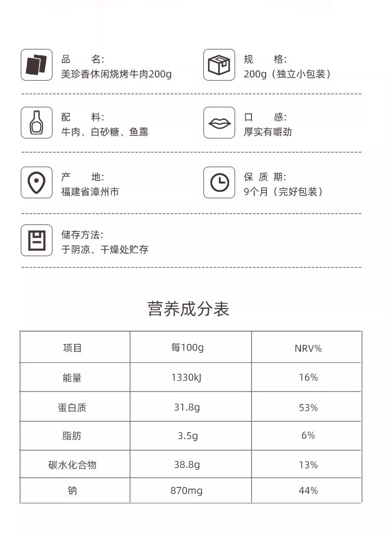 美珍香迷你休闲烧烤牛肉200g熟食小吃零食非牛肉脯肉干