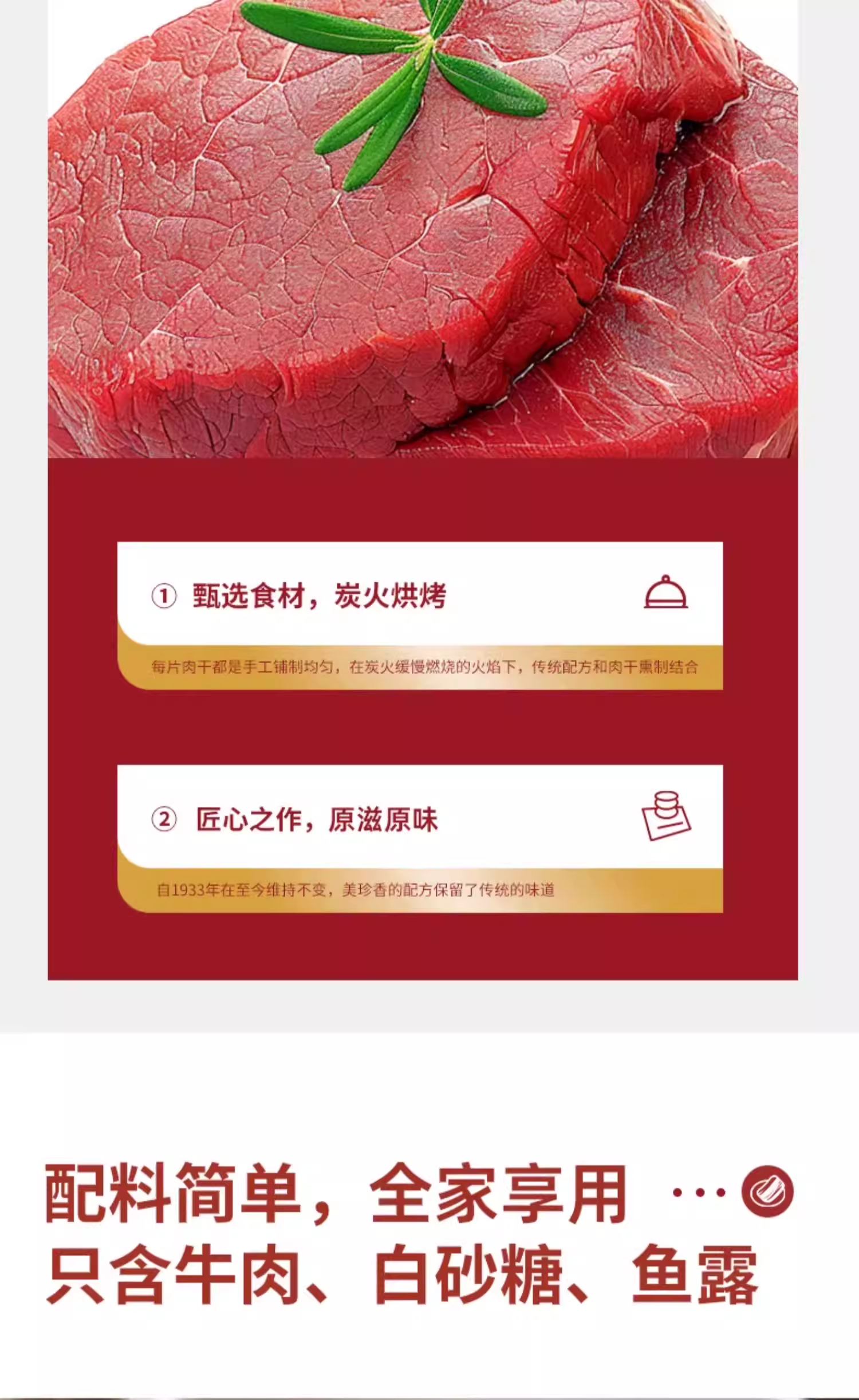【买2送1】美珍香迷你休闲烧烤牛肉90g小包装零食(非牛肉脯,手工铺制牛肉)
