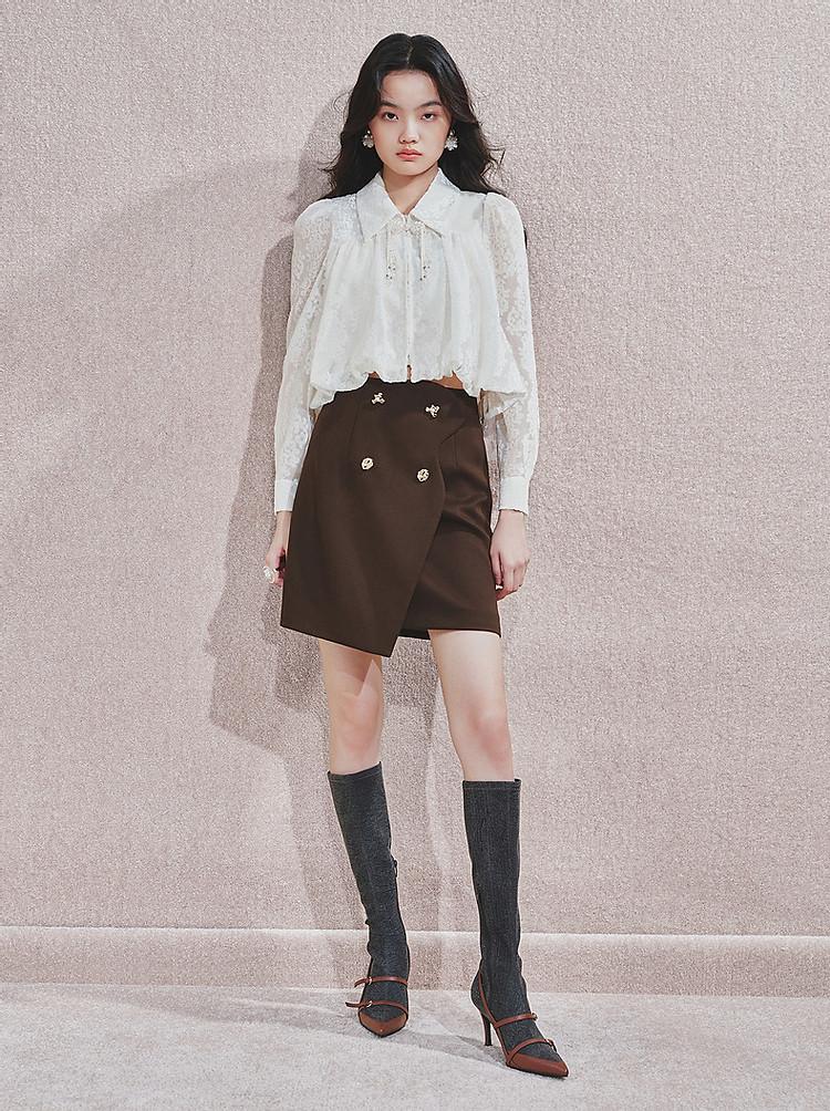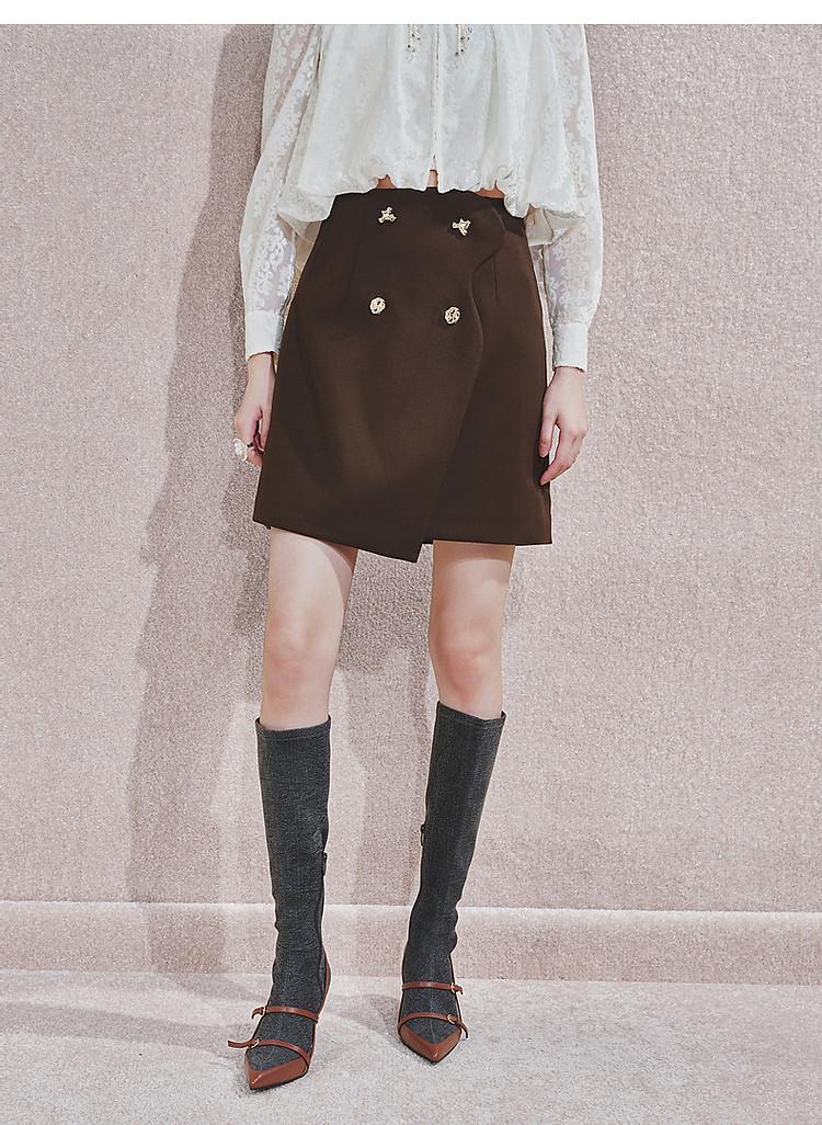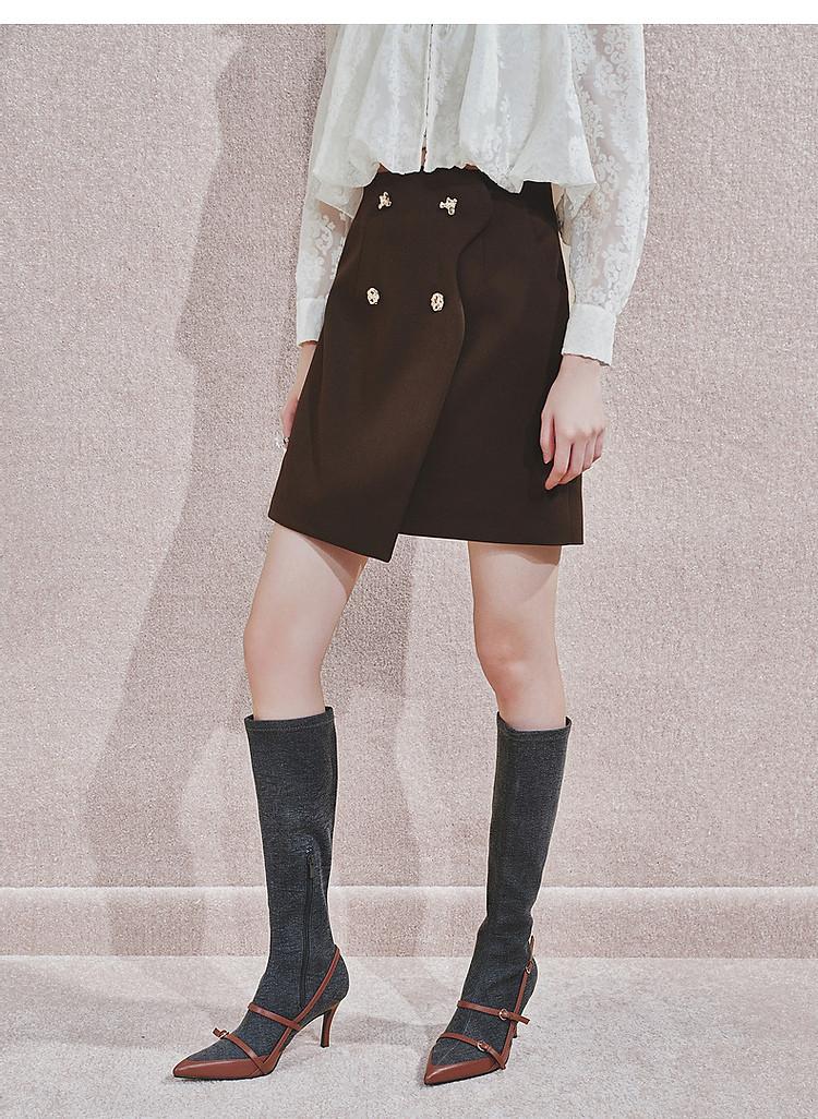 MAXRIENY2025秋冬新款复古气质通勤包臀A字半裙双排扣收腰显瘦