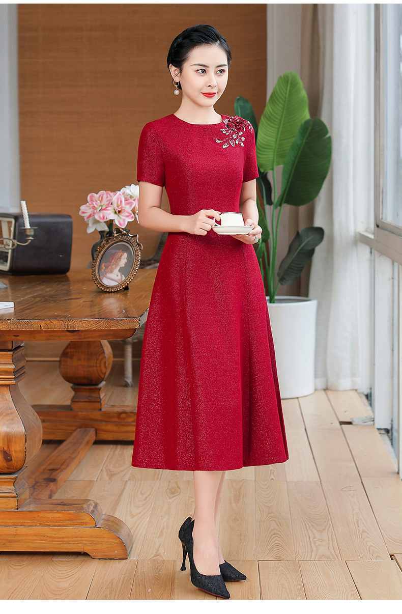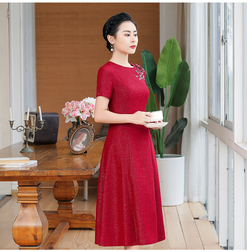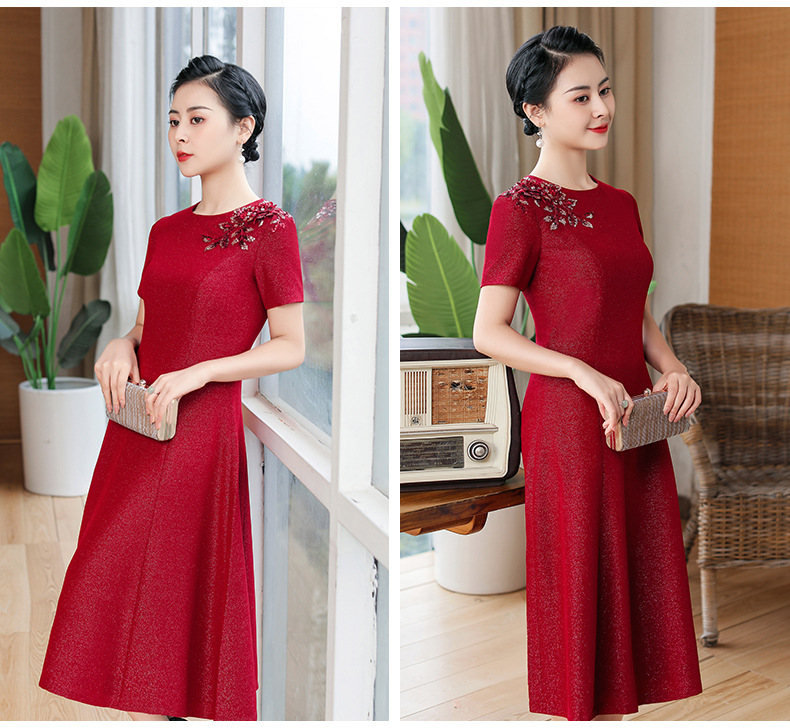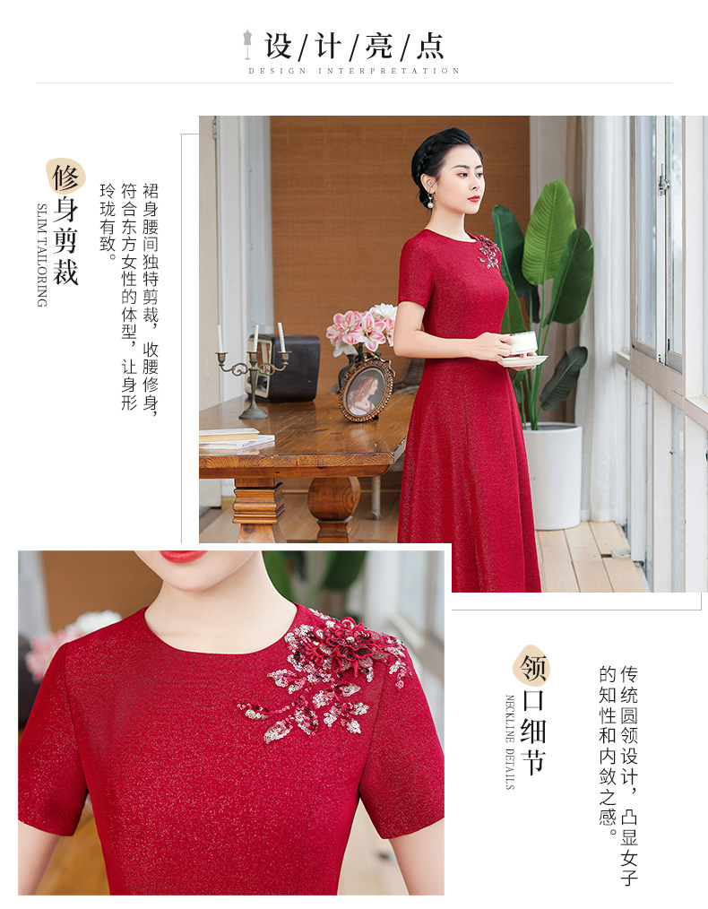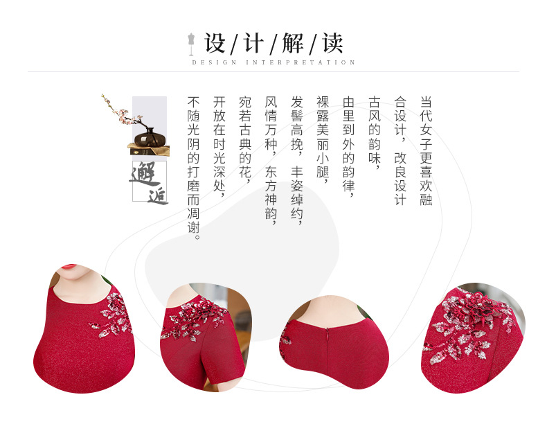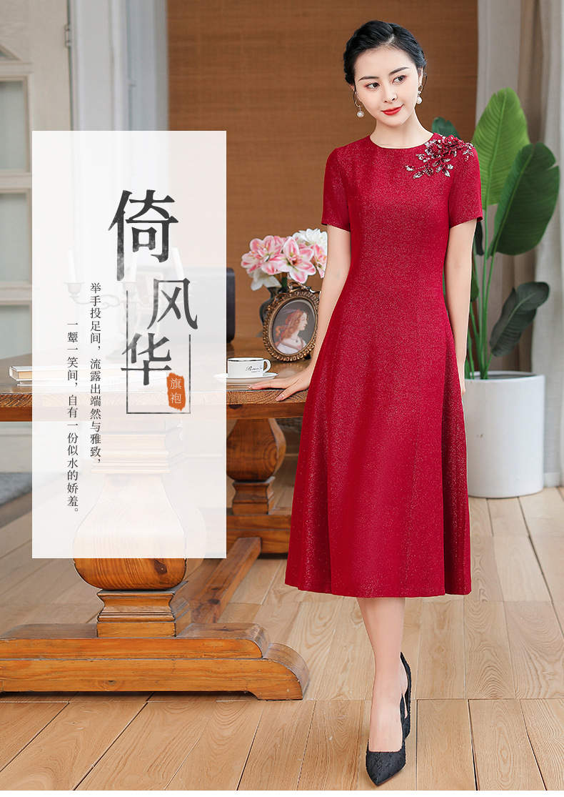 上海旗袍厂TZRY-旗袍12新款婚宴婚礼喜婆婆礼服 修身优雅复古改良红色旗袍连衣裙