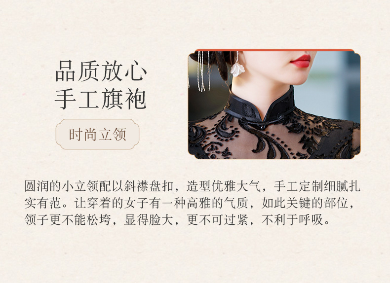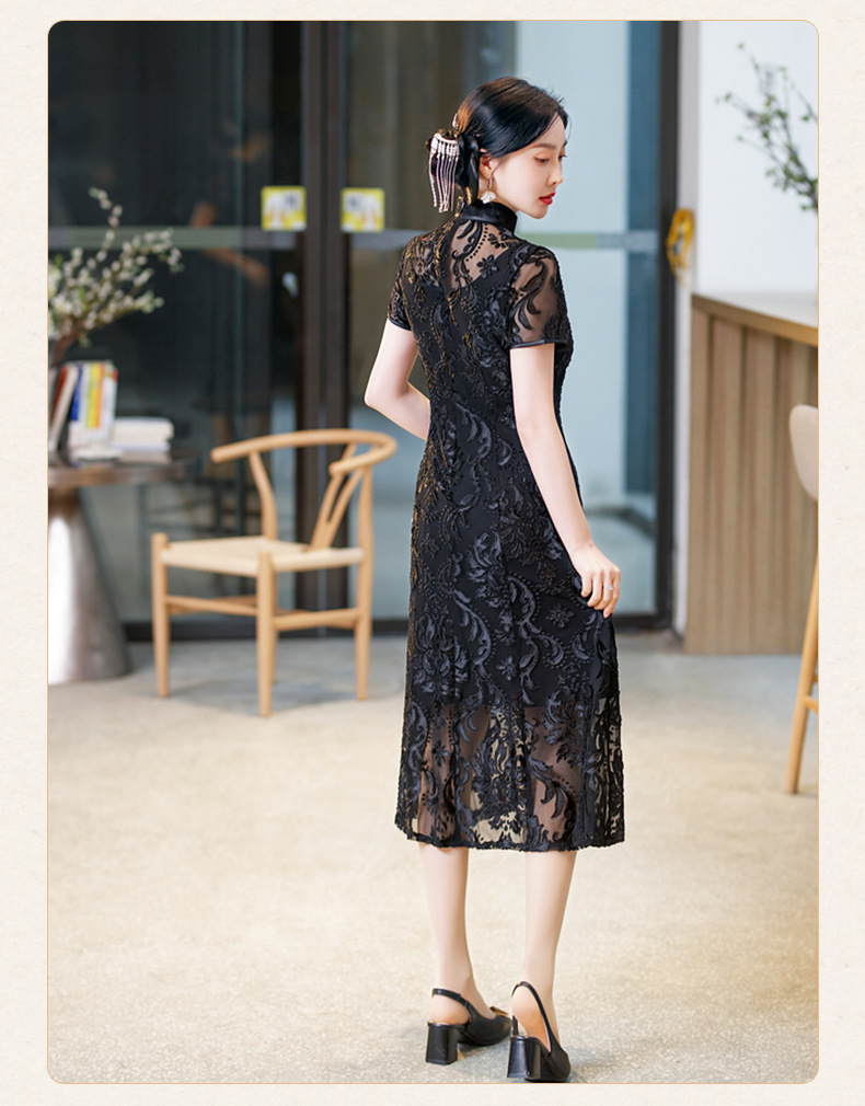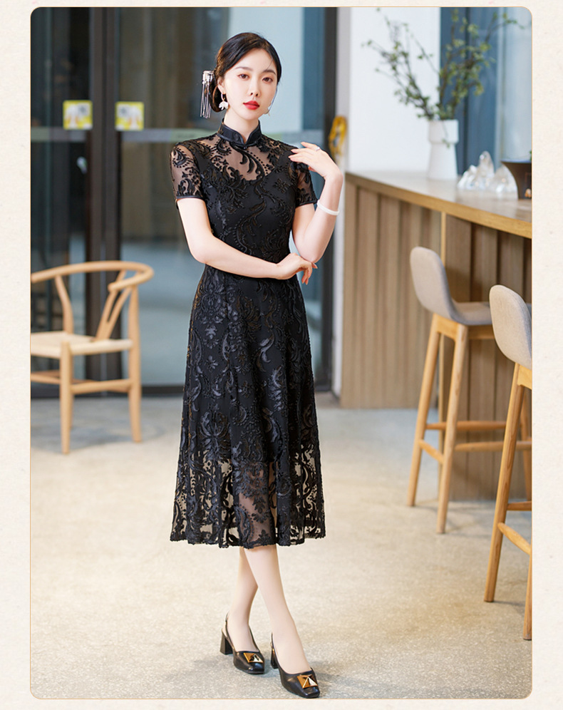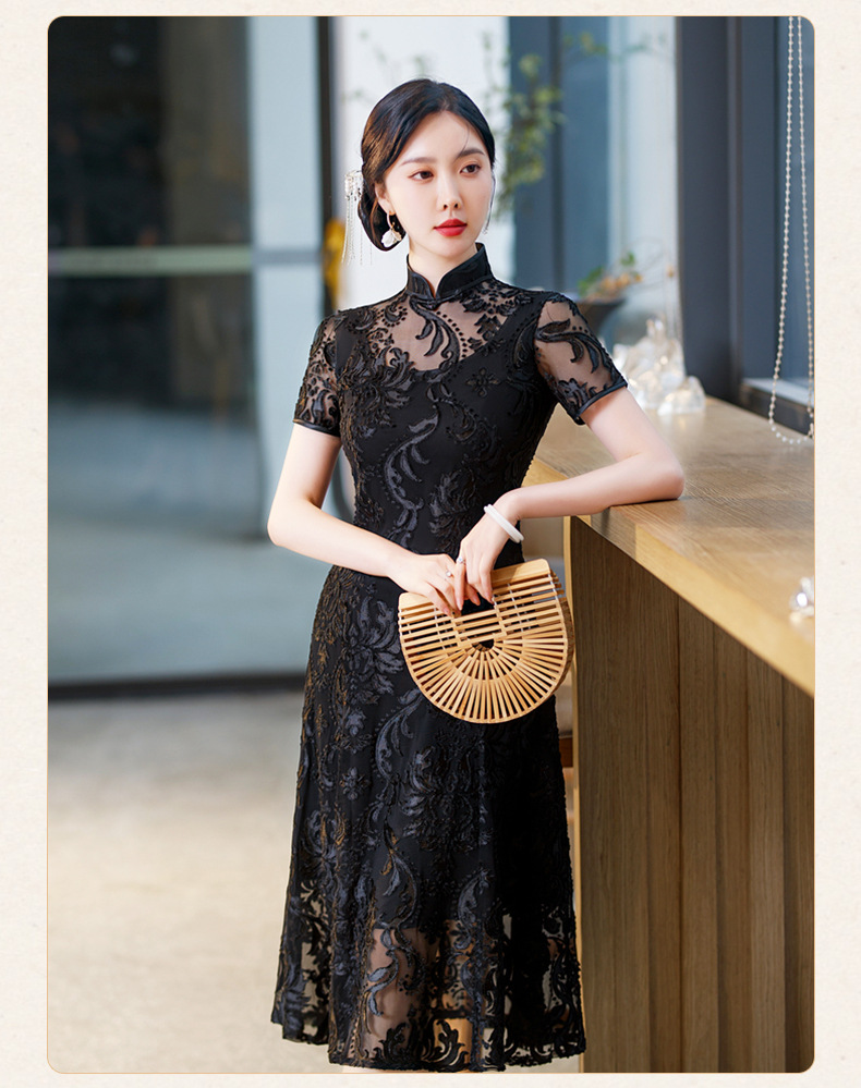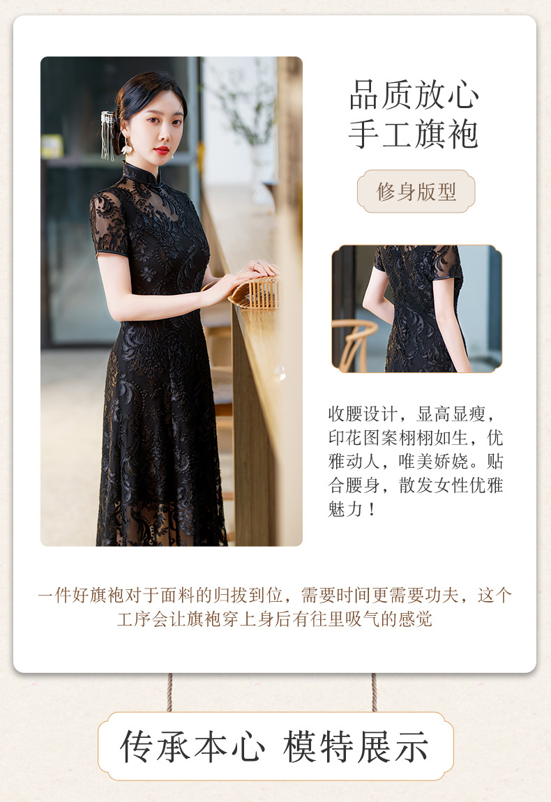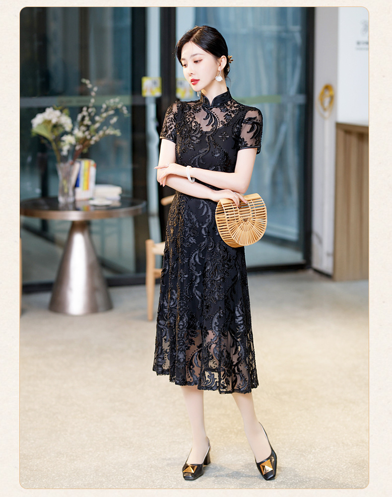 SYG-596春夏款黑色蕾丝旗袍年轻款性感时尚中长款气质改良优雅连衣裙