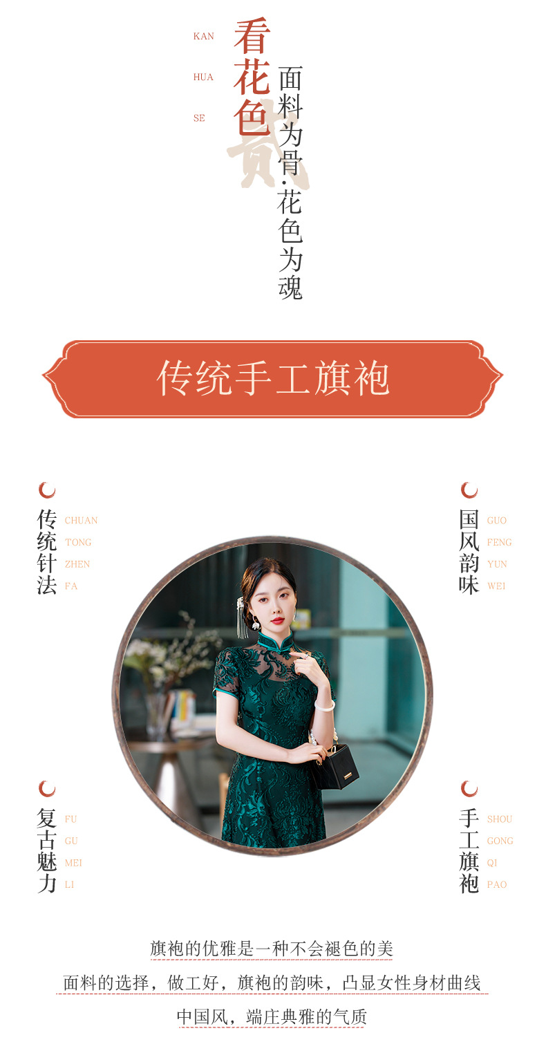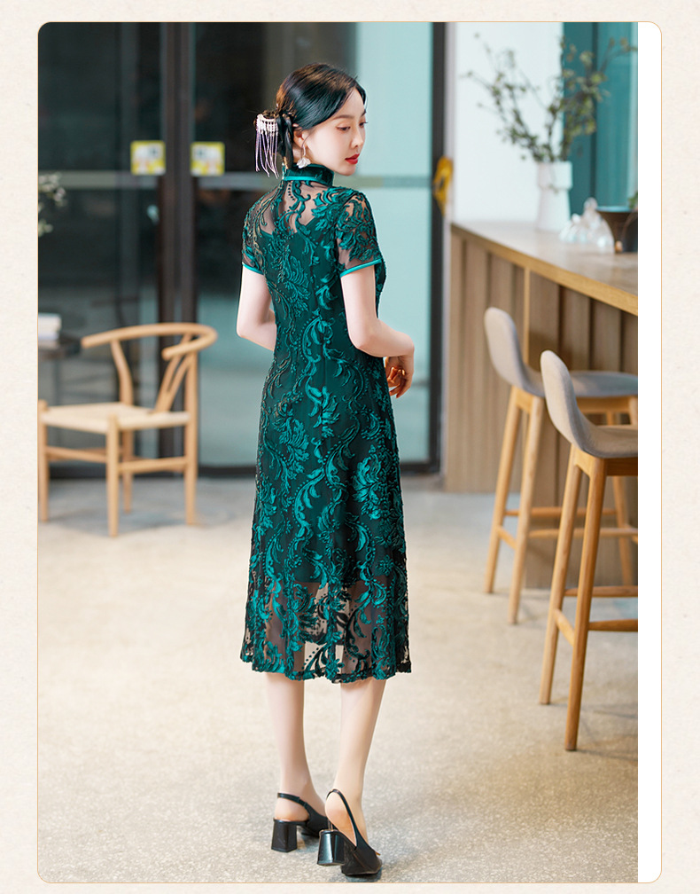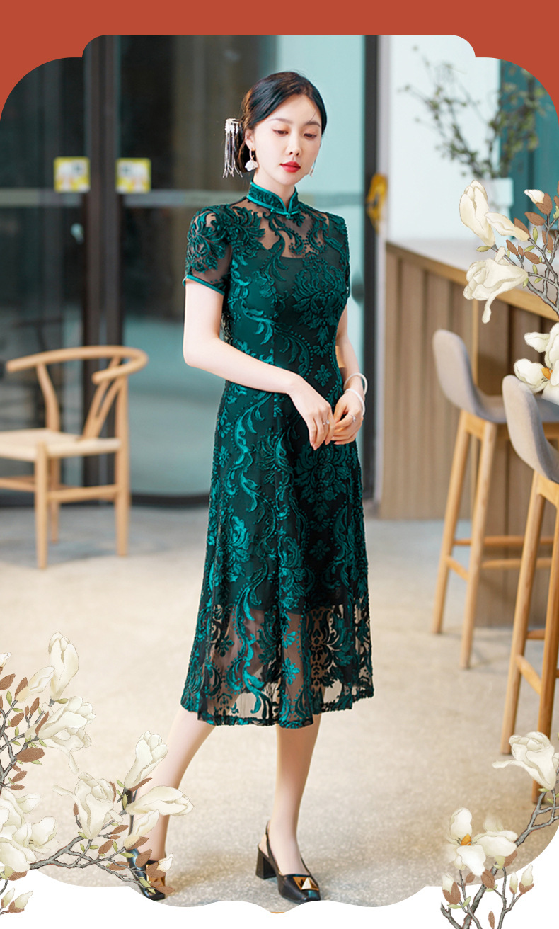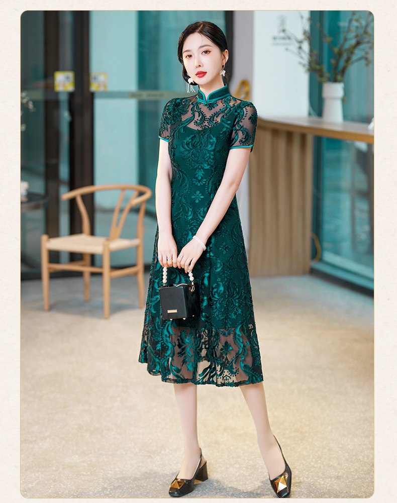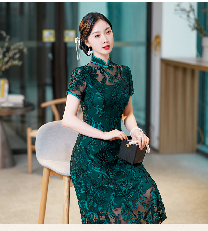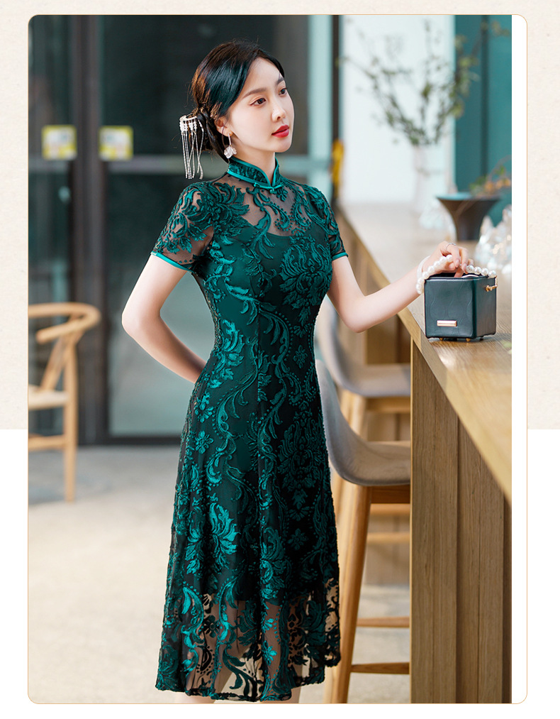 SYG-596春夏款黑色蕾丝旗袍年轻款性感时尚中长款气质改良优雅连衣裙
