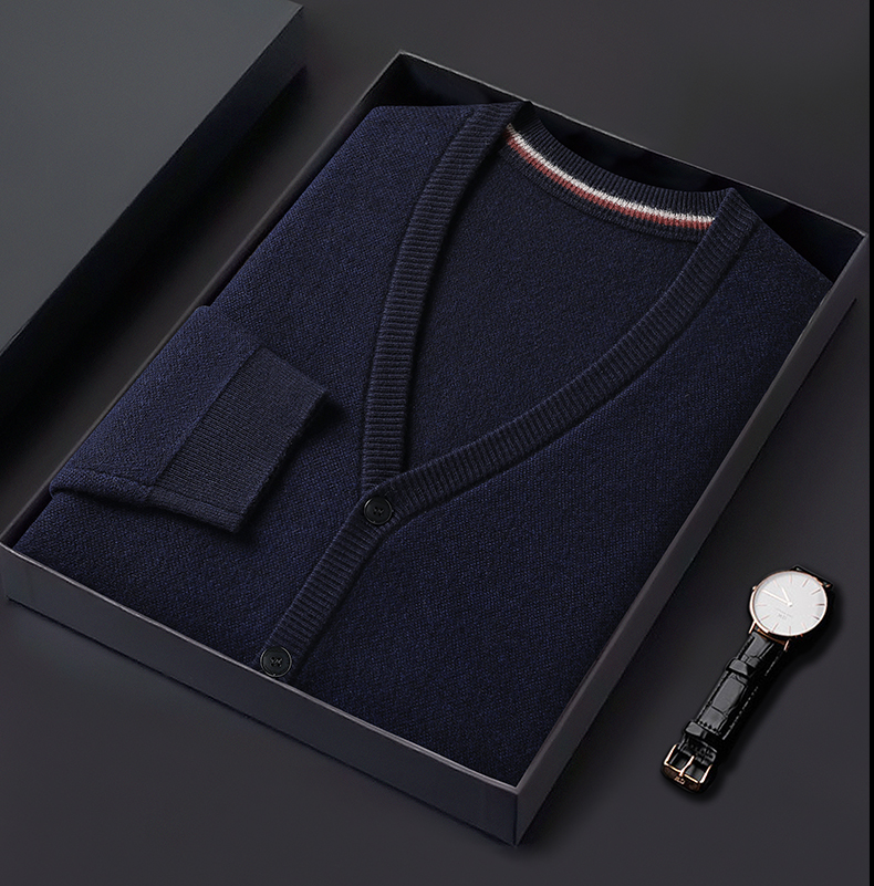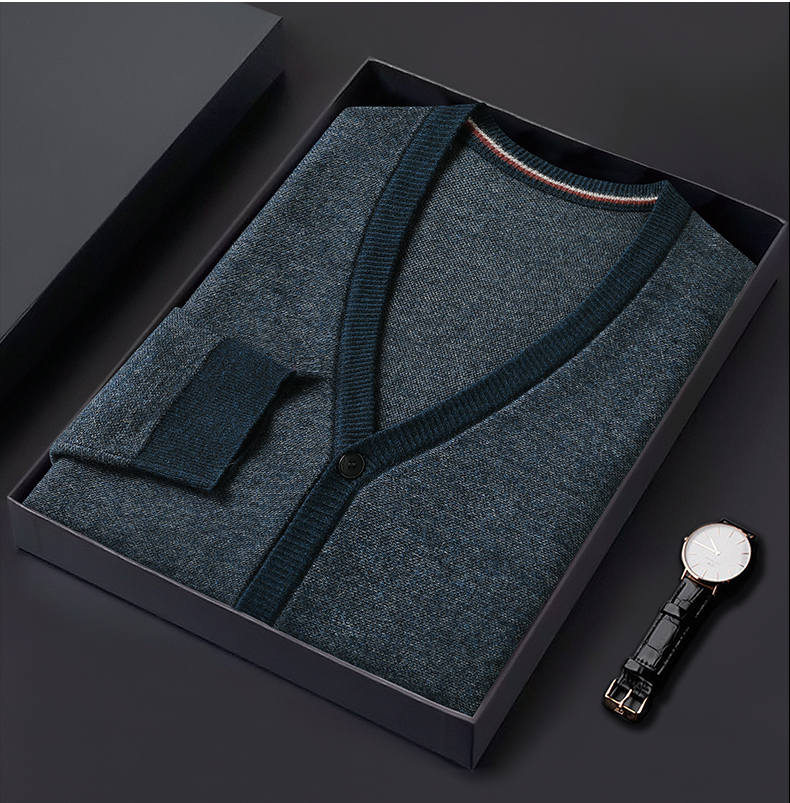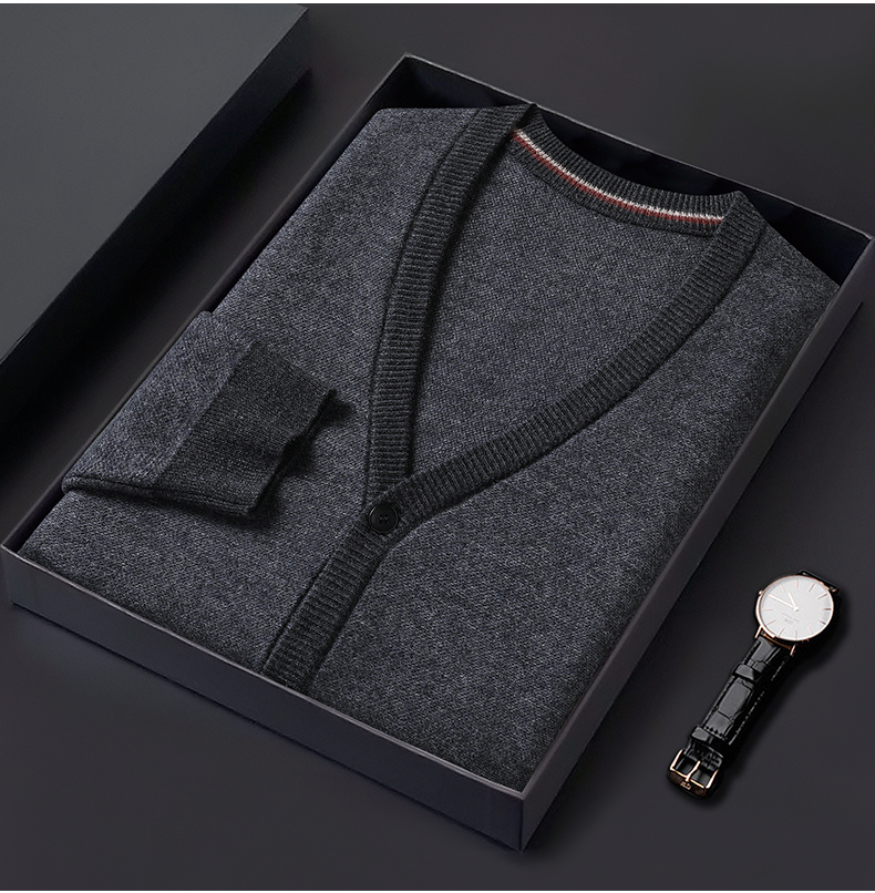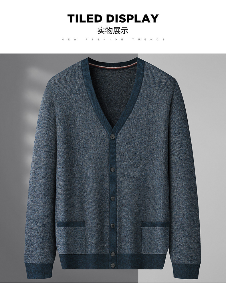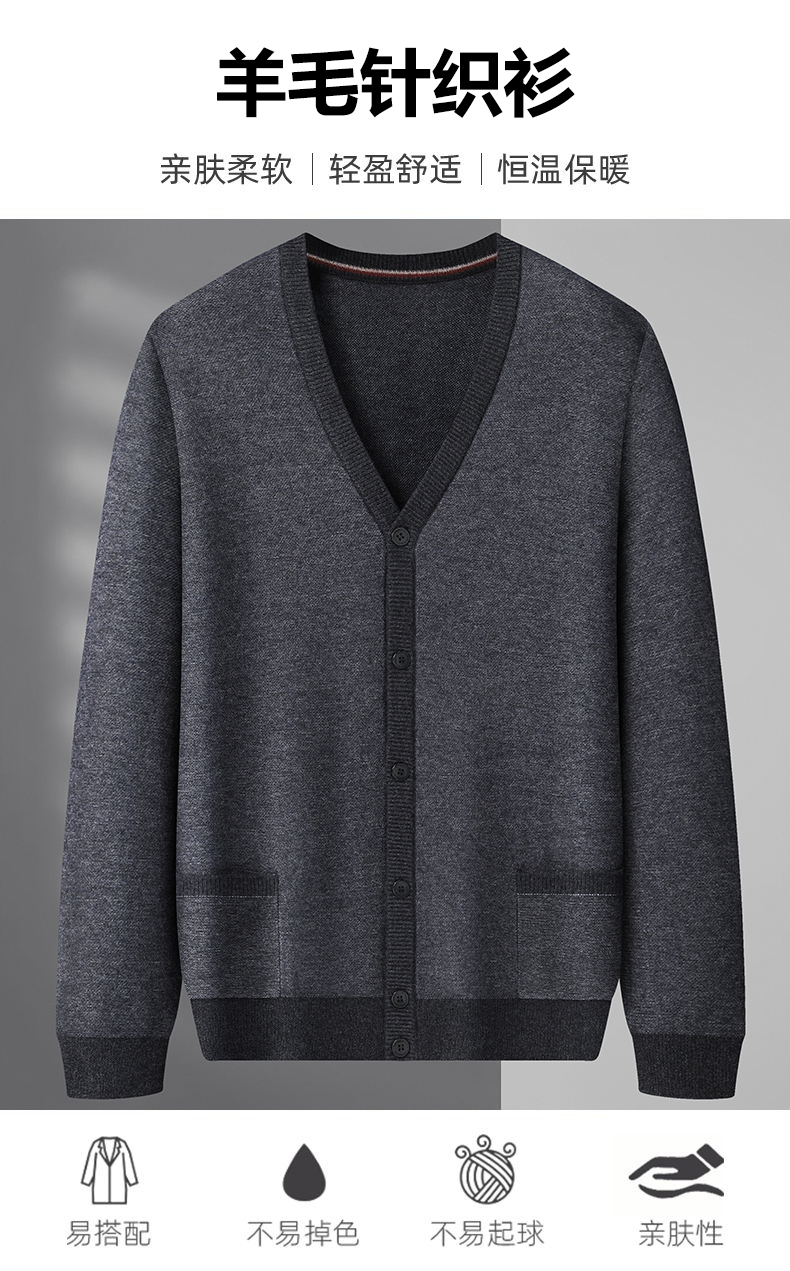 【100%羊毛】【新款DWP】大依优型大码V领针织开衫外套休闲针织衫加肥加大上衣男士胖子大码毛衫