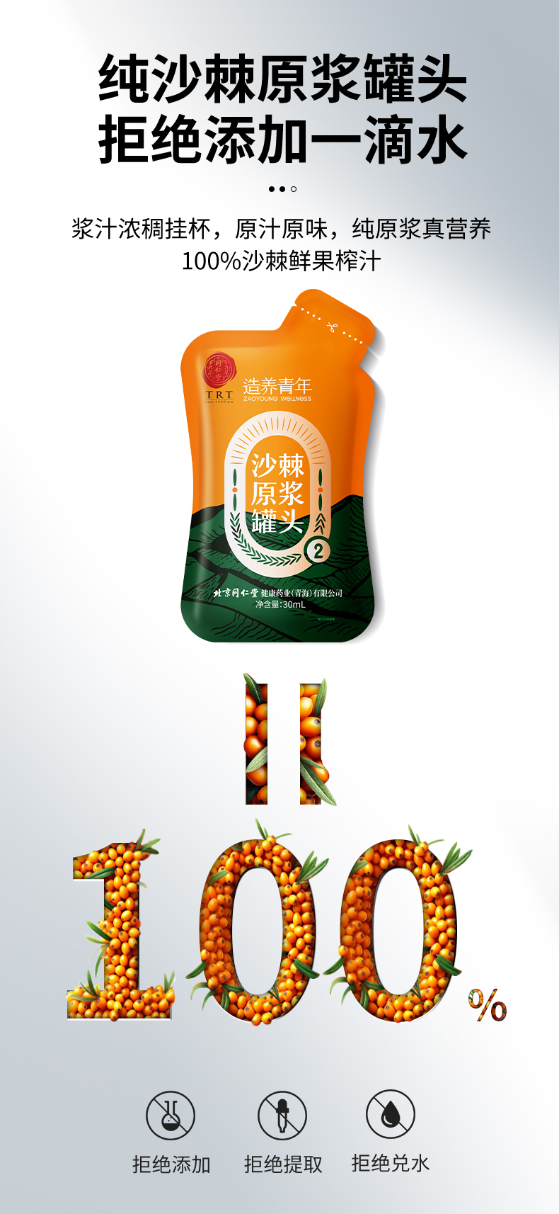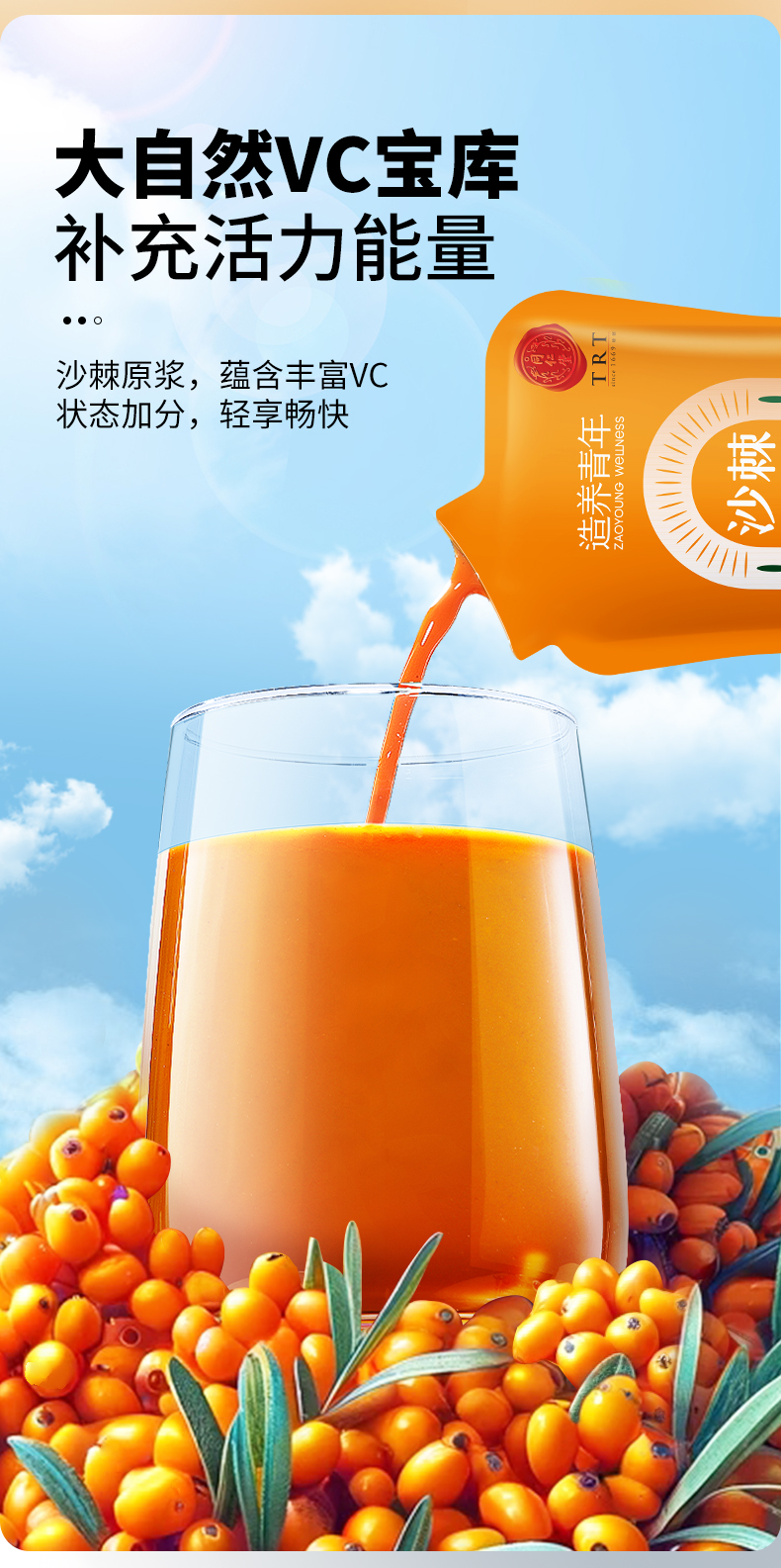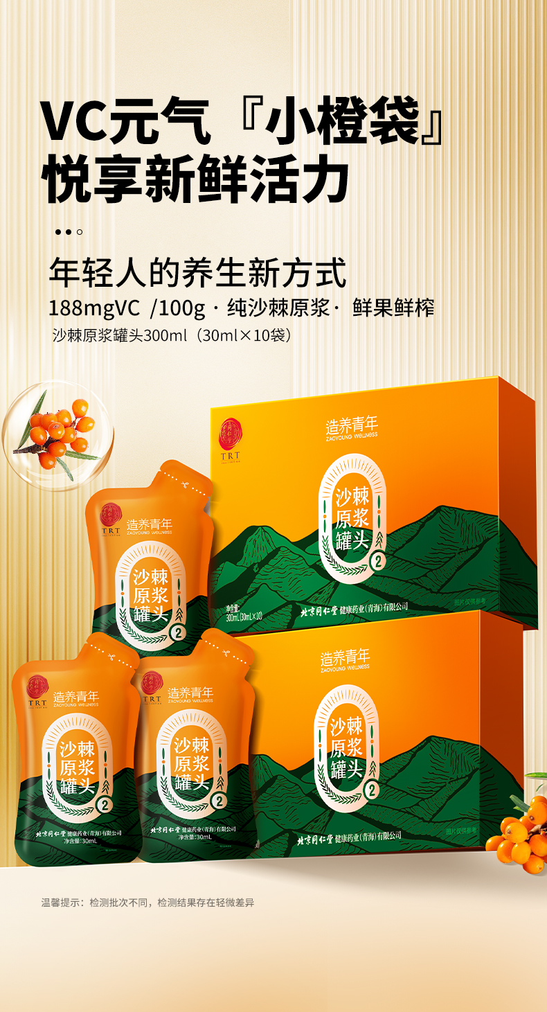 【正宗同仁堂品牌】北京同仁堂 沙棘原浆罐头300ml(30ml*10袋) 纯沙棘原浆罐头 高含量VC 便携袋装SY