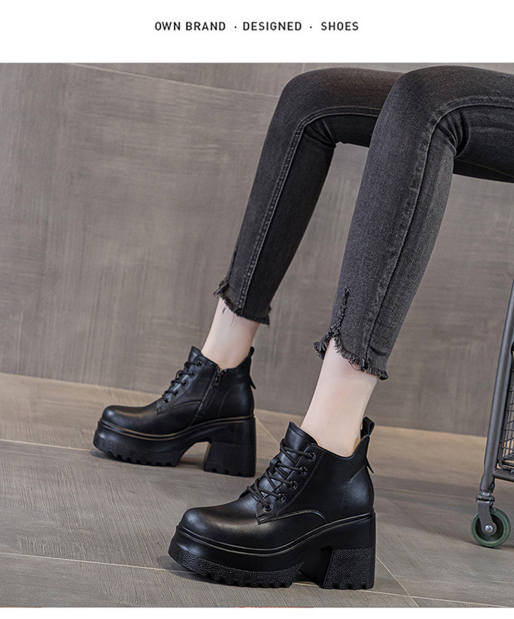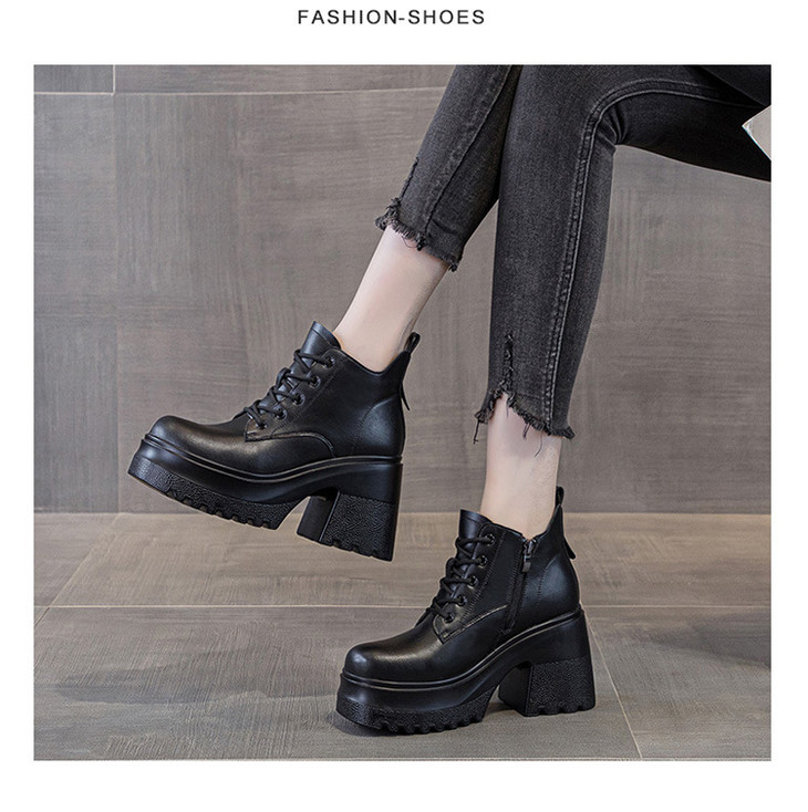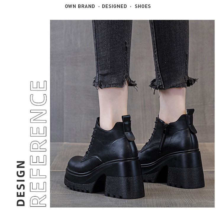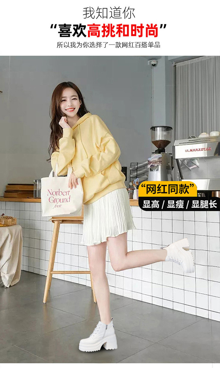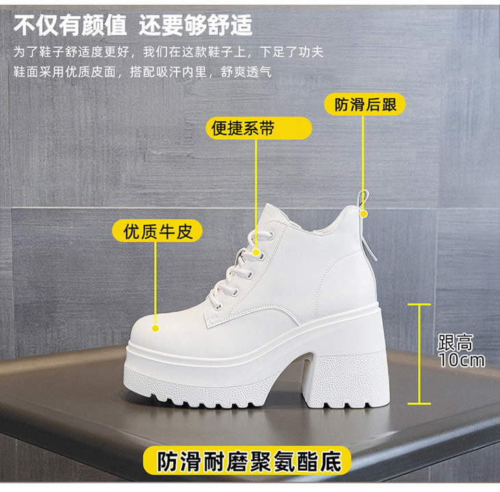 真皮增高10cm厚底高跟休闲短靴马丁靴AM558