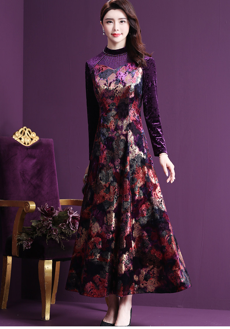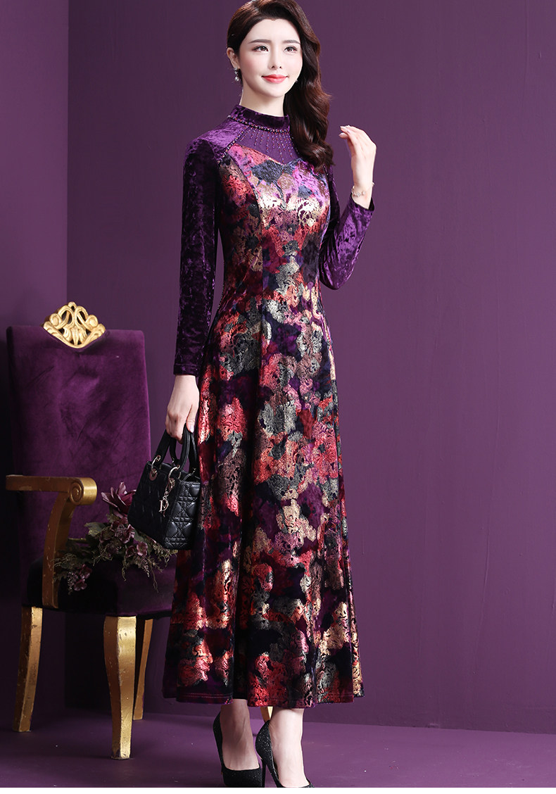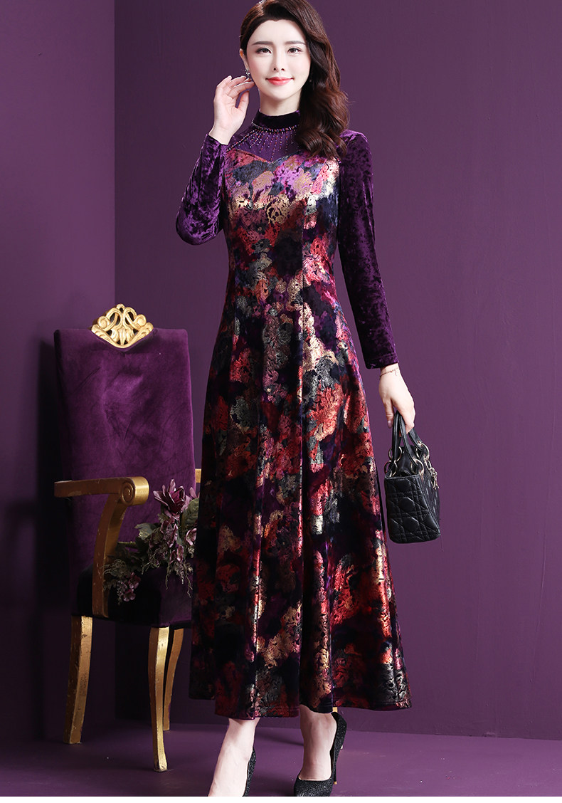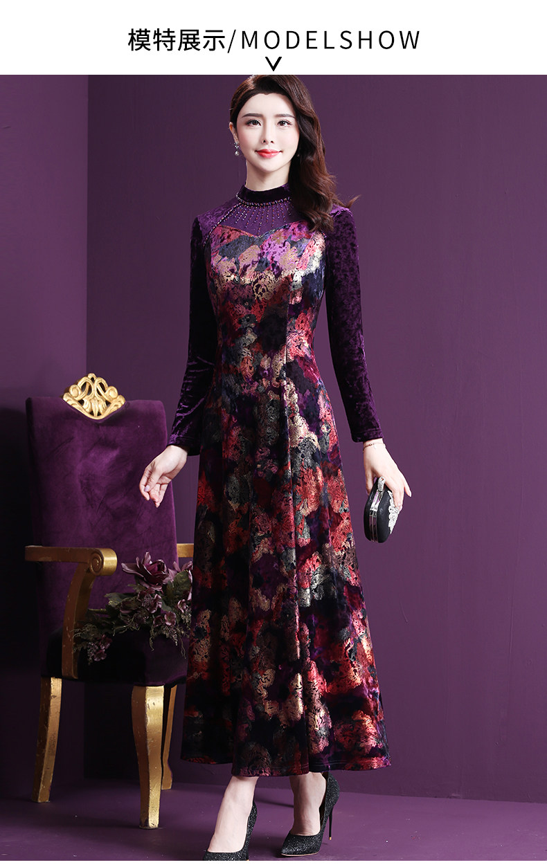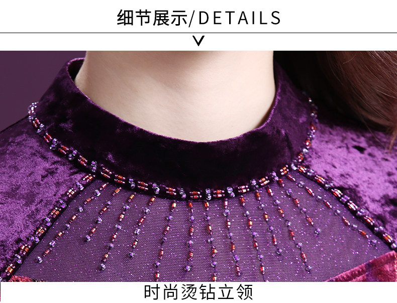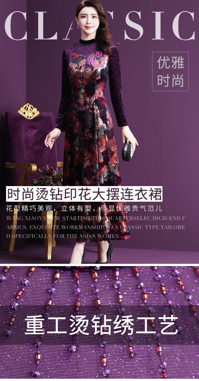 WXY-3959W秋冬新品烫钻立领长袖修身时尚洋气阔太太连衣裙