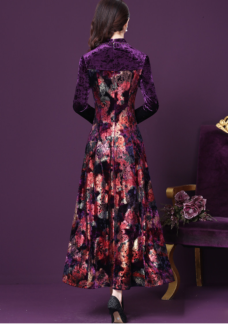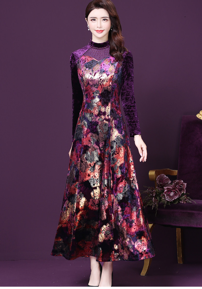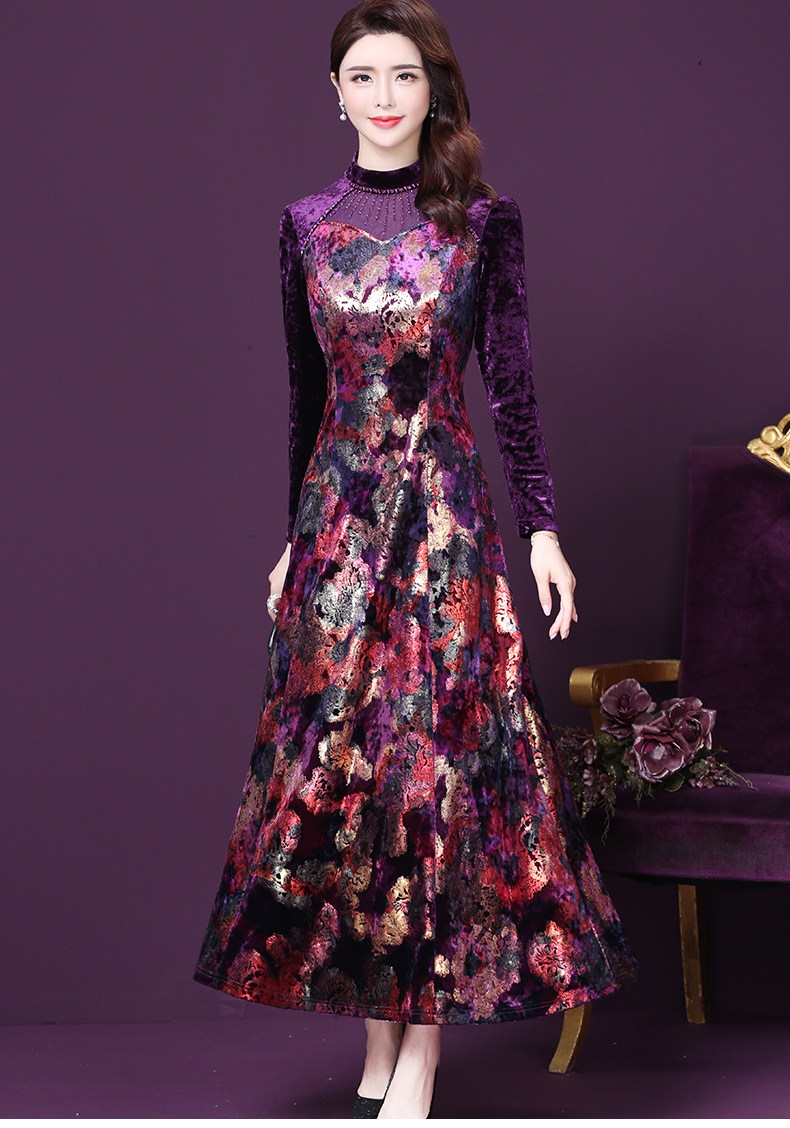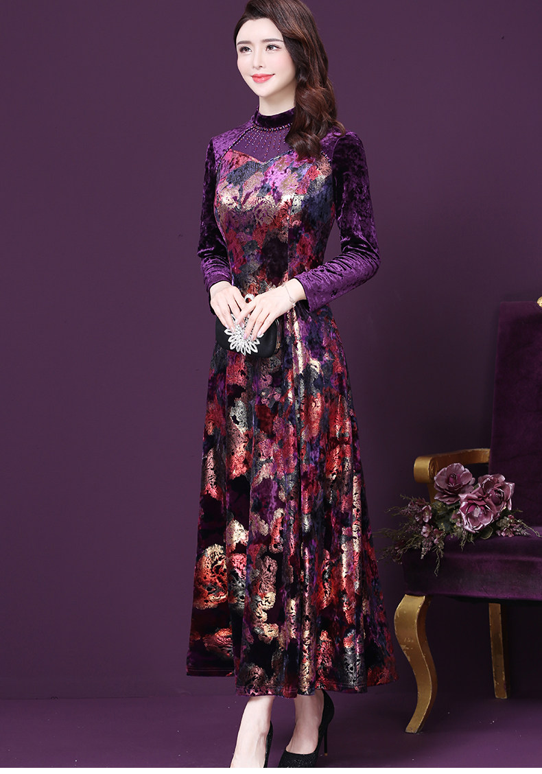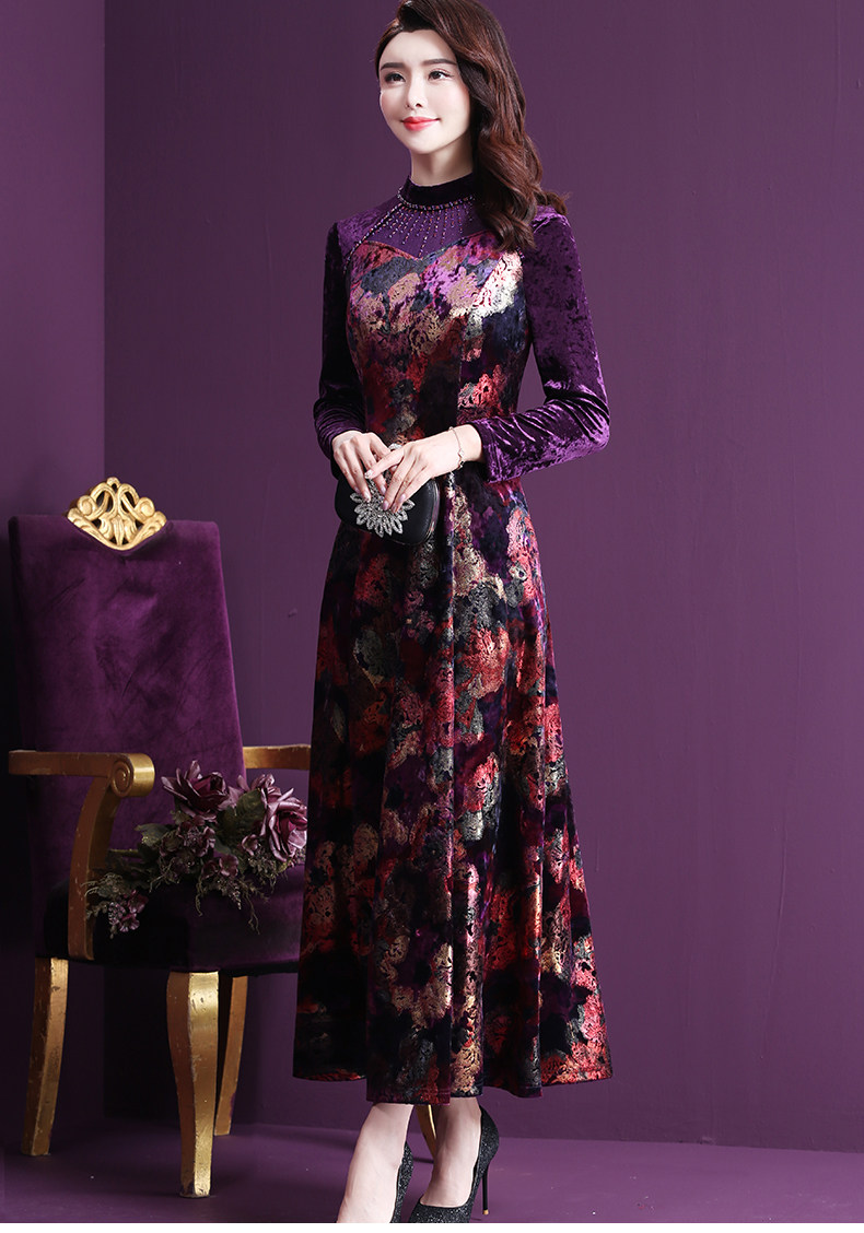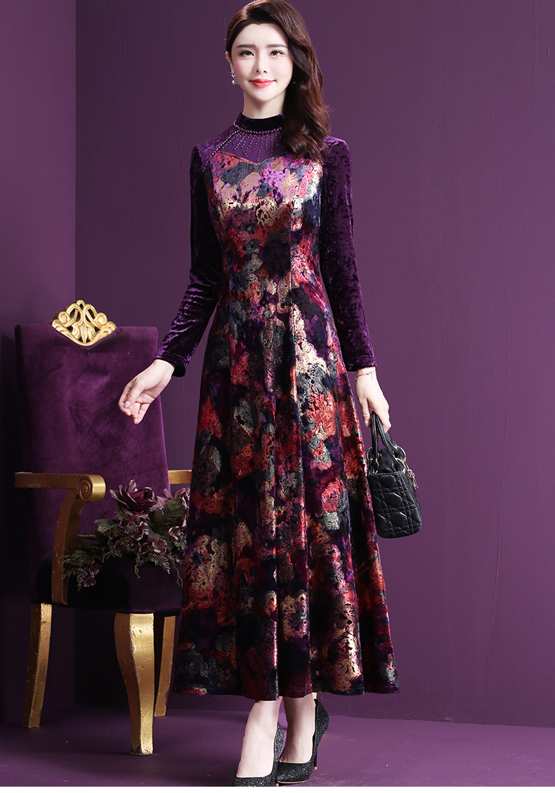 WXY-3959W秋冬新品烫钻立领长袖修身时尚洋气阔太太连衣裙