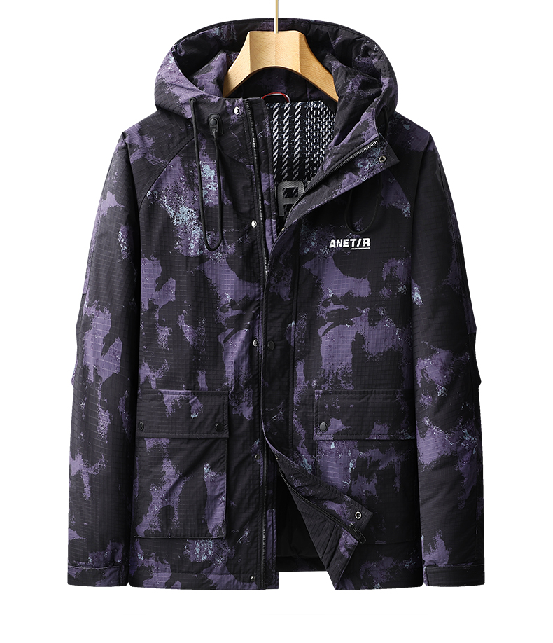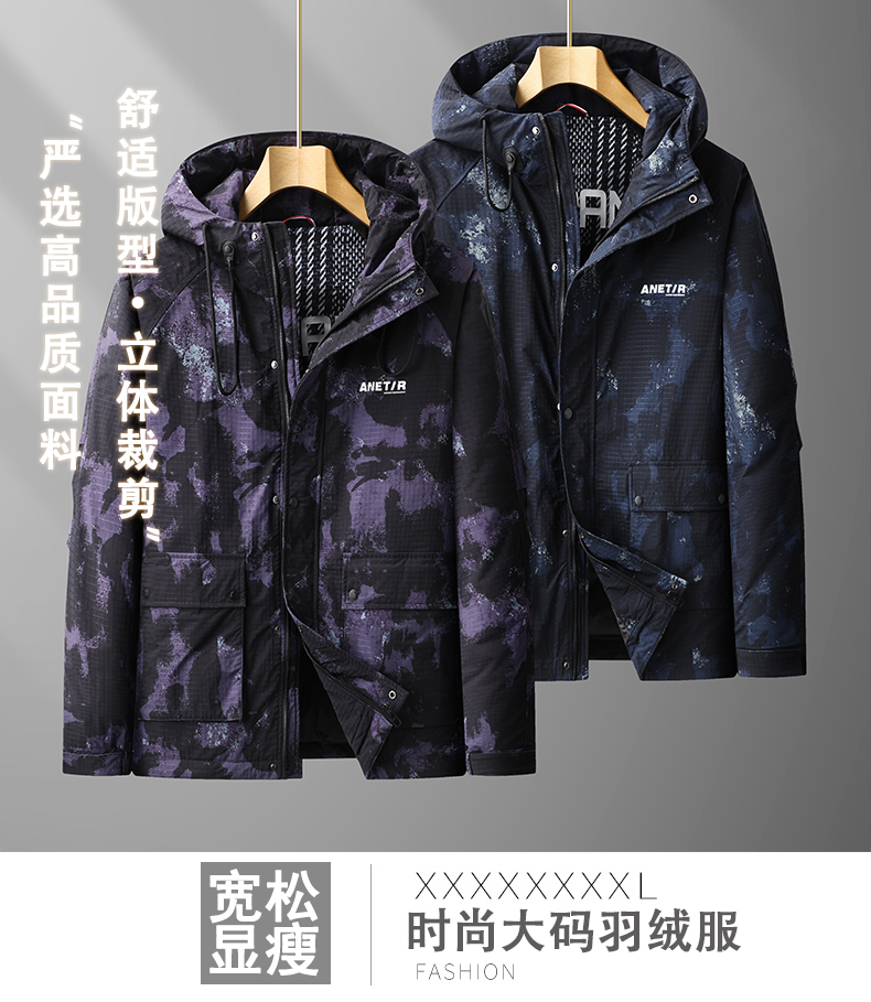 【特大码】【新款DPX】大依优型大码潮款迷彩工装连帽羽绒服鸭绒外套休闲胖子大码男休闲宽松加肥加大上衣