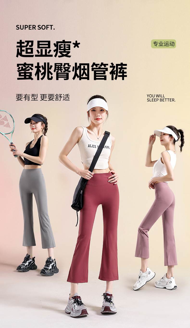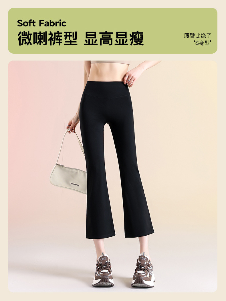 百媚生 七分裤喇叭裤女瑜伽裤女夏薄款外穿2507