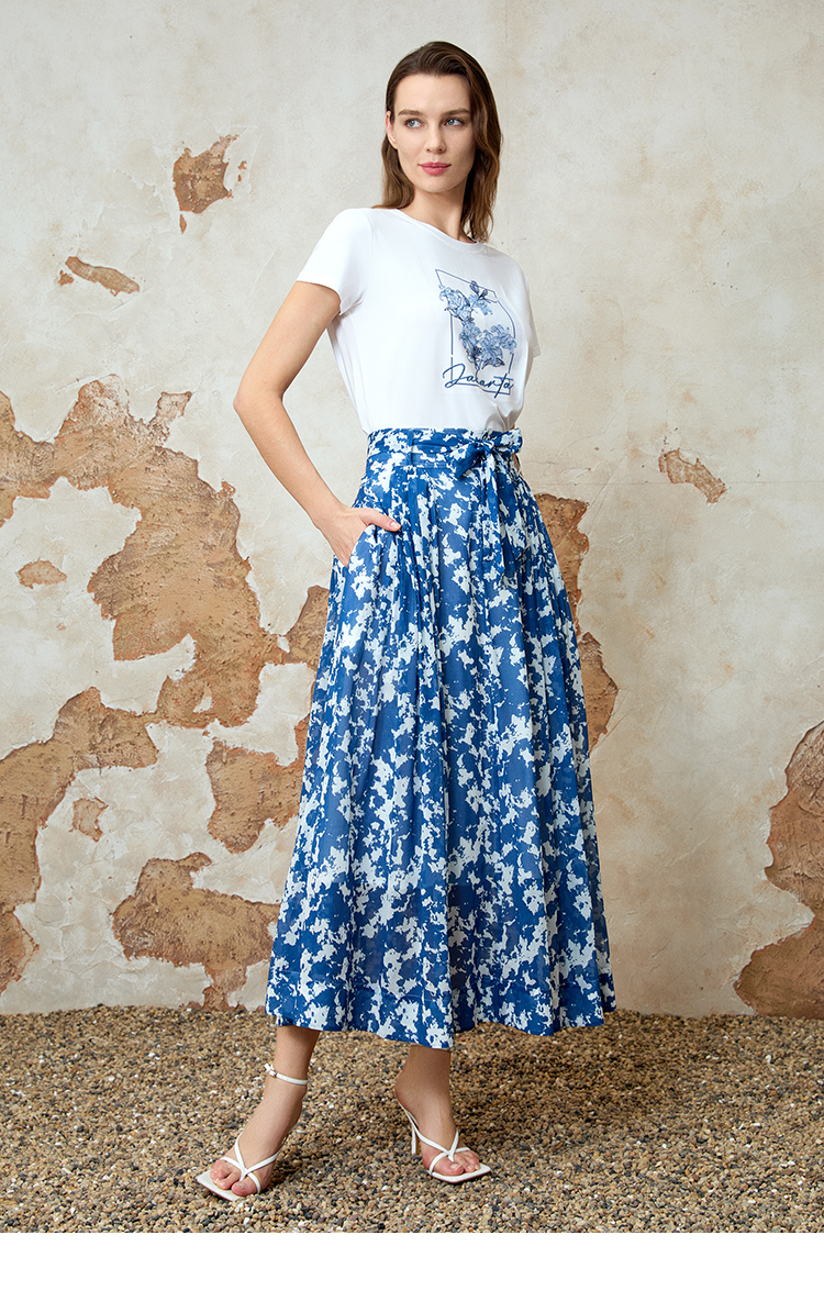 EITIE爱特爱A字撞色印花显瘦时尚半身裙夏季新款8206904
