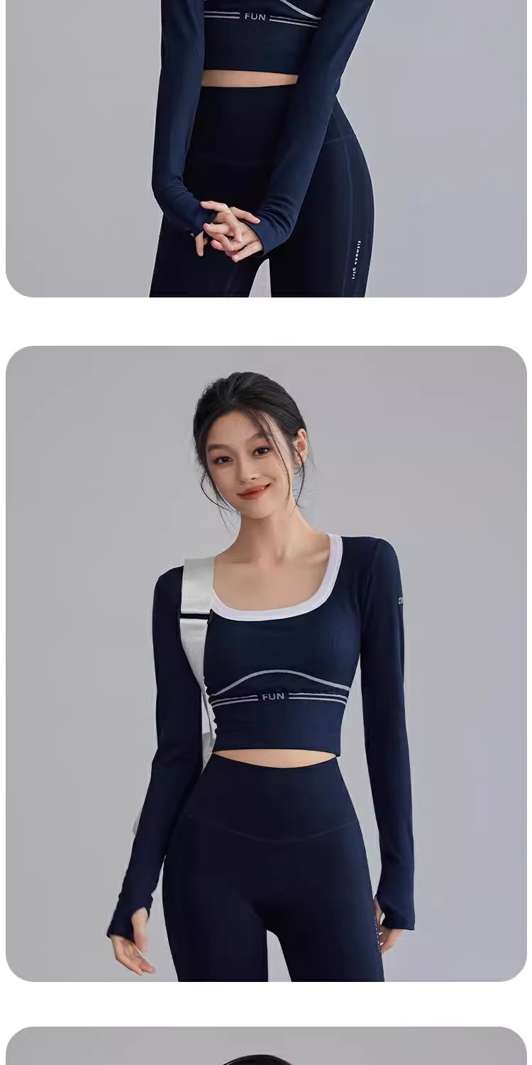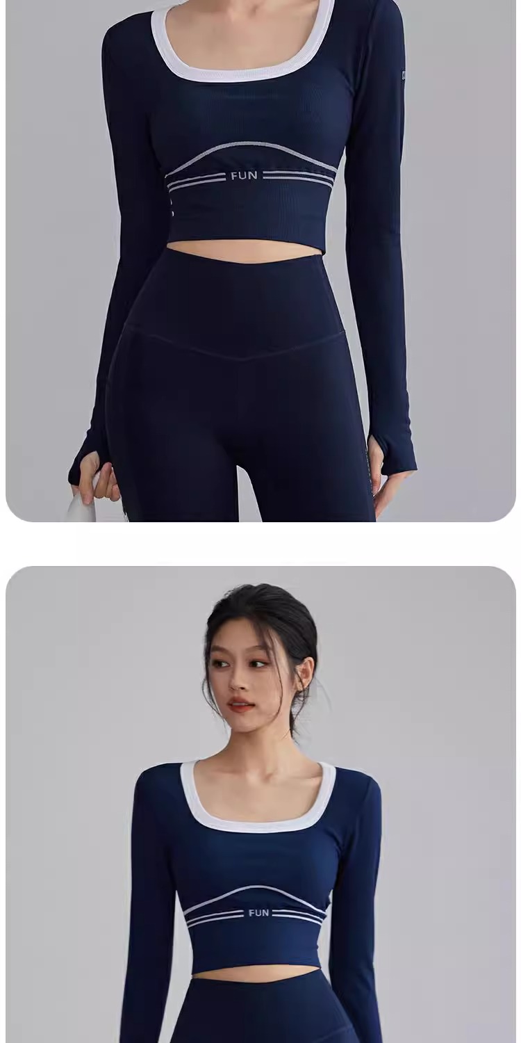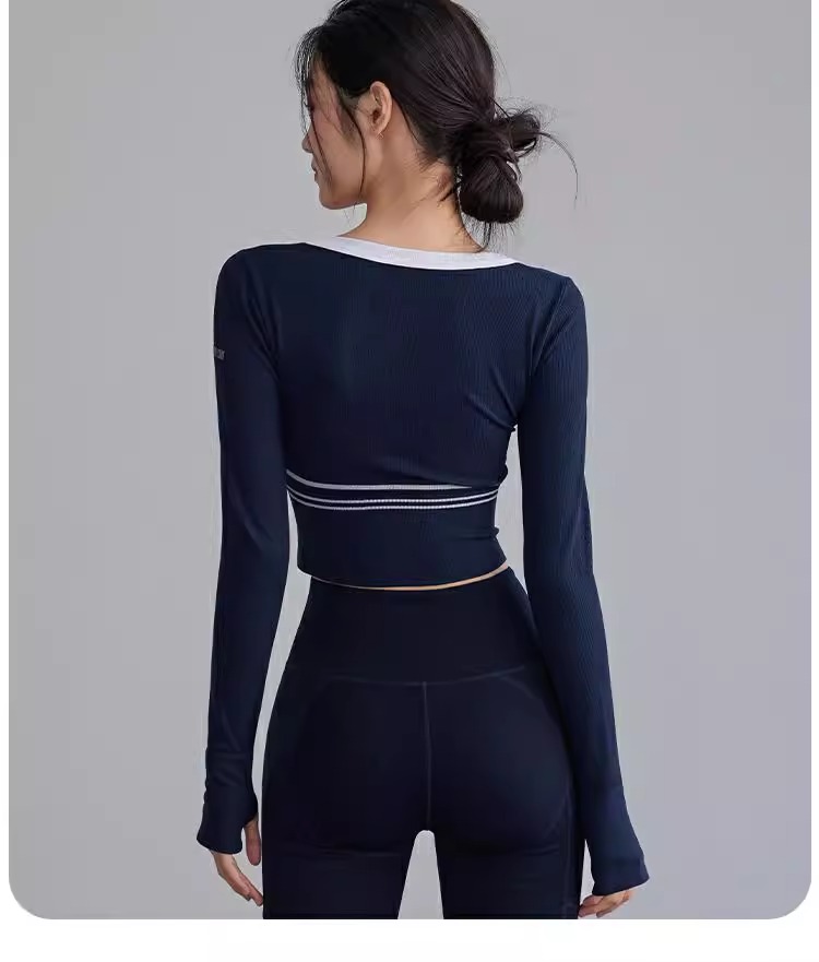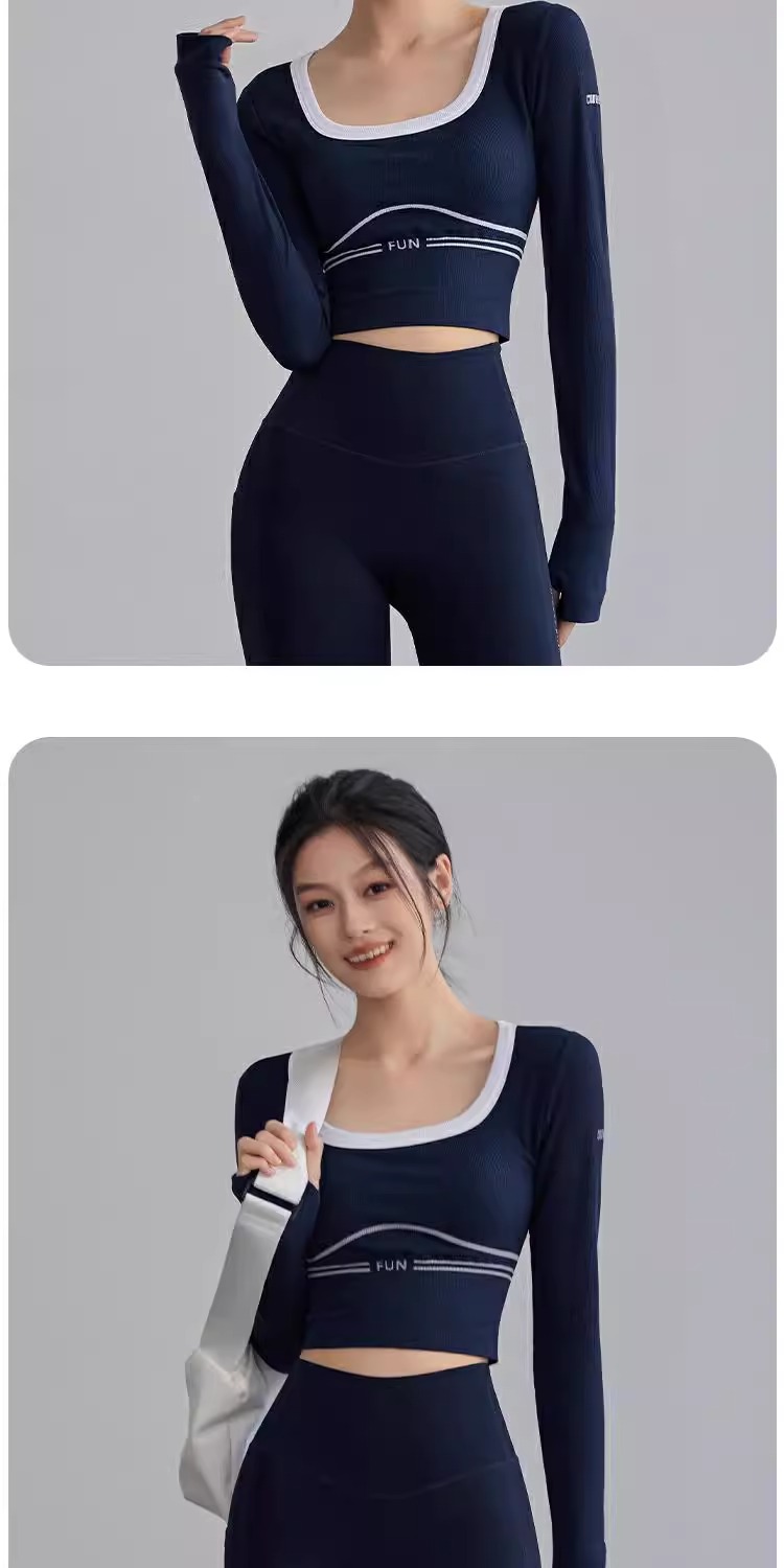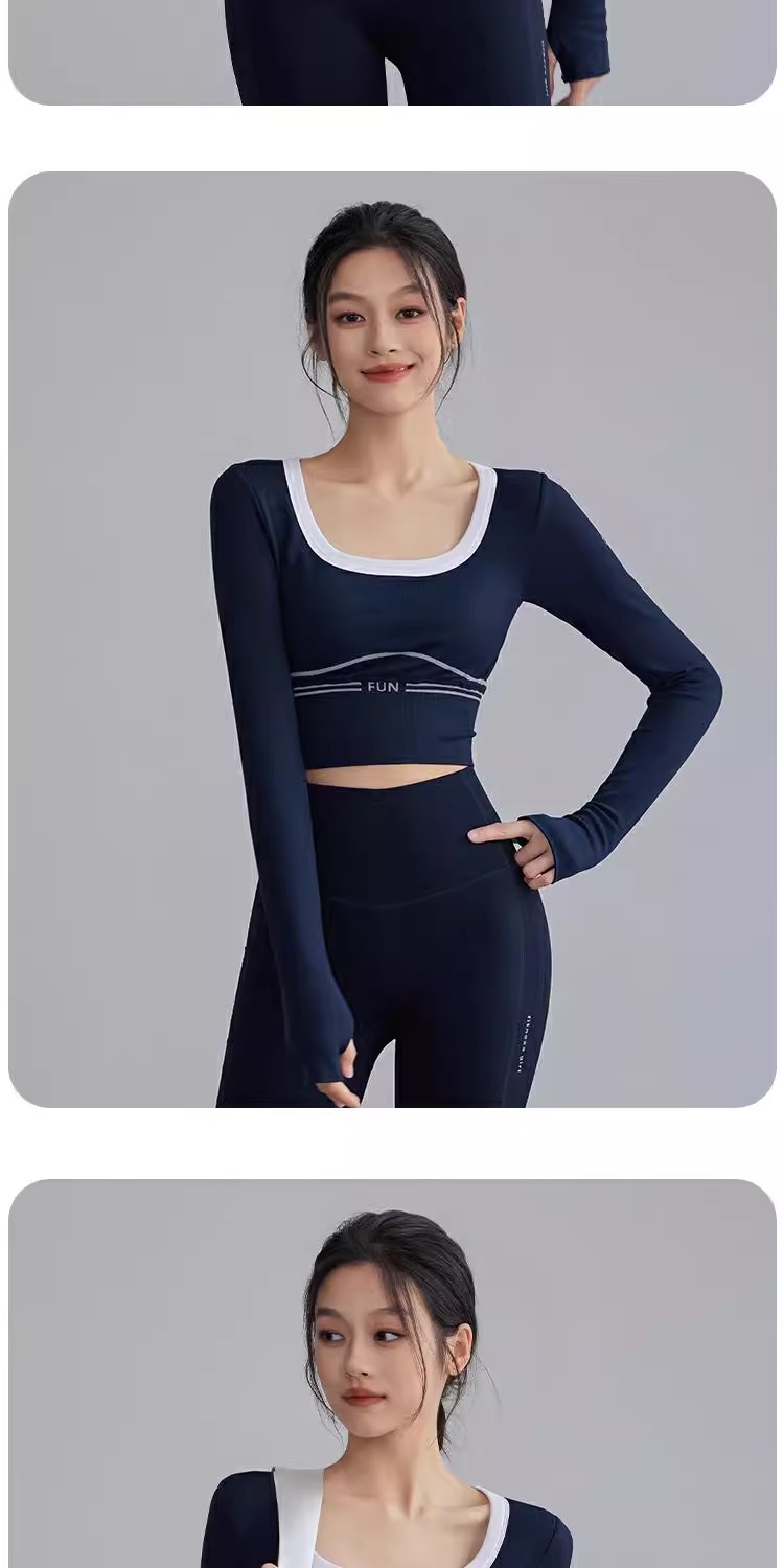 Gymicon能量符号 秋冬长袖撞色白边固定罩杯跑步运动瑜伽上衣YASY2428
