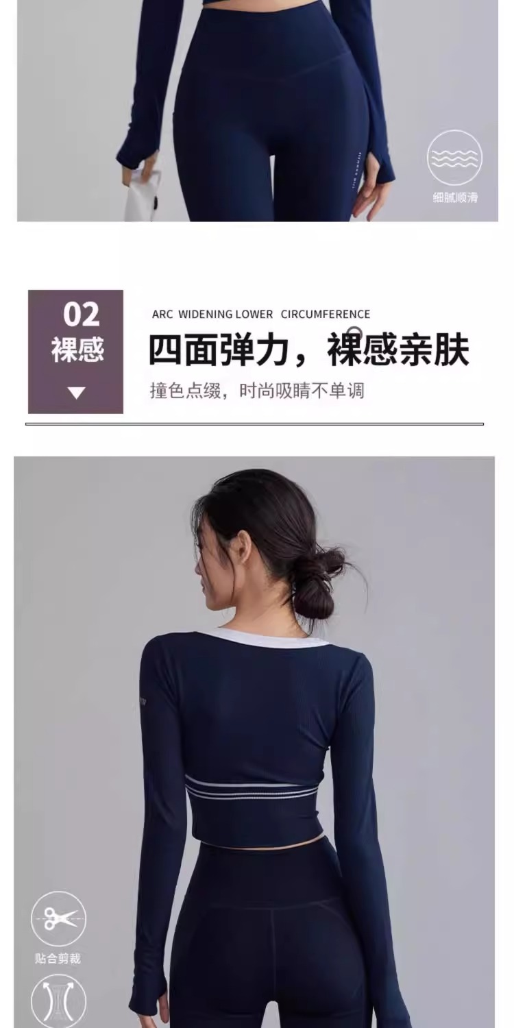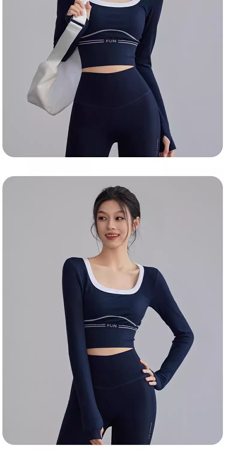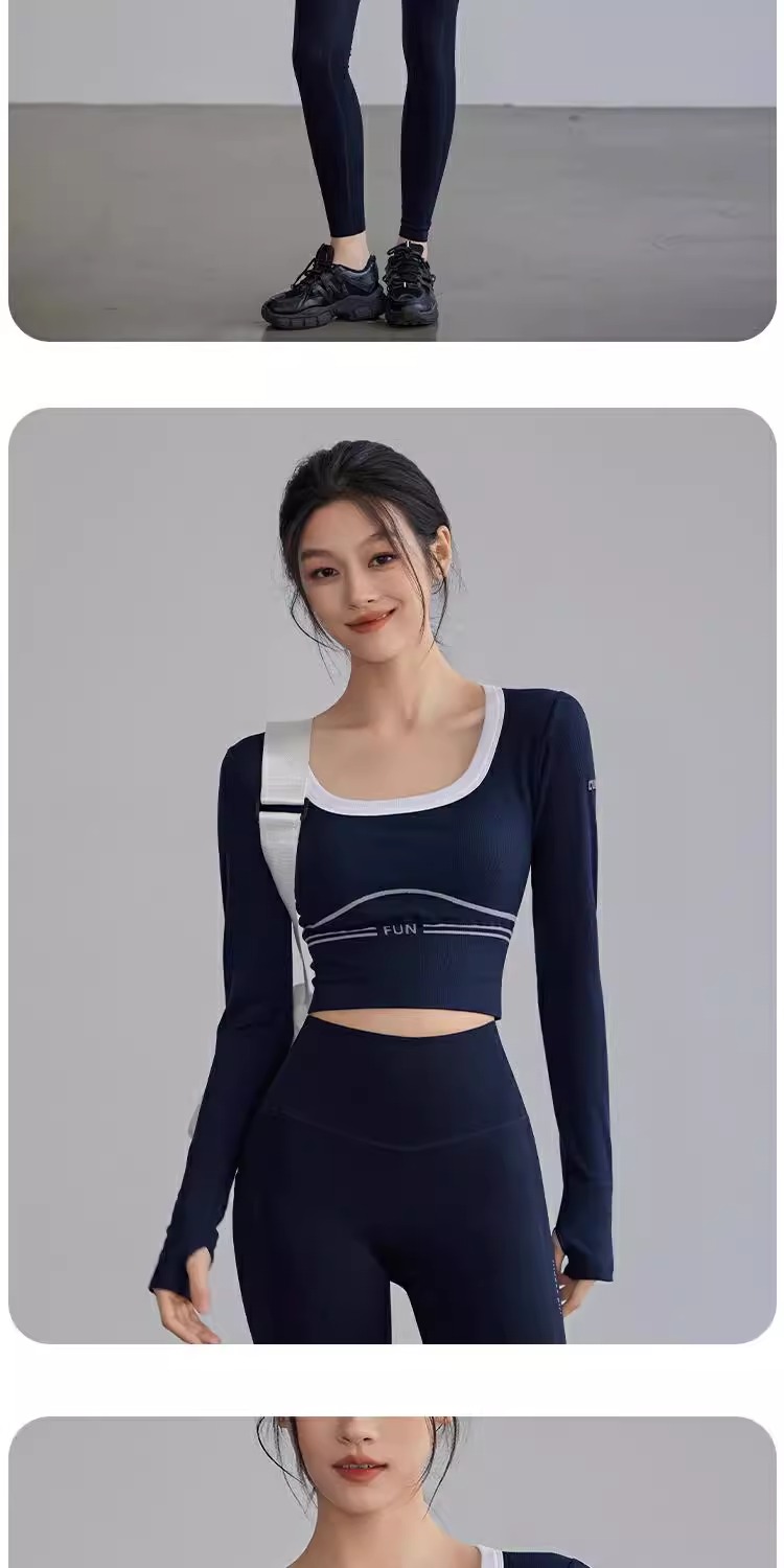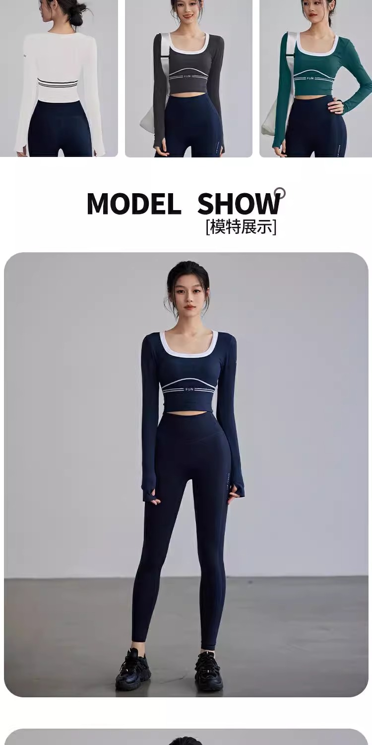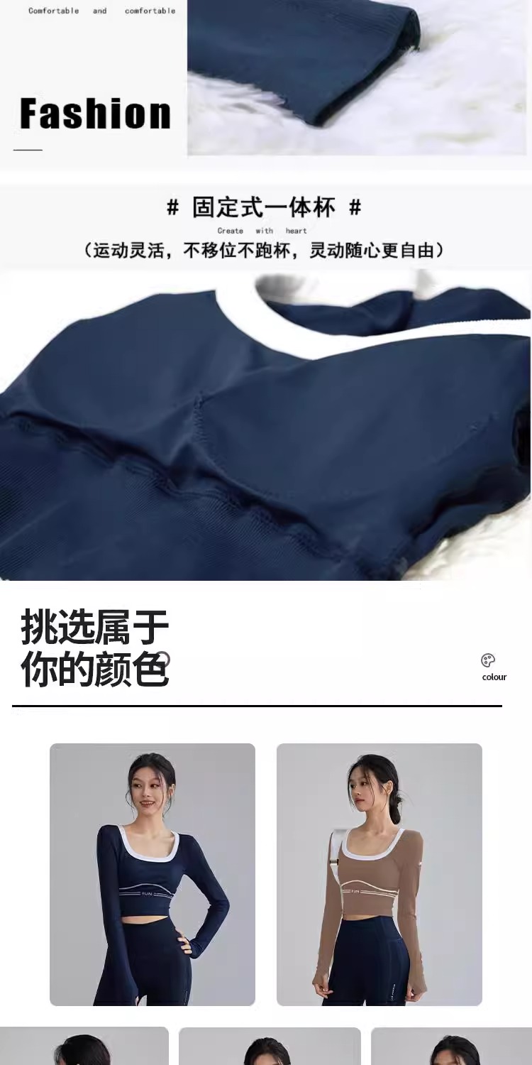 Gymicon能量符号 秋冬长袖撞色白边固定罩杯跑步运动瑜伽上衣YASY2428