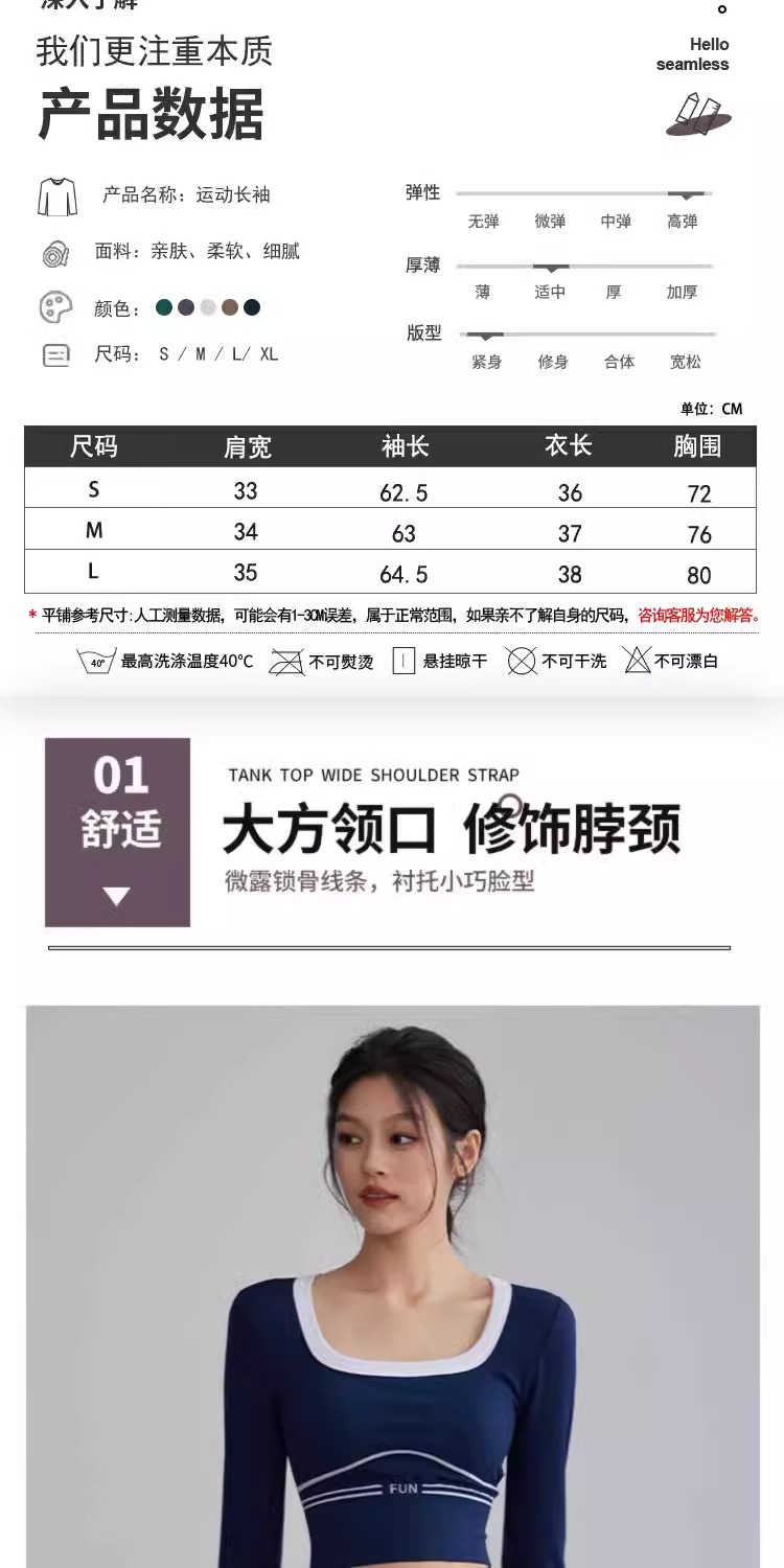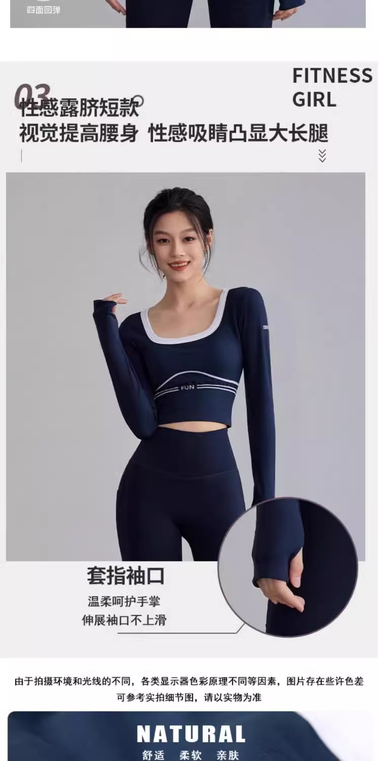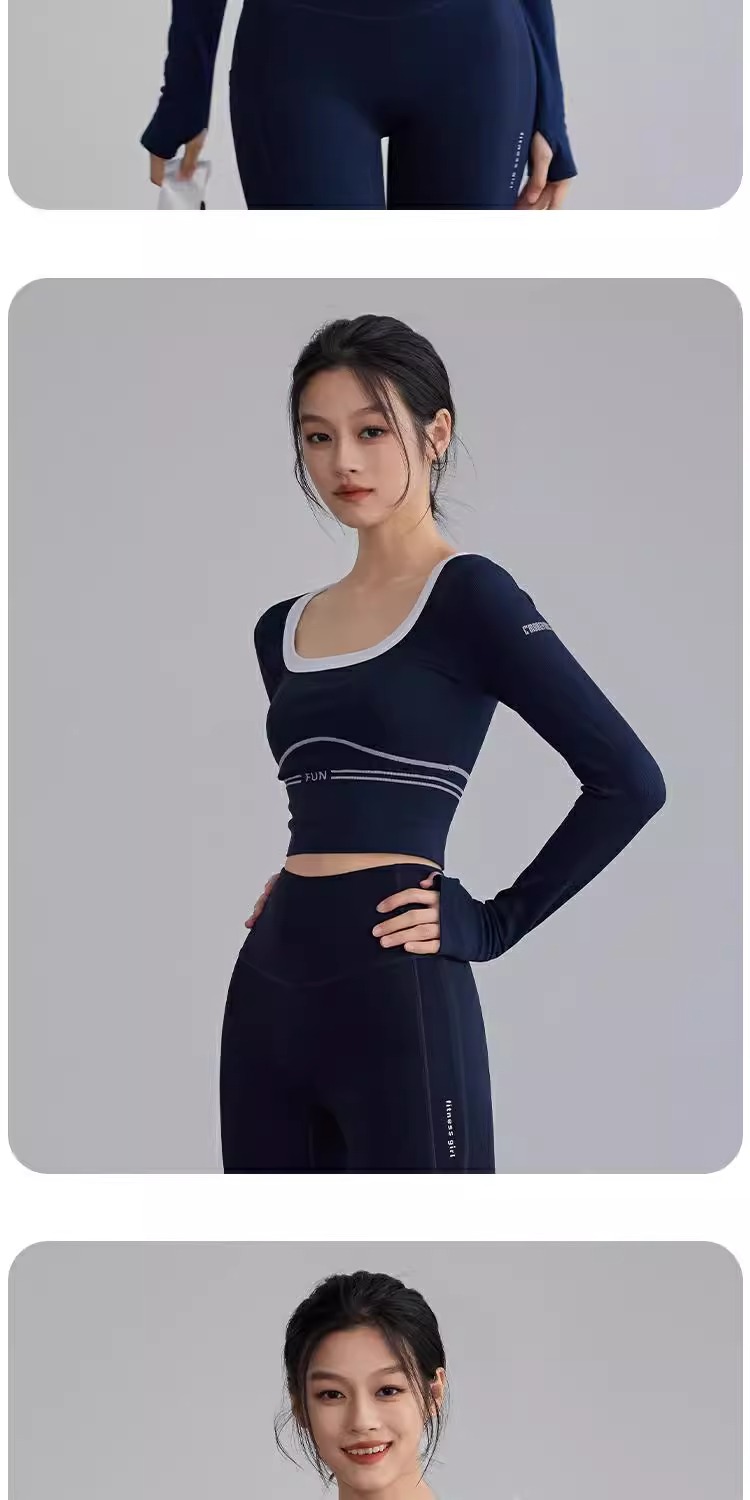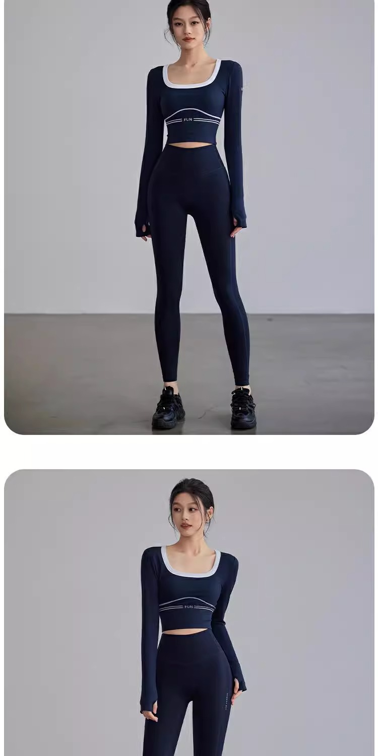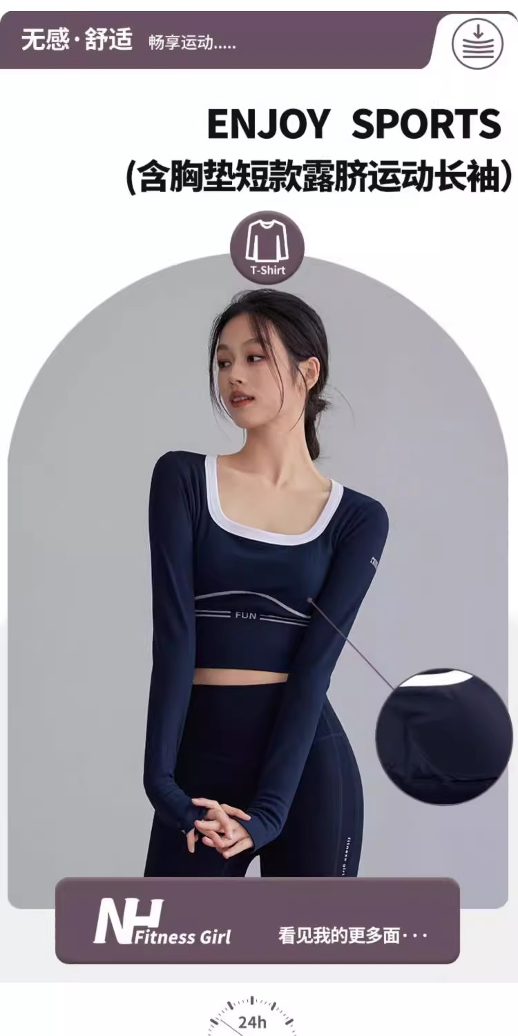 Gymicon能量符号 秋冬长袖撞色白边固定罩杯跑步运动瑜伽上衣YASY2428