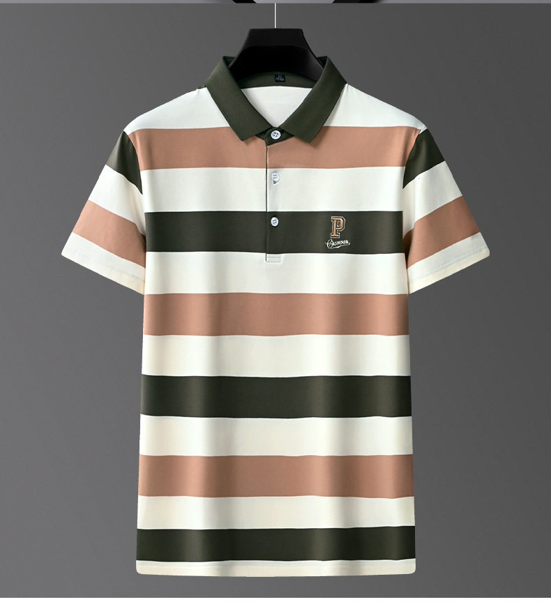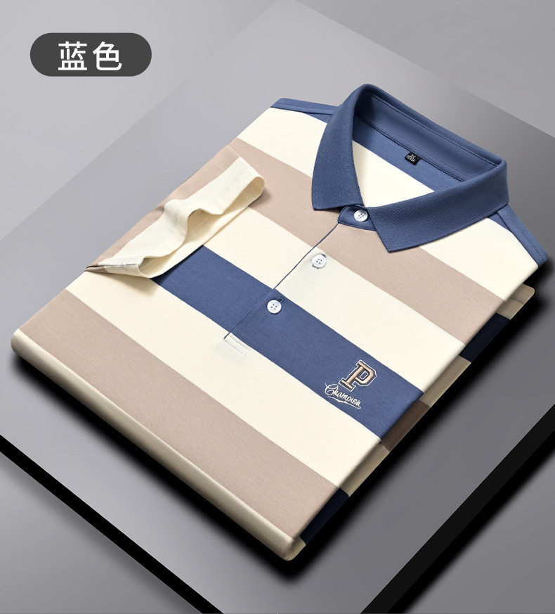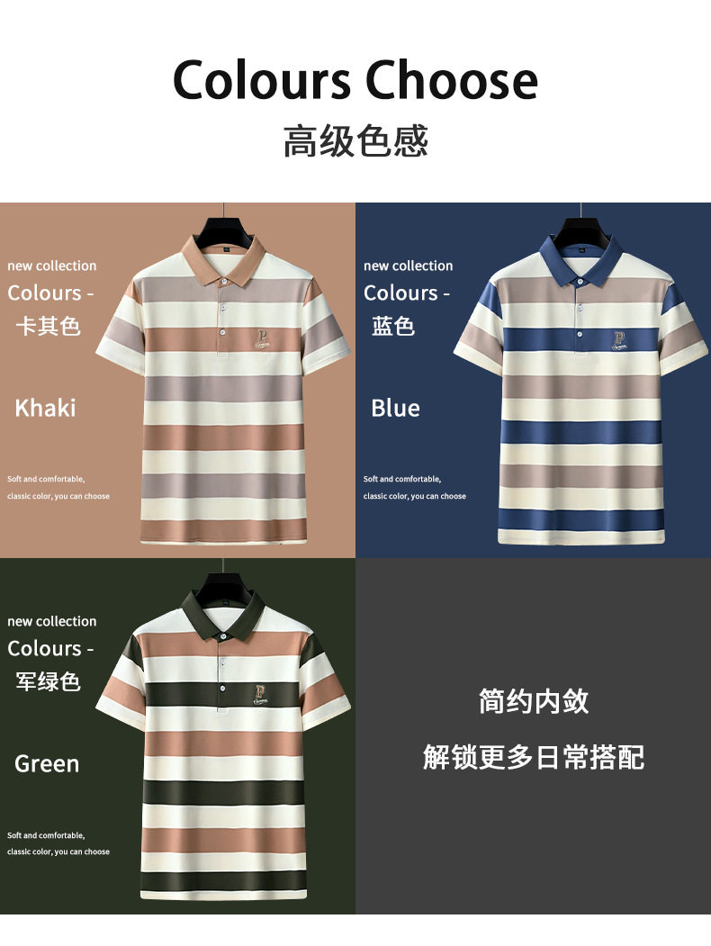 夏季短袖t恤男翻领宽松条纹撞色半袖t桖商务潮流男Polo衫 PSL-7335