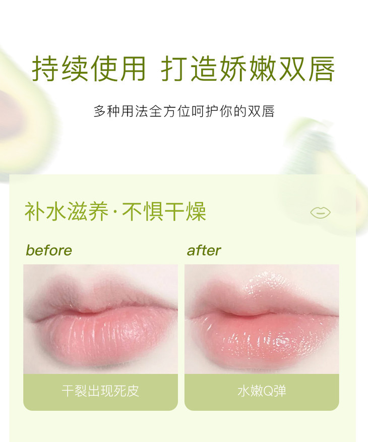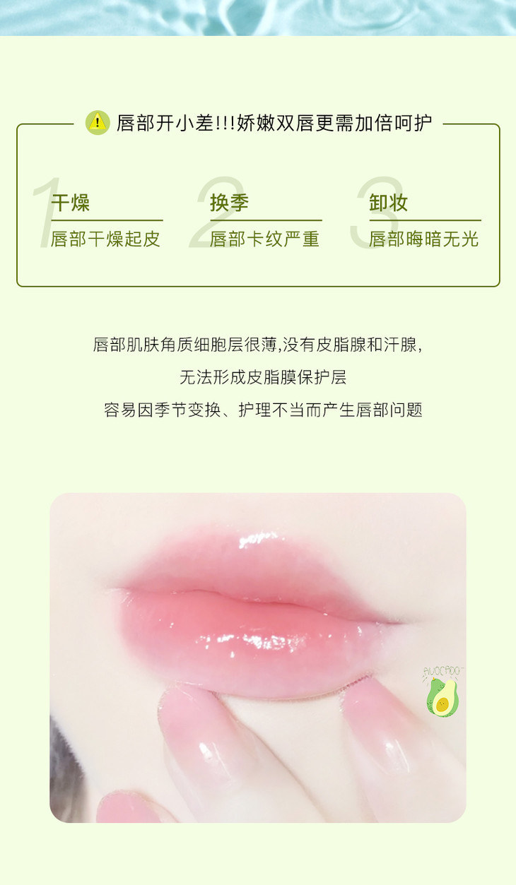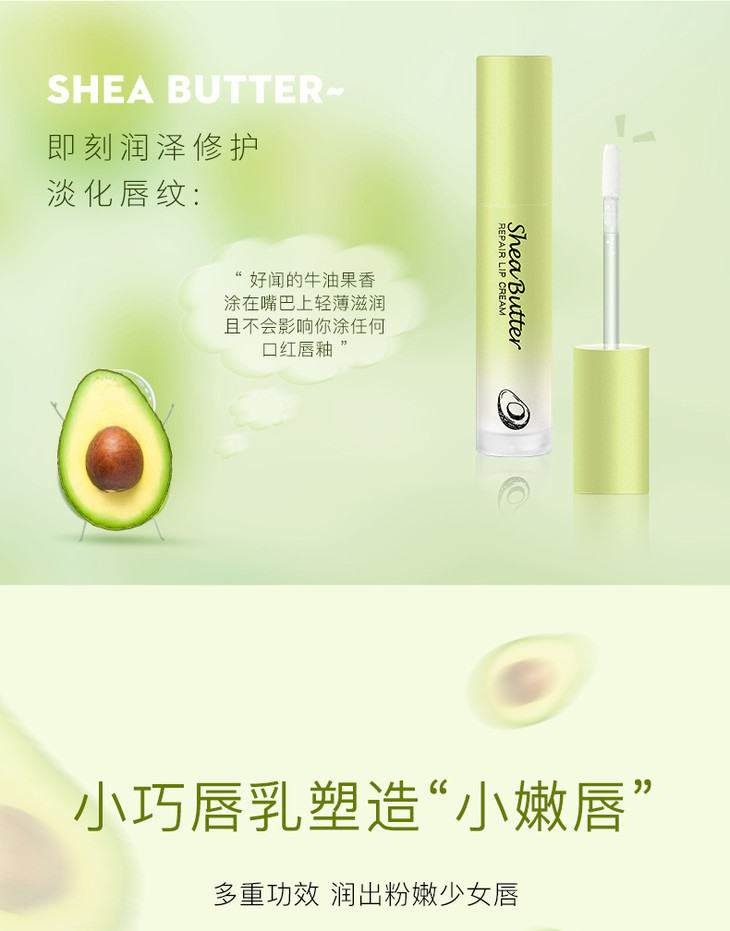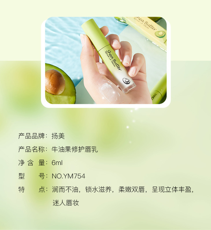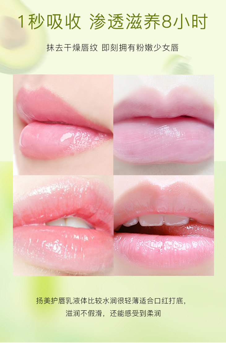 【润出粉嫩少女唇】娇润双唇加倍呵护润泽修护淡化唇纹扬美牛油果修护唇乳