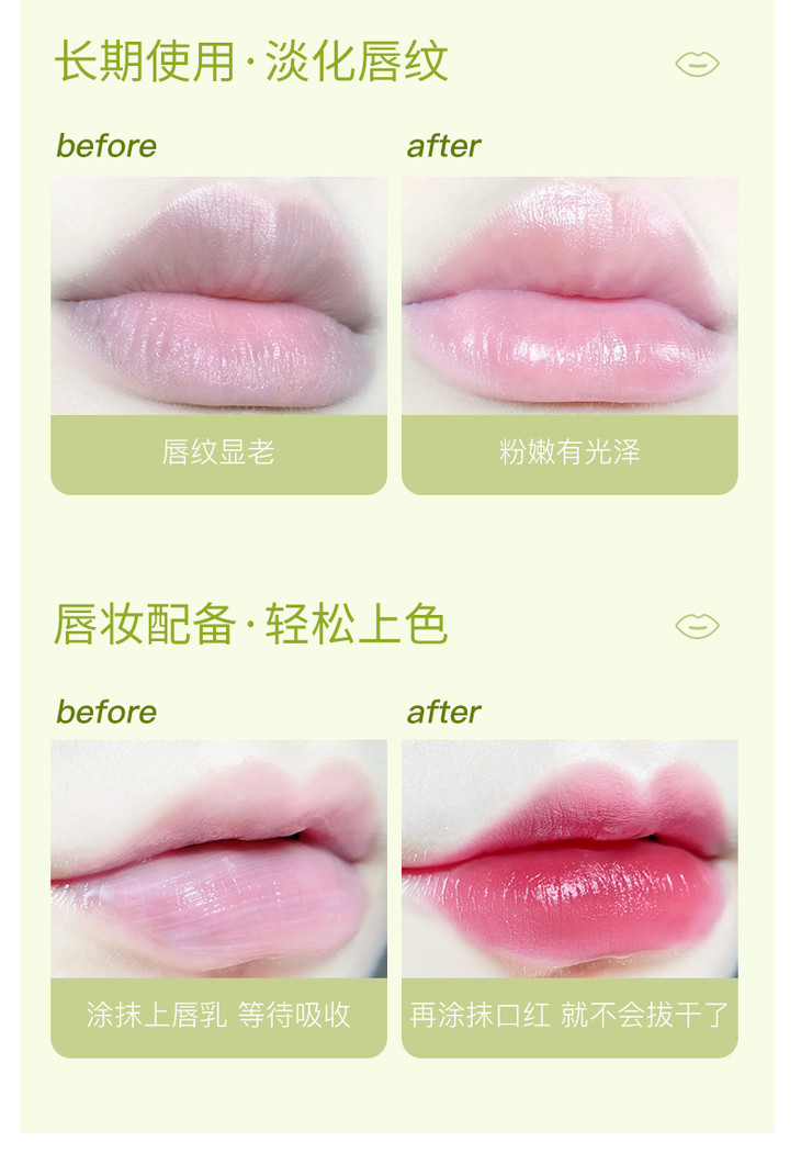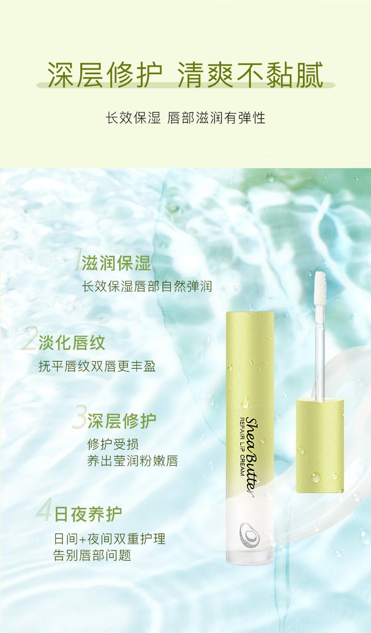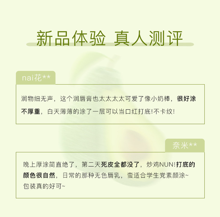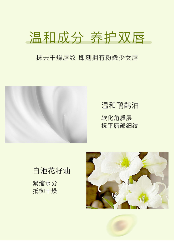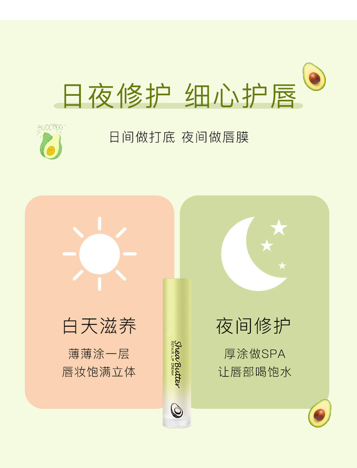 【润出粉嫩少女唇】娇润双唇加倍呵护润泽修护淡化唇纹扬美牛油果修护唇乳