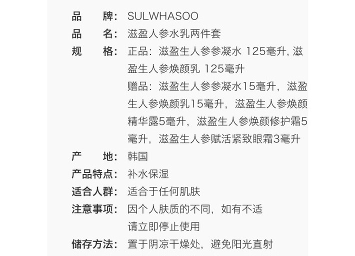 【保税直邮】韩国Sulwhasoo/雪花秀人参套 版本随机发