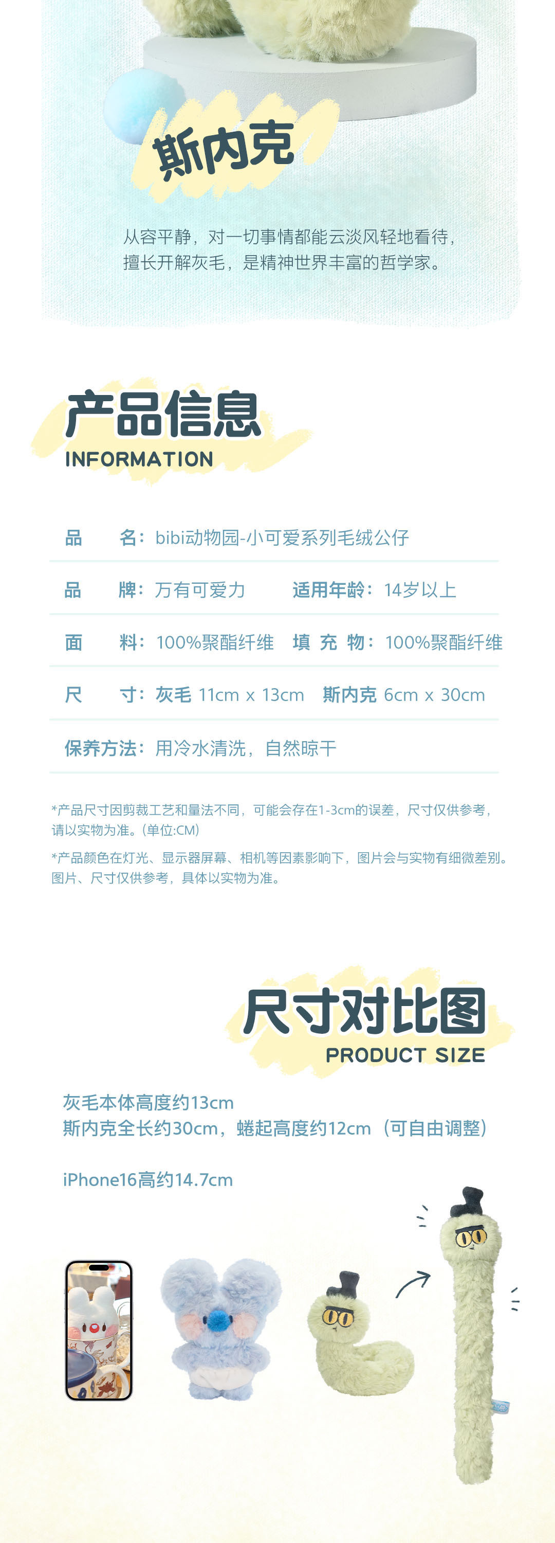 【多规格】bibi动物园小可爱系列毛绒公仔 灰毛 斯内克