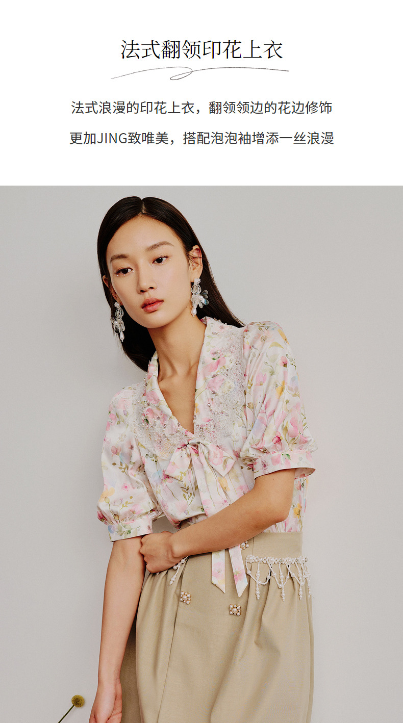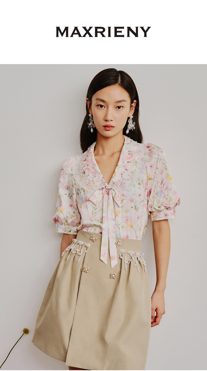 MAXRIENY欧式园艺风翻领印花衬衫多巴胺碎花上衣(货号:MC88TP354)