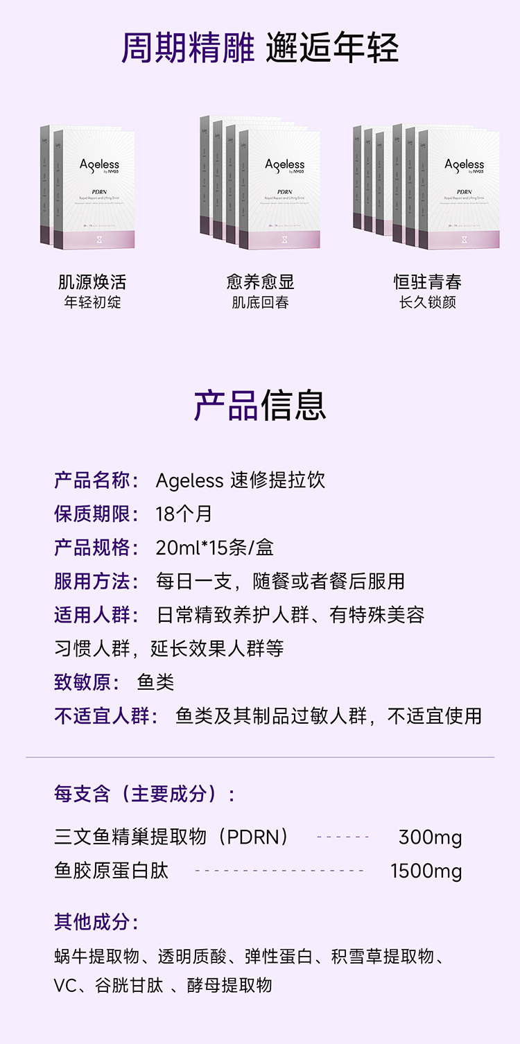 PDRN|口服三文鱼水光 速修+提拉 300mg高含量抗氧PDRN 超水光美肤 20ml*15条 NYO3 紧致淡纹多肽抗皱 20ml*15条