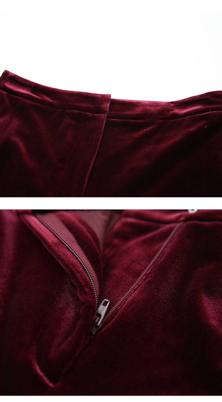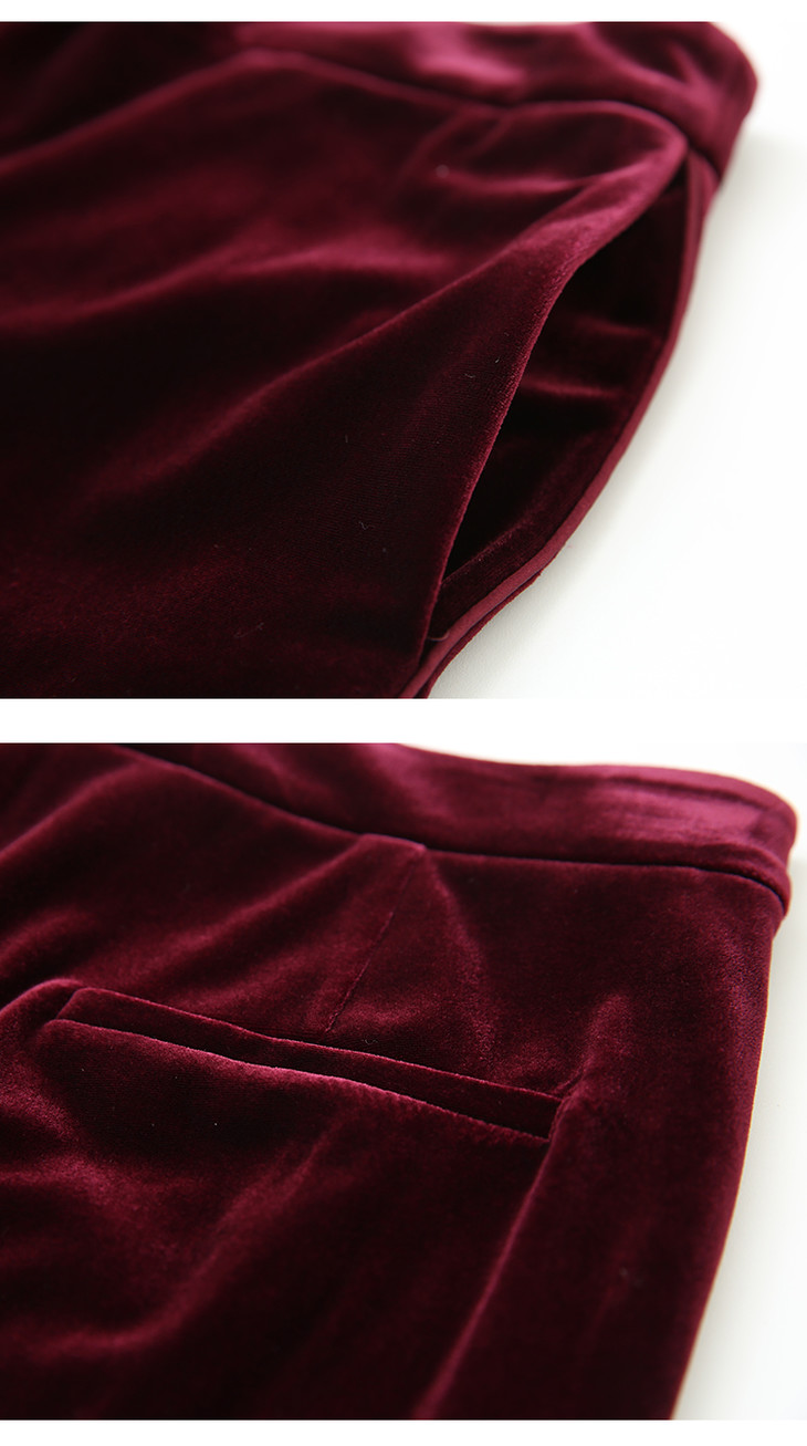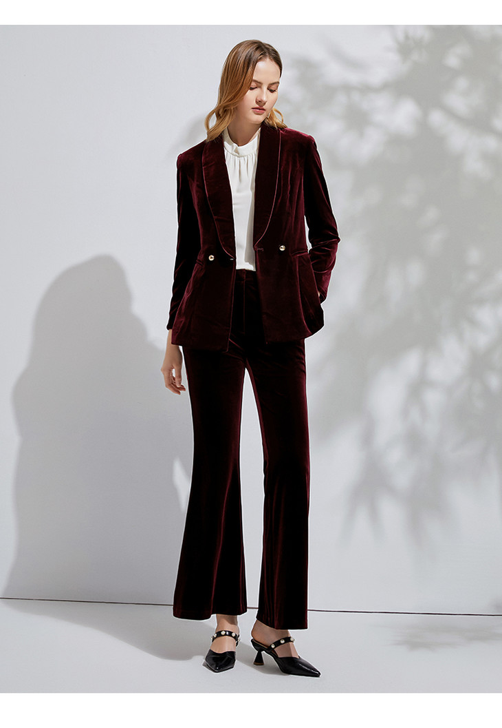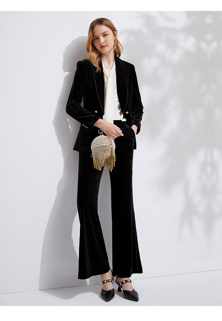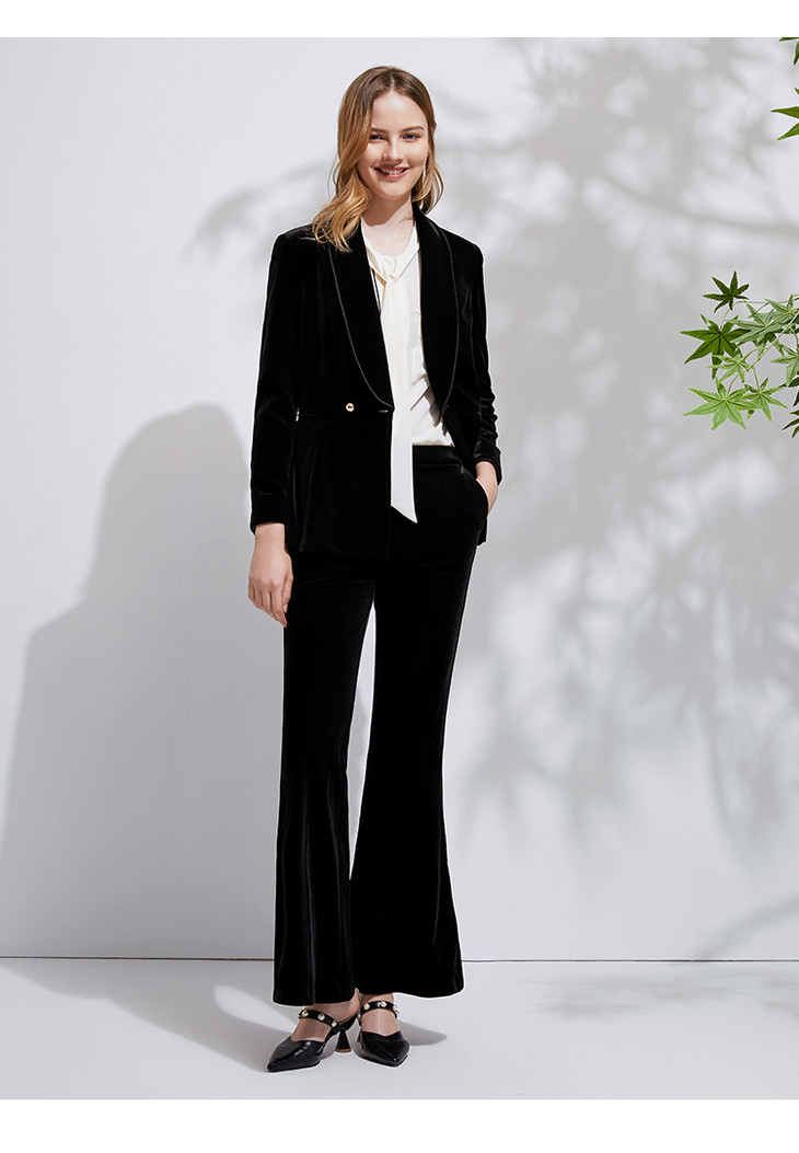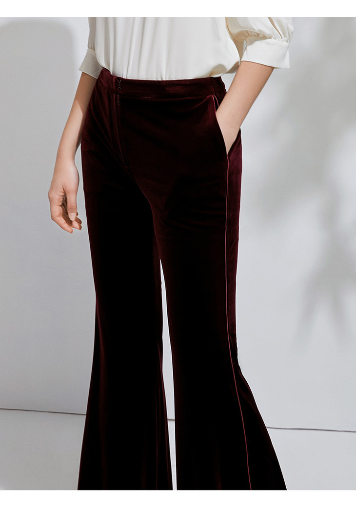 EITIE爱特爱春季新款时尚通勤复古洋气中腰丝绒喇叭长裤女裤6305010