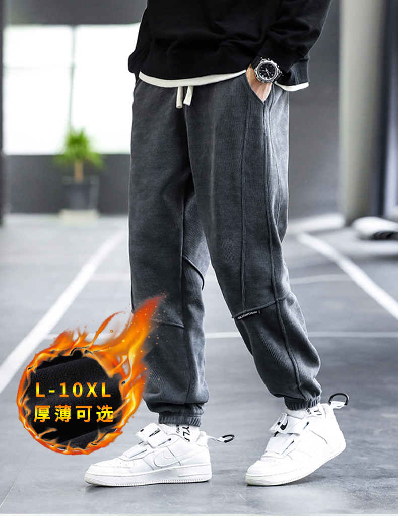【新款DH】大依优型大码灯芯绒橡筋口奥利绒内里加绒裤休闲裤宽松小脚长裤加肥加大裤子胖子