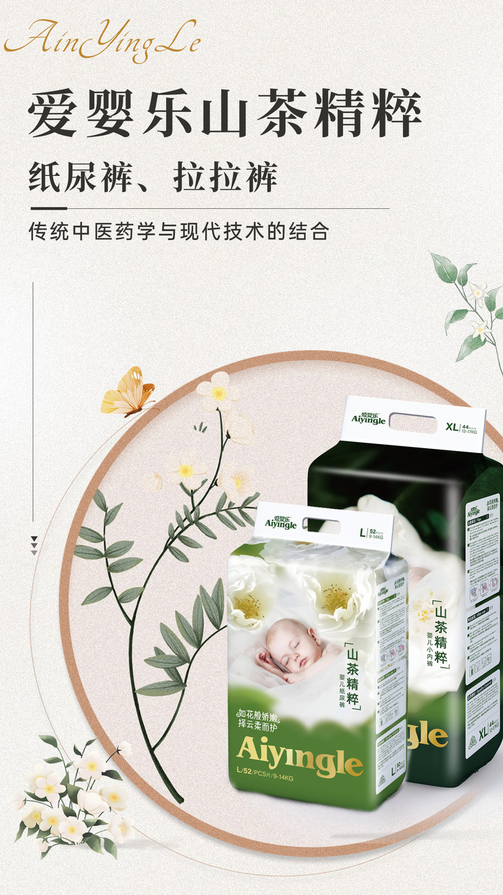 爱婴乐山茶花精粹超薄透气纸尿裤/拉拉裤