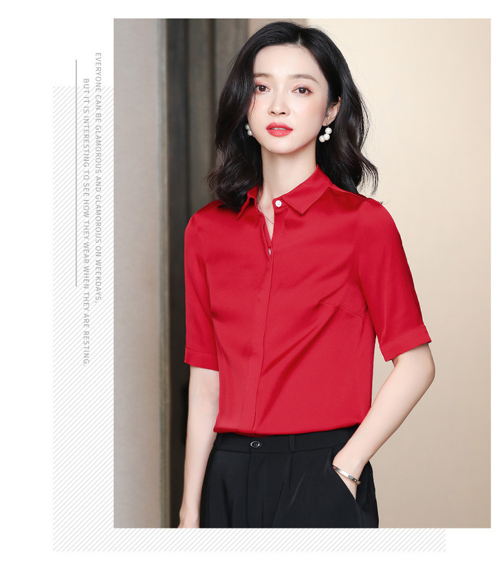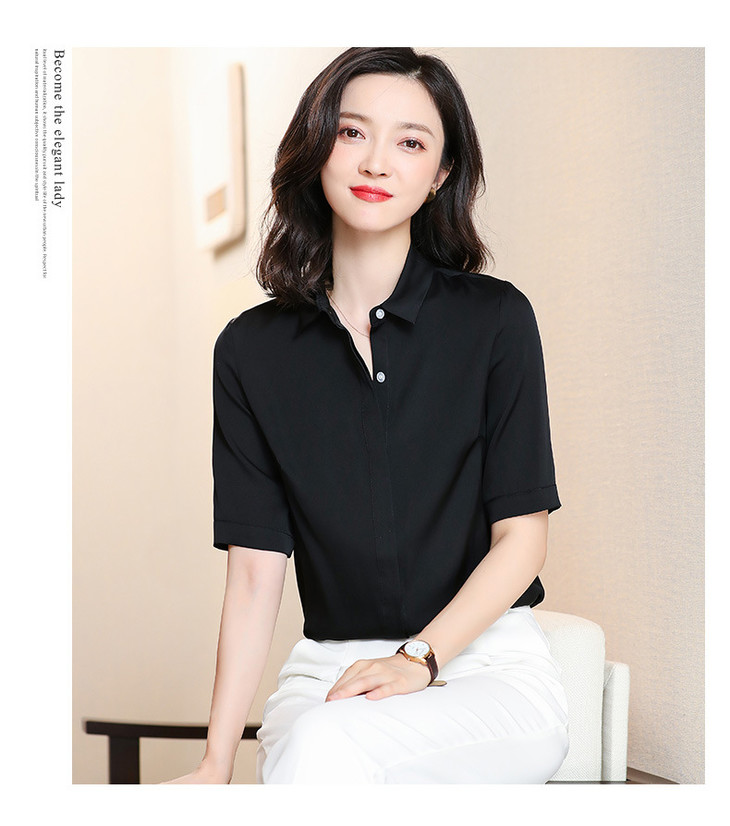 纯色百搭,气质简约真丝短袖衬衫ASE-3350