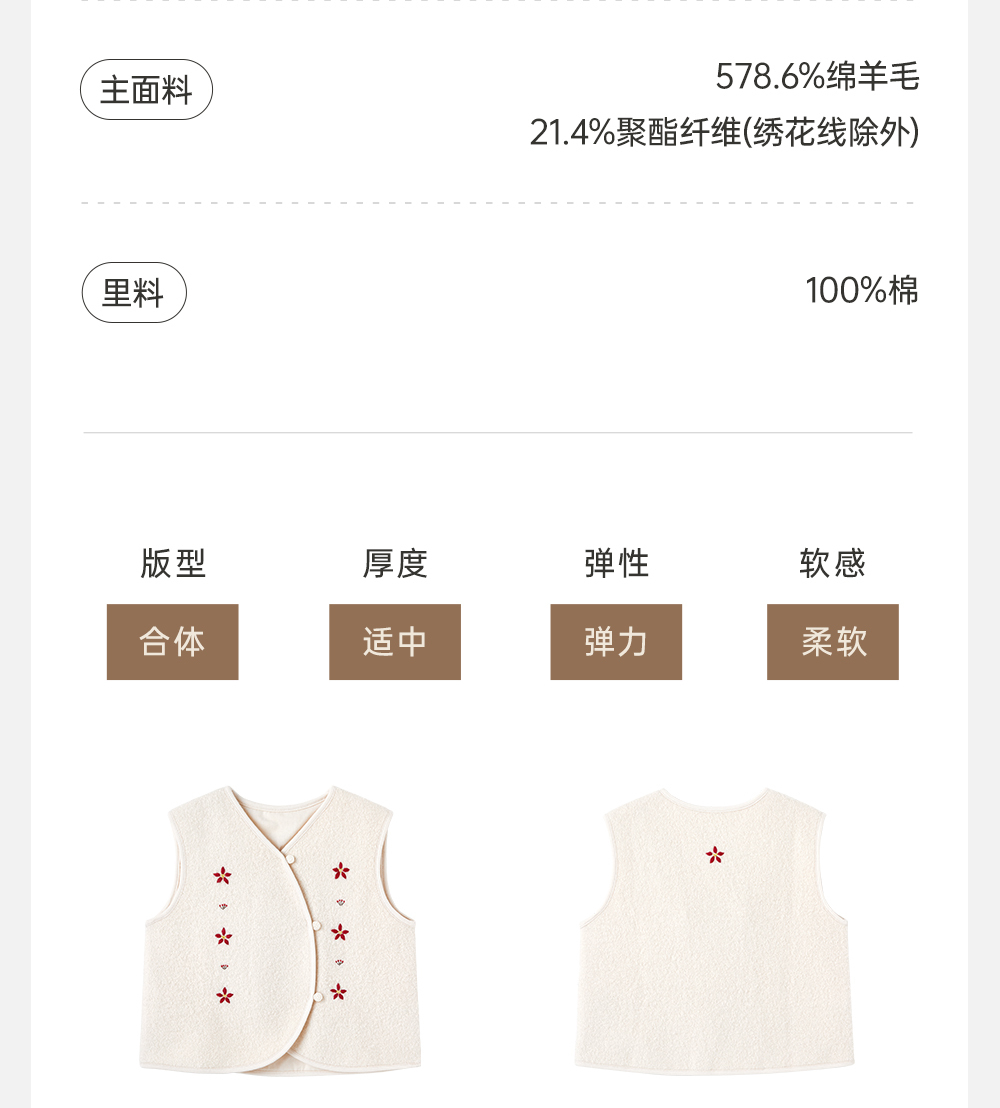 【高定系列】英氏羊毛马甲秋季百搭轻薄背心女童马夹新款上衣