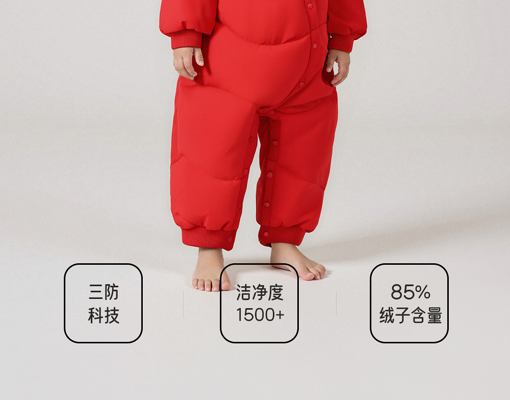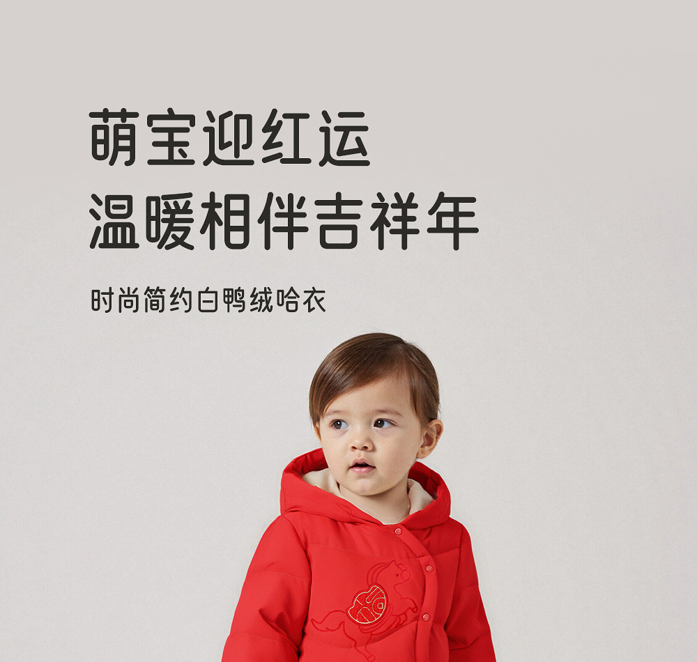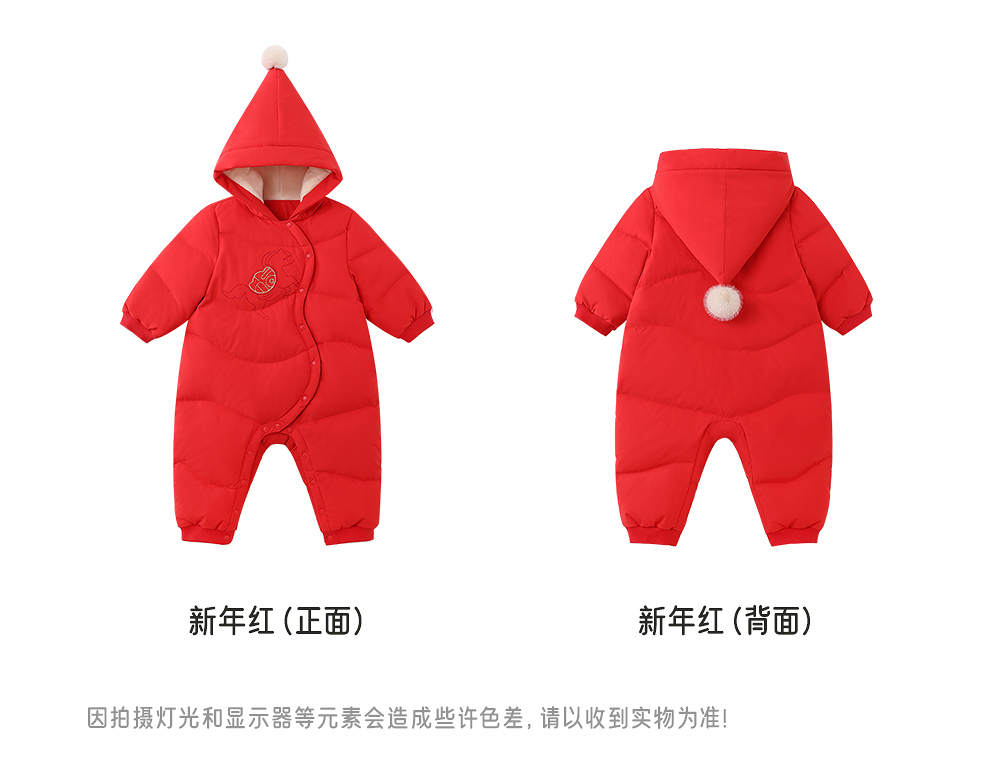 【商场同款】英氏婴儿羽绒爬服哈衣新生儿新年满月爬服喜庆新款