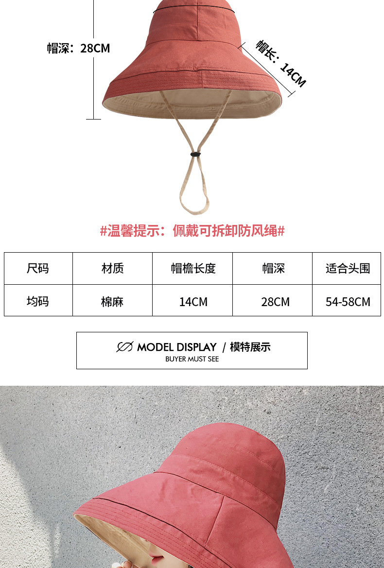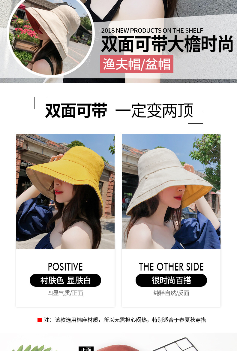 网红渔夫帽百搭夏天潮双面宽檐防晒遮阳帽TZW