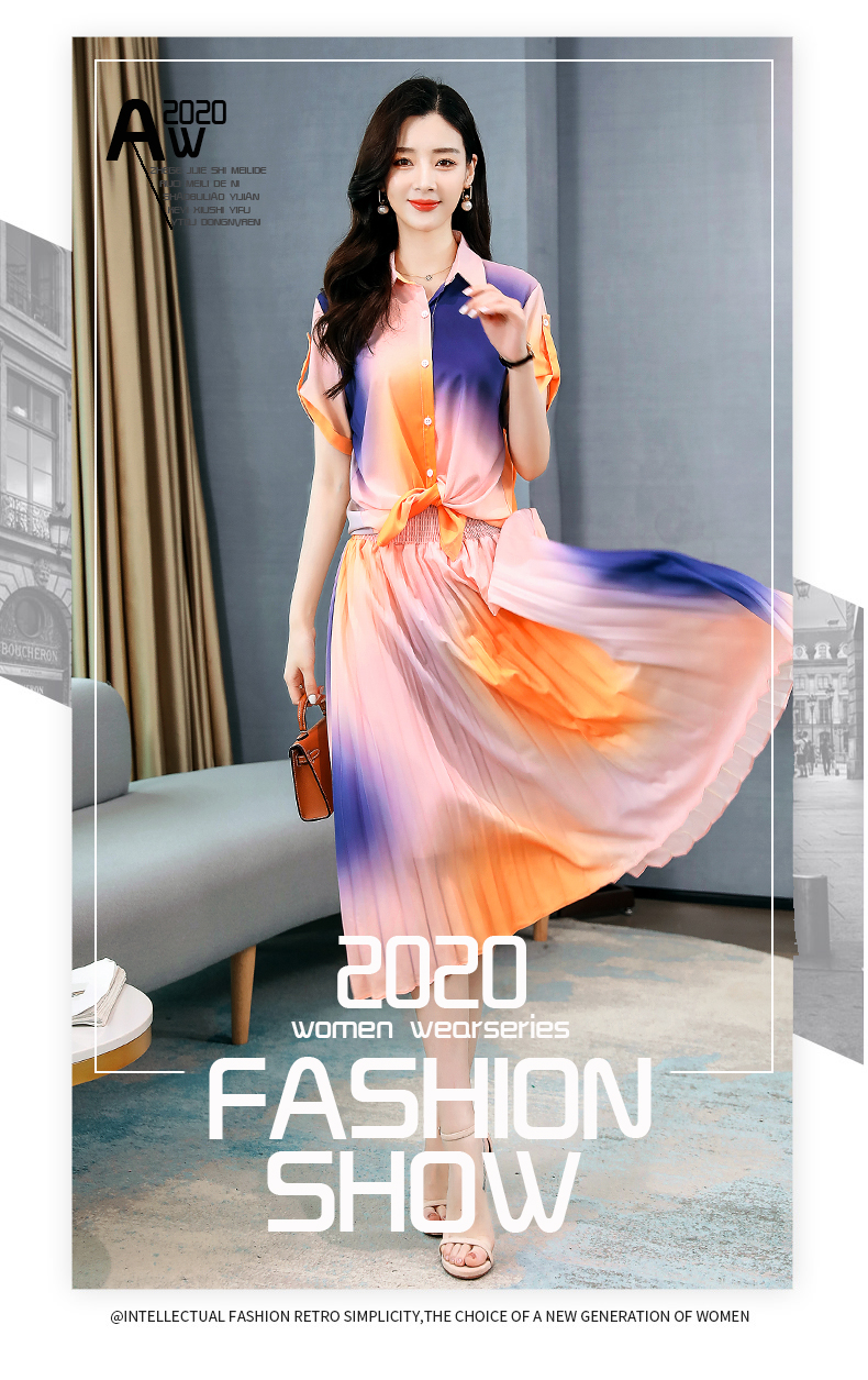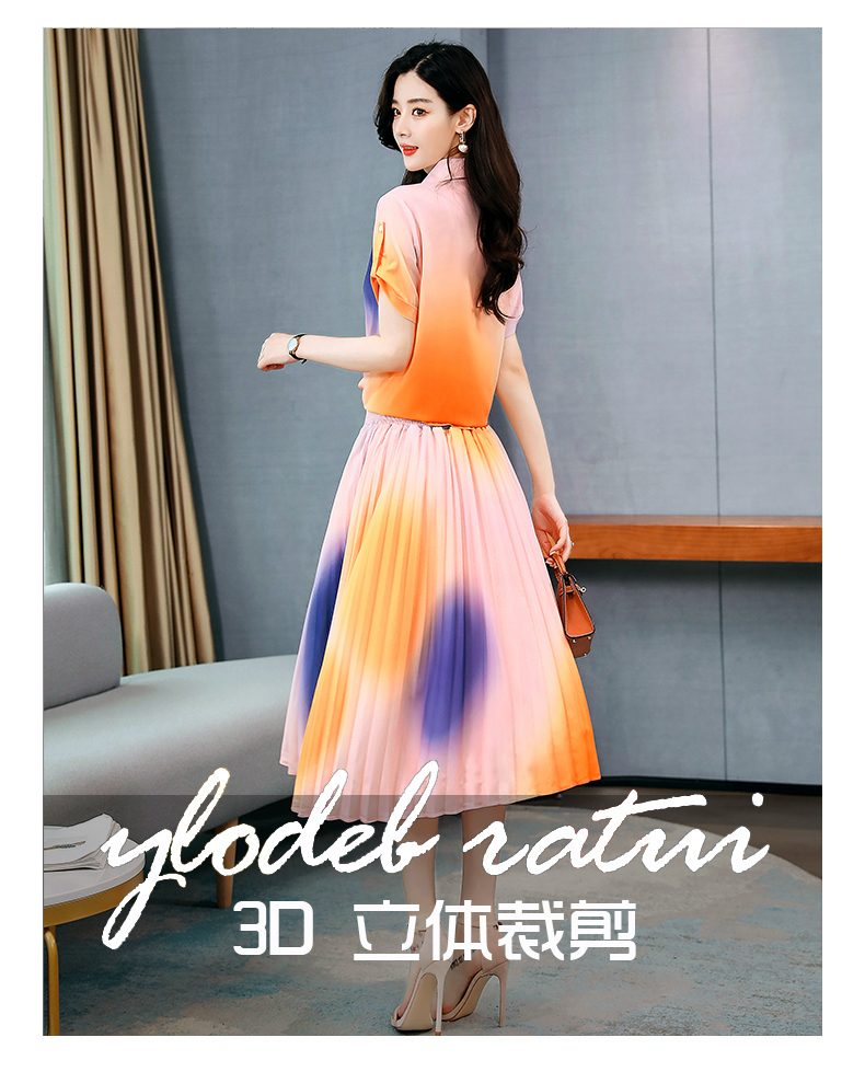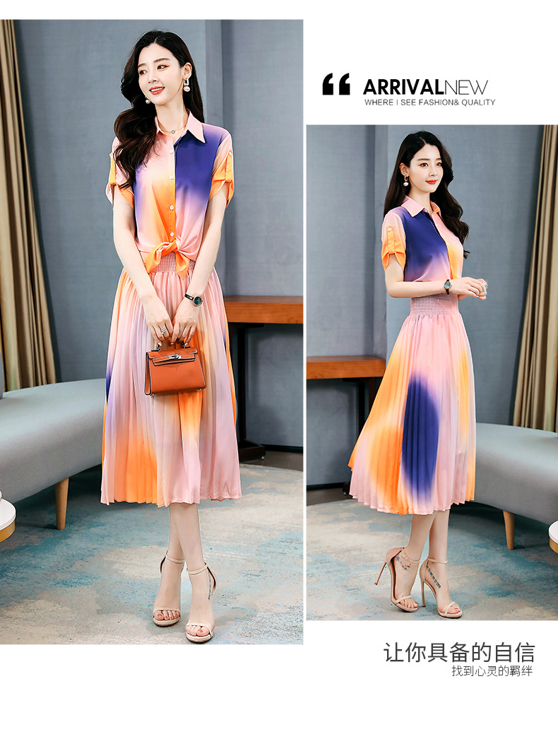 WZNH-CZJ3331新品夏季数码印花短袖两件套装裙
