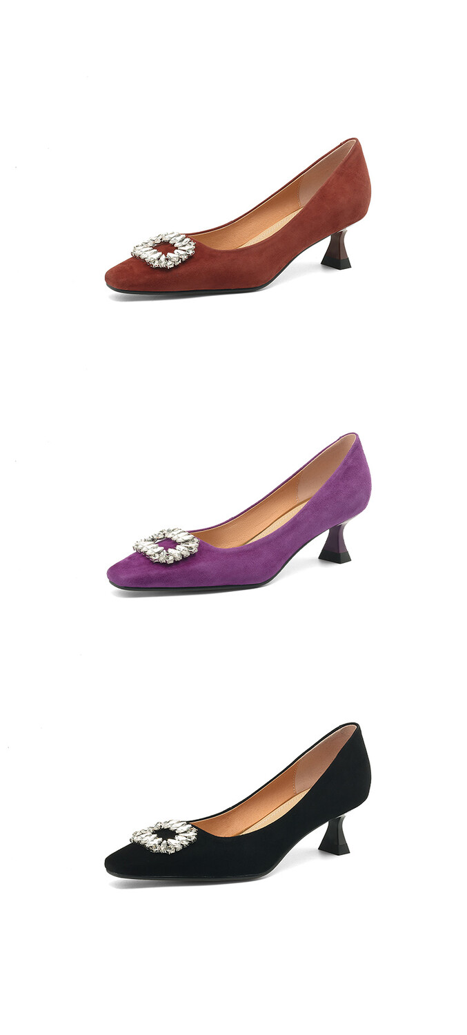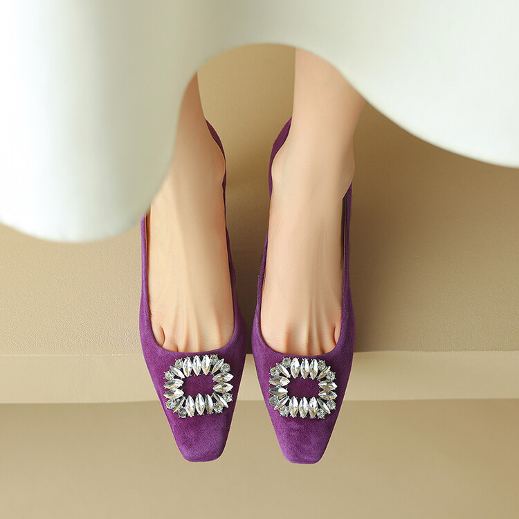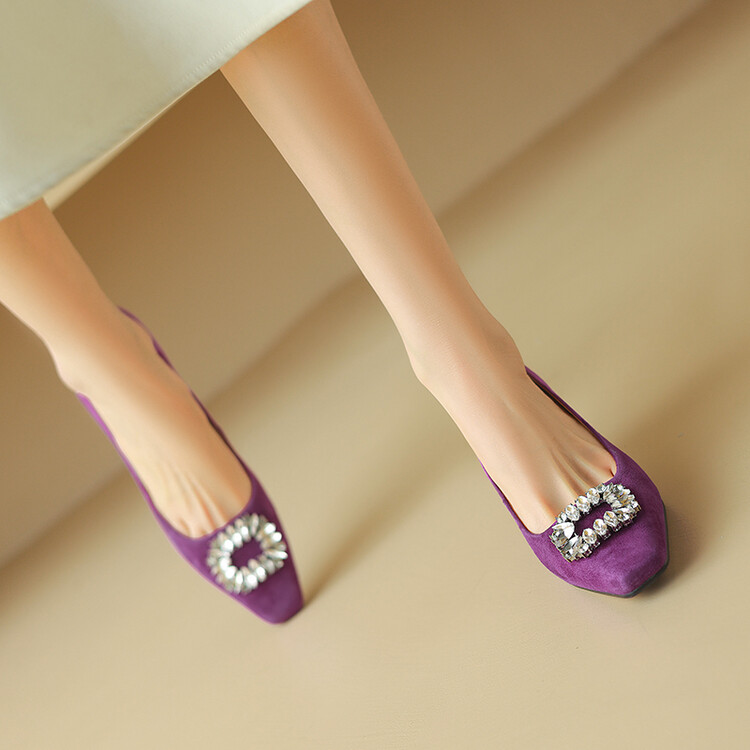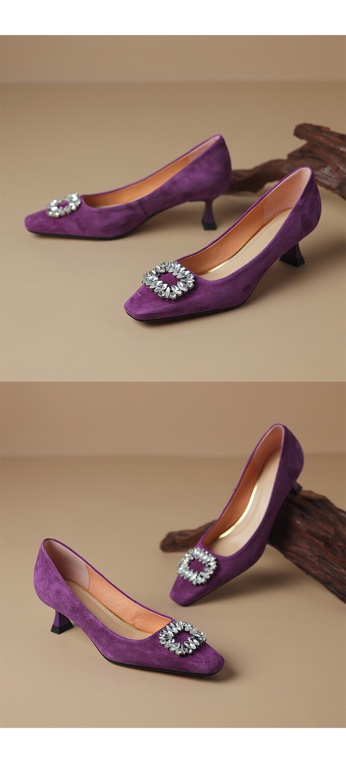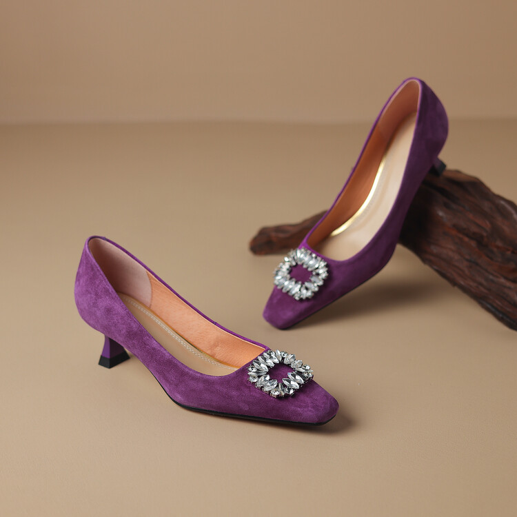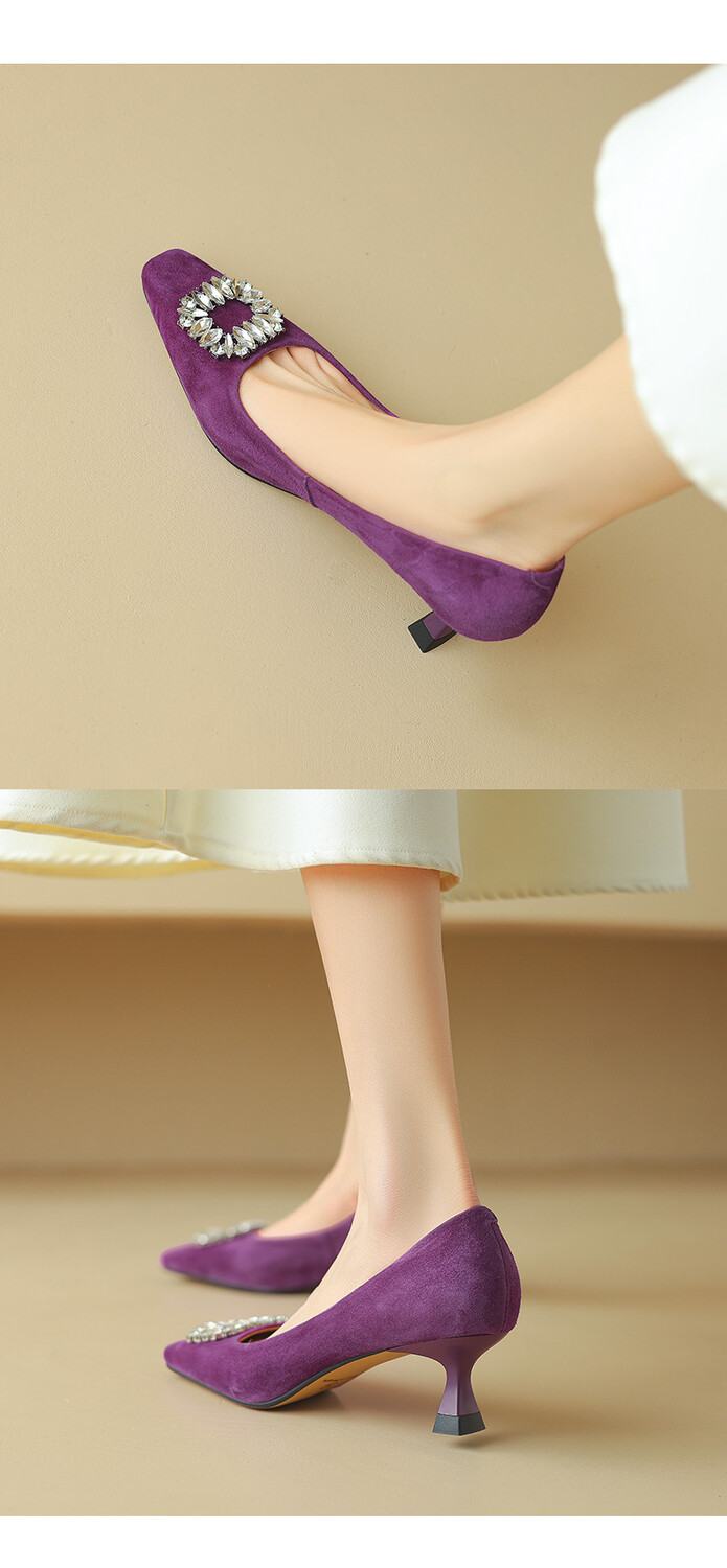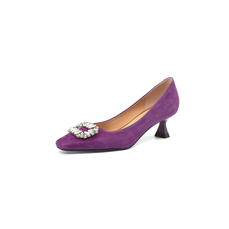 【预售5天】软面羊皮单鞋女方头水钻中跟细跟浅口紫色低帮鞋气质单鞋SLLK&sl-8006