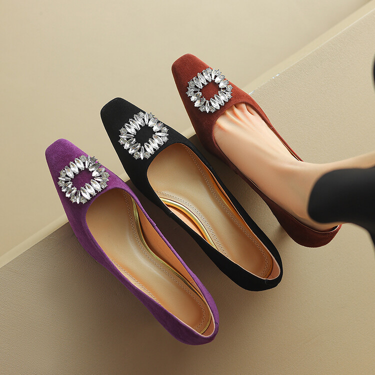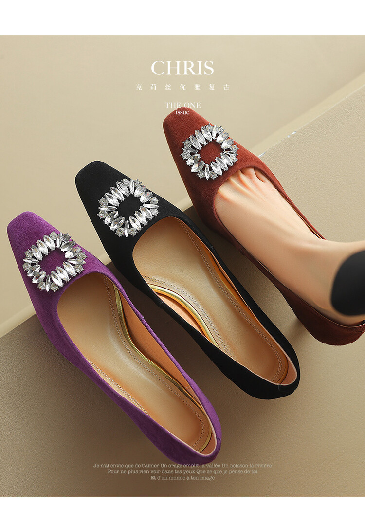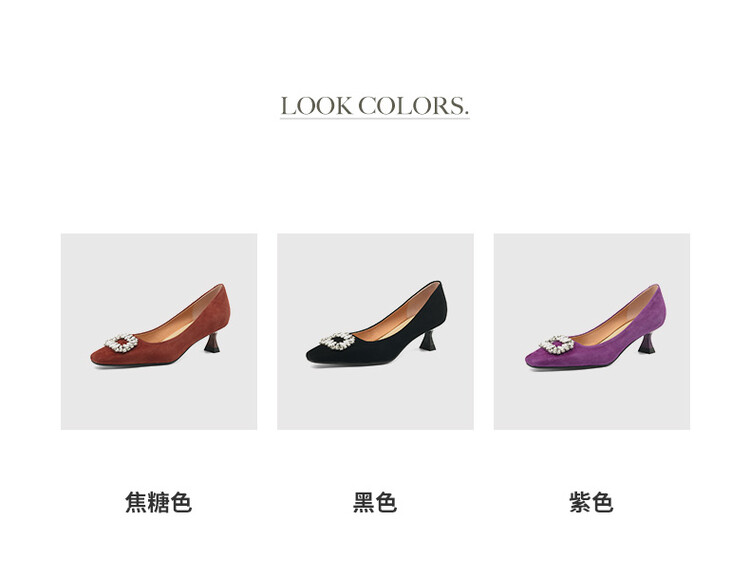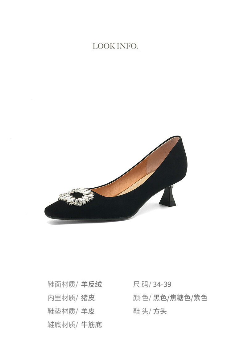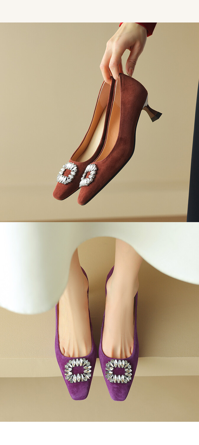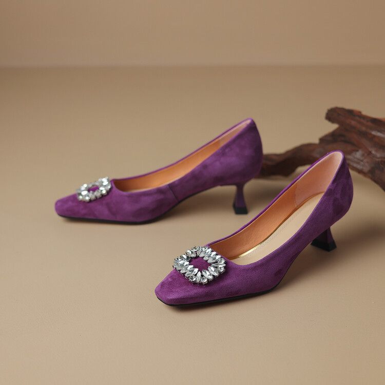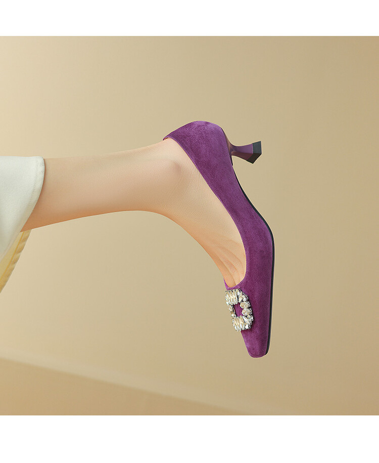 【预售5天】软面羊皮单鞋女方头水钻中跟细跟浅口紫色低帮鞋气质单鞋SLLK&sl-8006