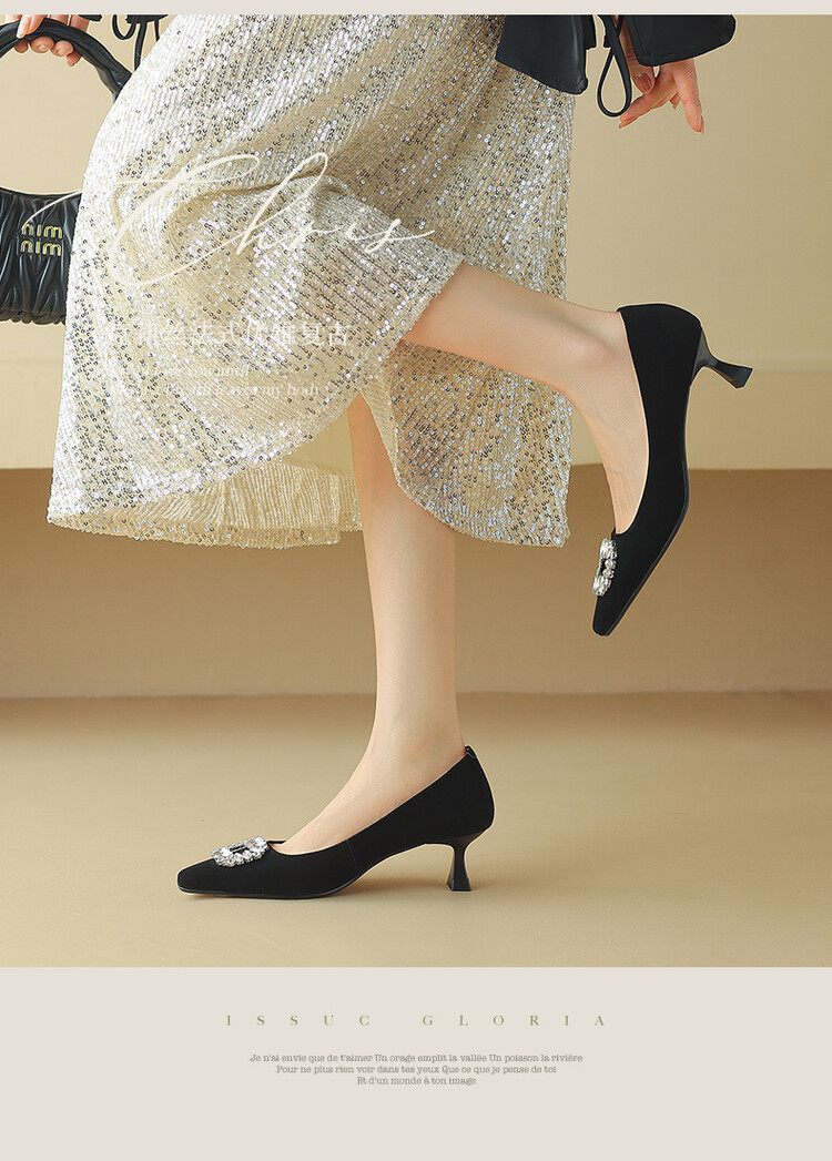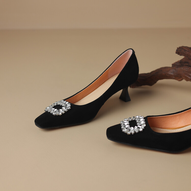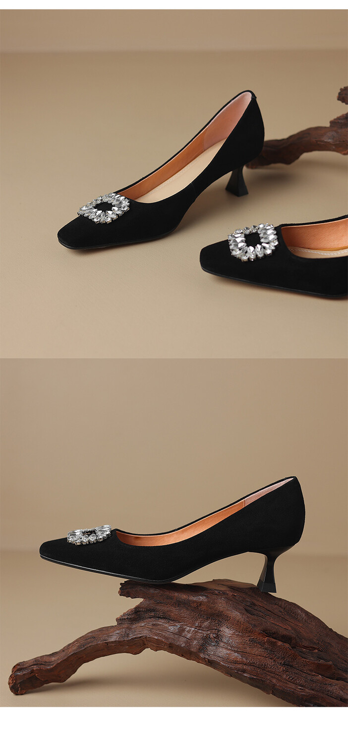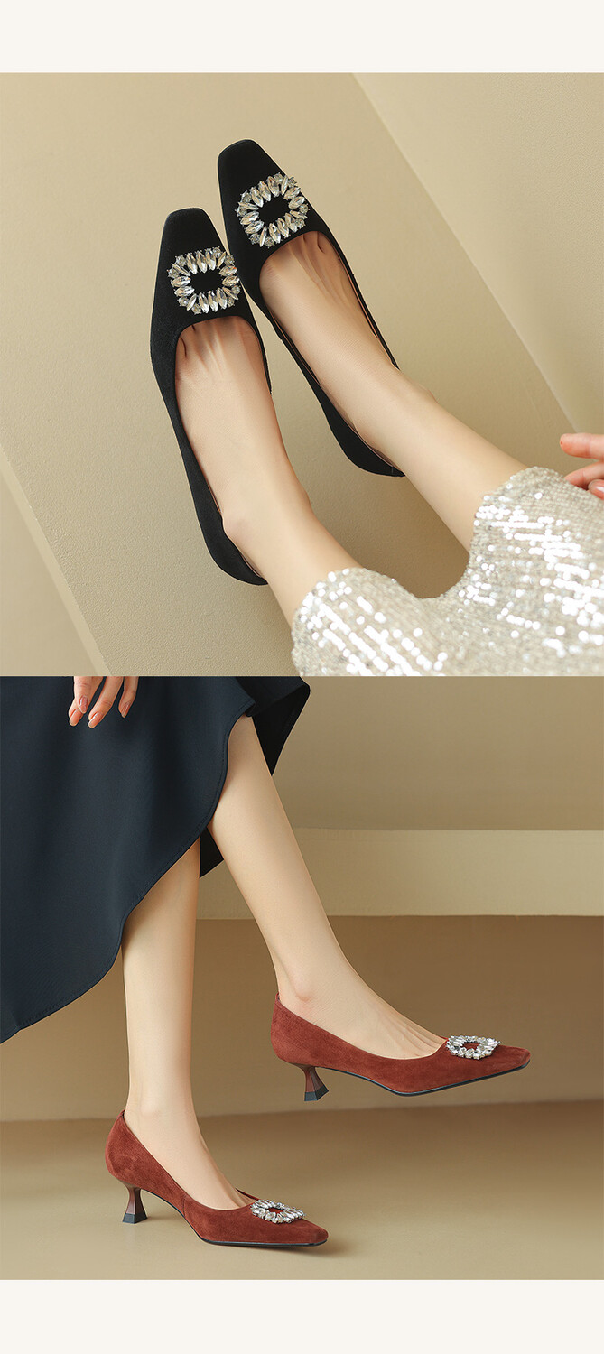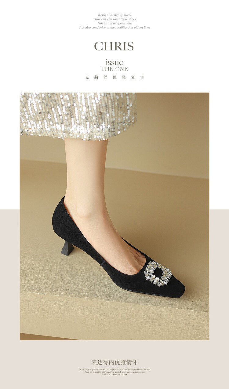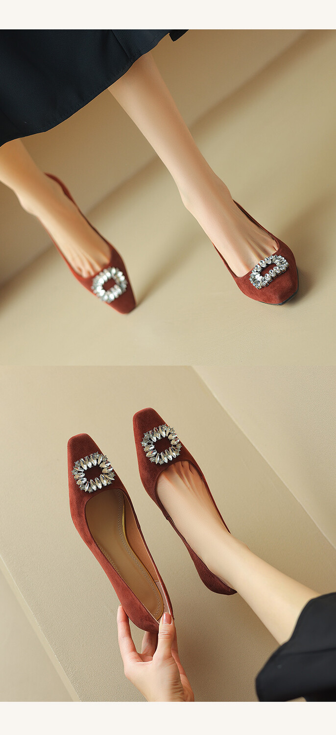 【预售5天】软面羊皮单鞋女方头水钻中跟细跟浅口紫色低帮鞋气质单鞋SLLK&sl-8006