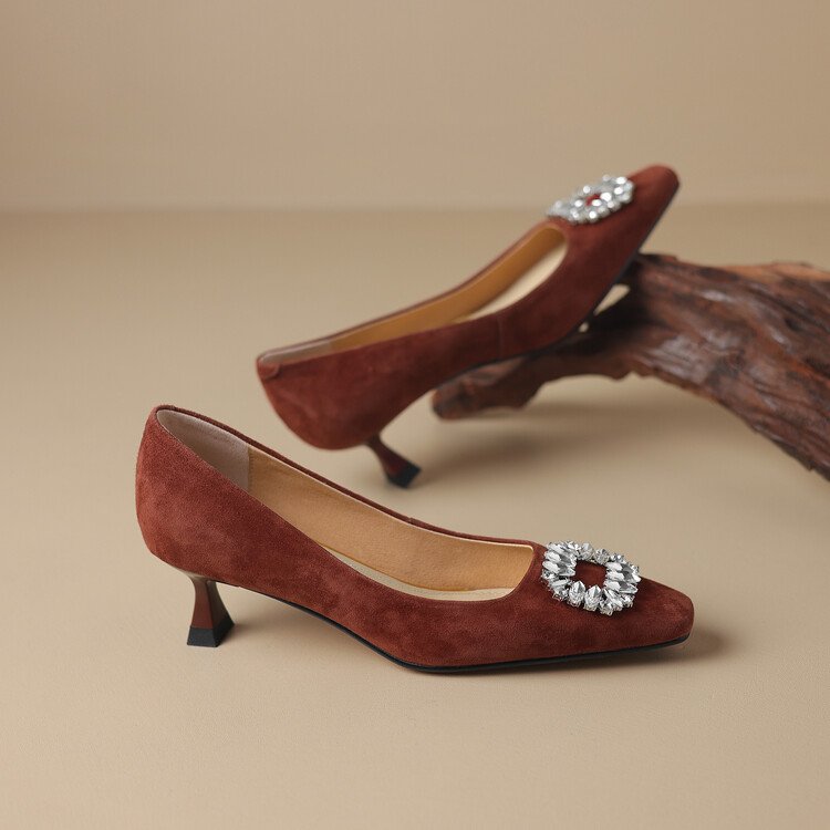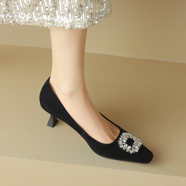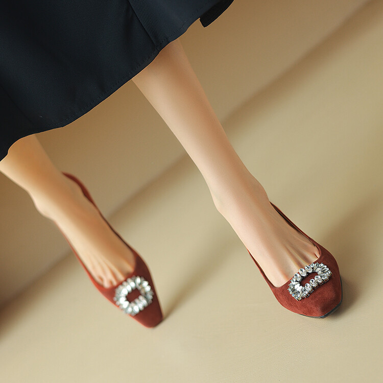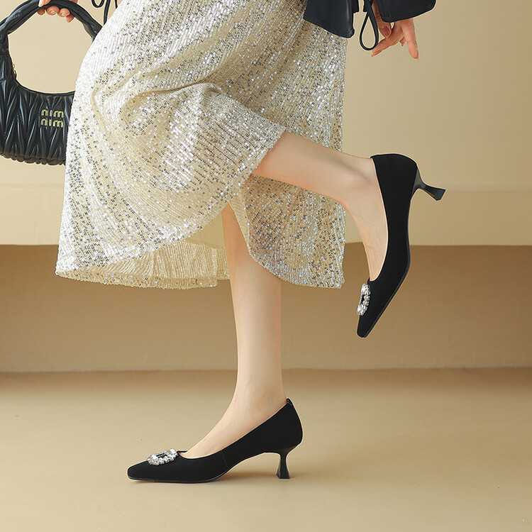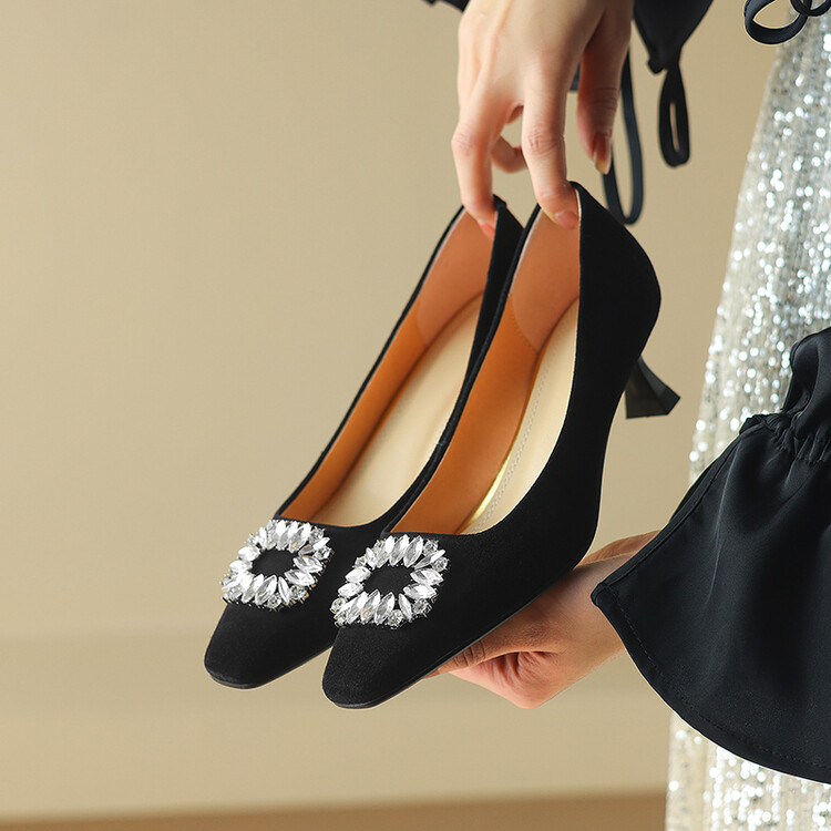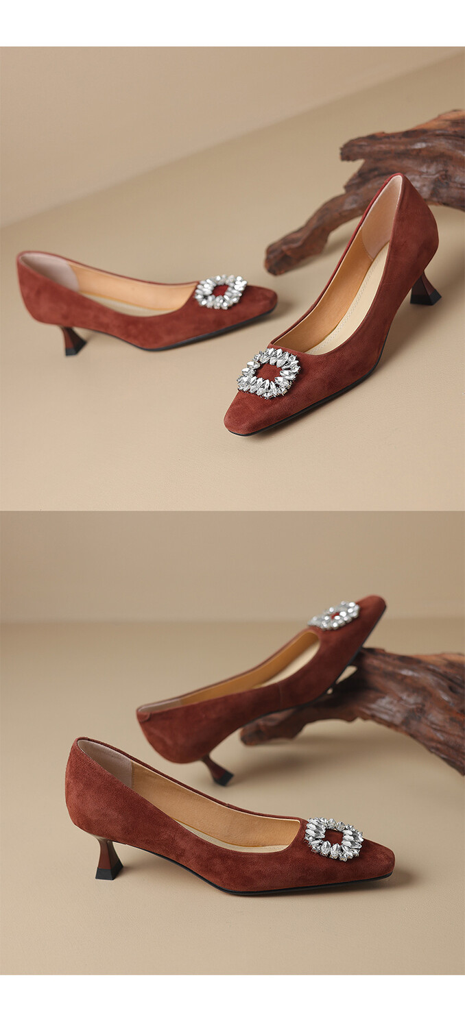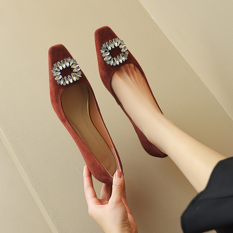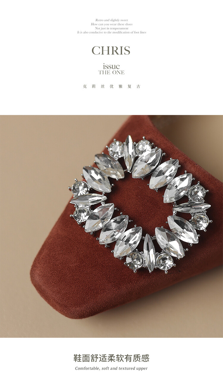 【预售5天】软面羊皮单鞋女方头水钻中跟细跟浅口紫色低帮鞋气质单鞋SLLK&sl-8006