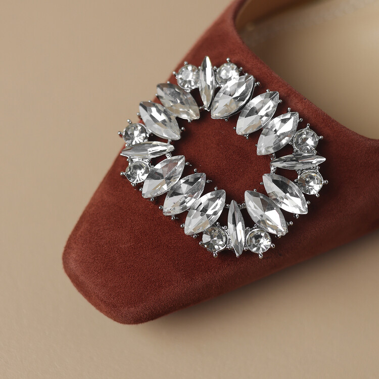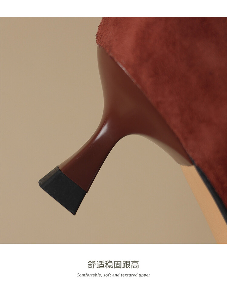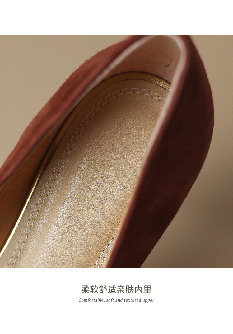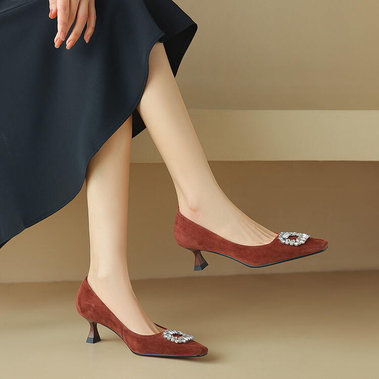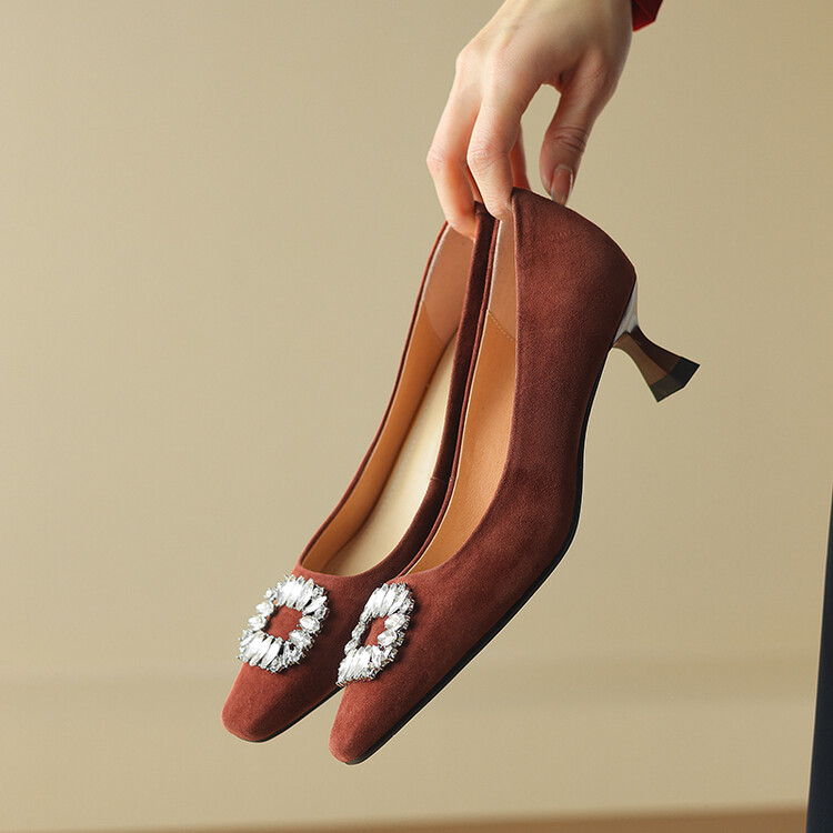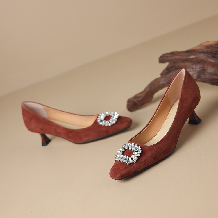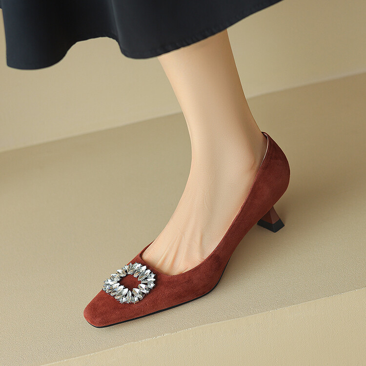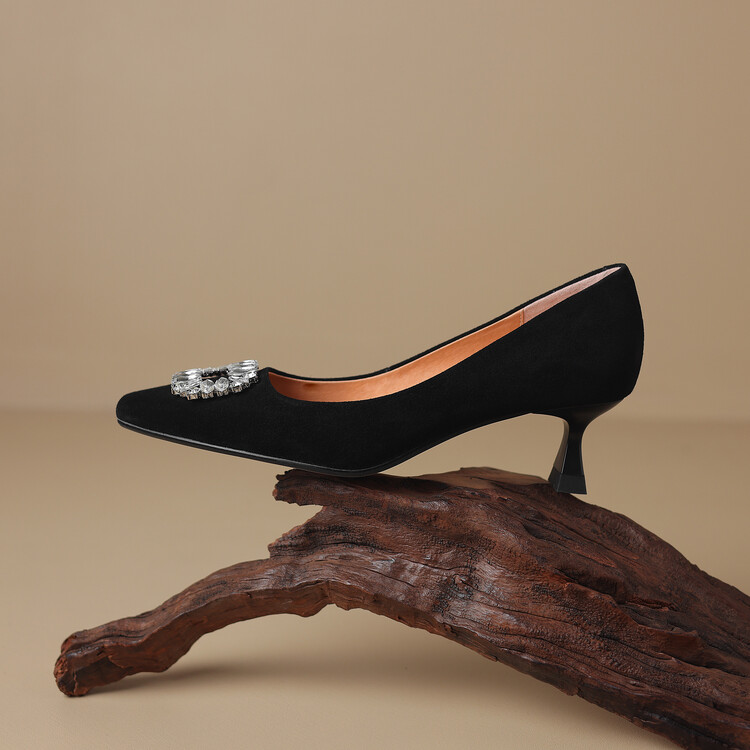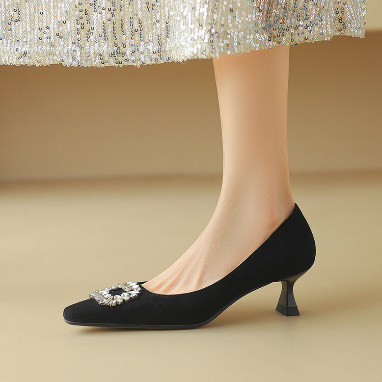 【预售5天】软面羊皮单鞋女方头水钻中跟细跟浅口紫色低帮鞋气质单鞋SLLK&sl-8006