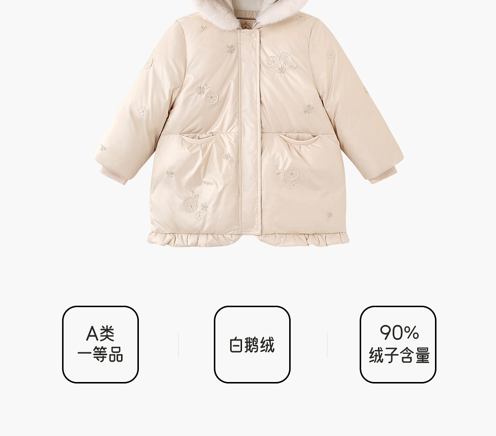 【高定系列】英氏儿童羽绒服冬季连帽抗菌外套女宝保暖防寒新款超韧绒