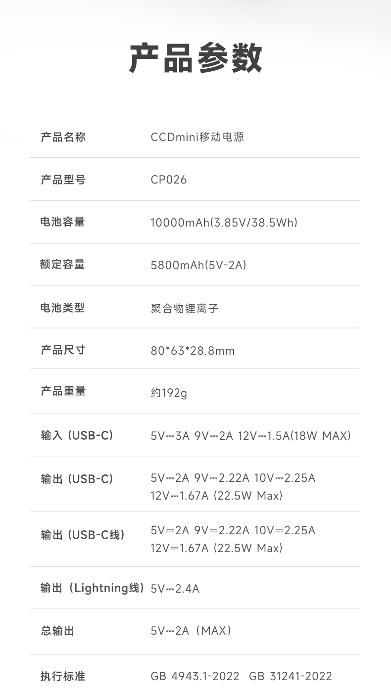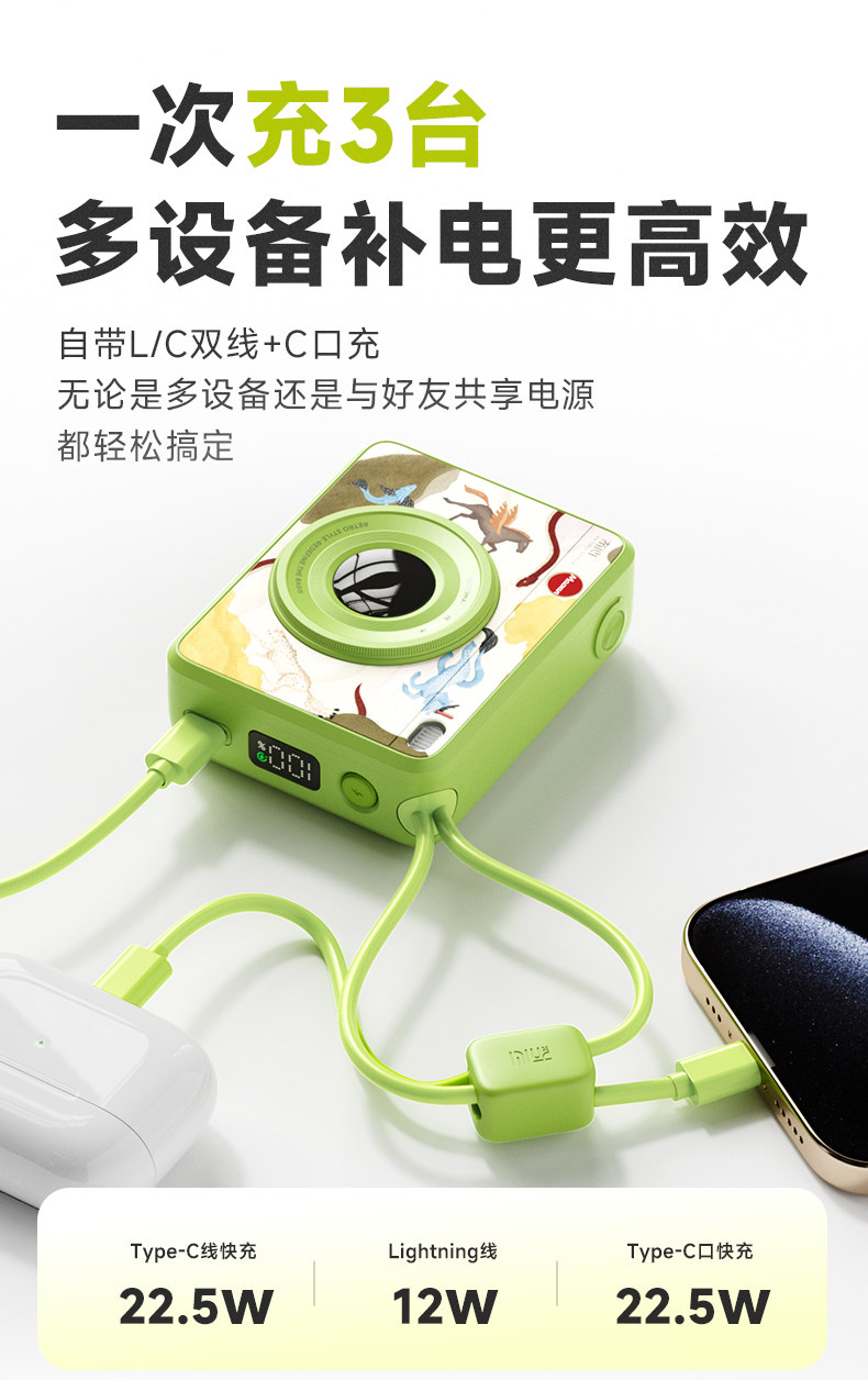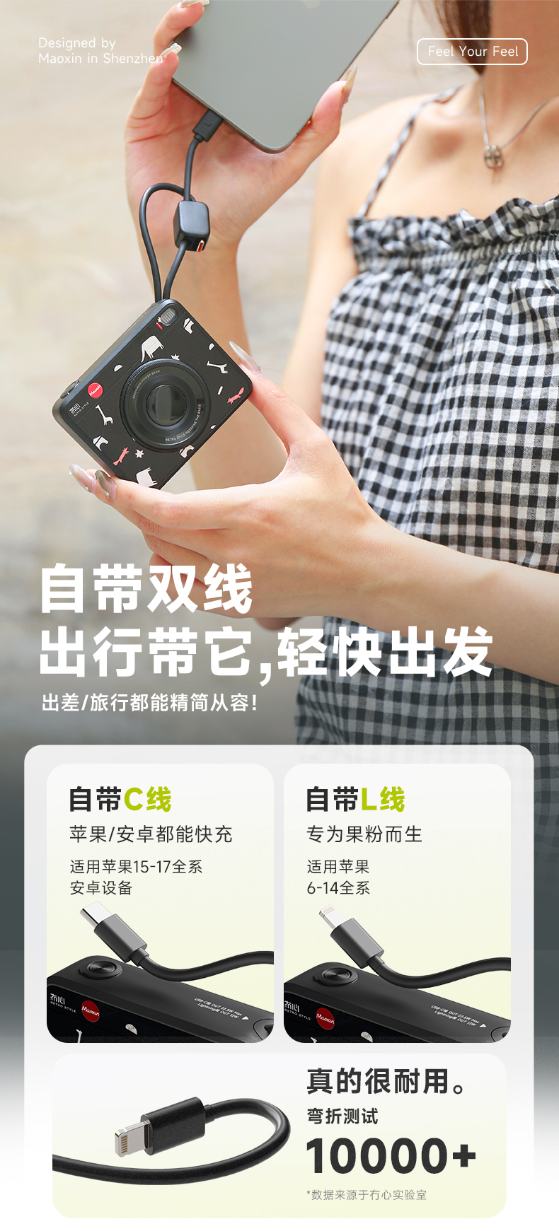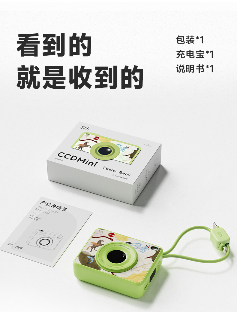 冇心 CCDmini插画款自带双线快充10000毫安充电宝