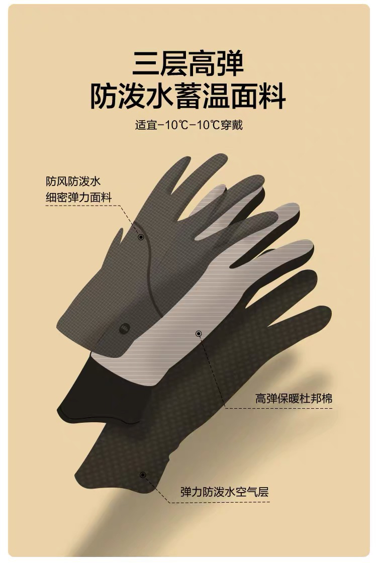 正品单,带包装,300来付,蕉下暖霁系列倍护保暖手套女士冬季防风防泼水全指防滑触屏魔术贴