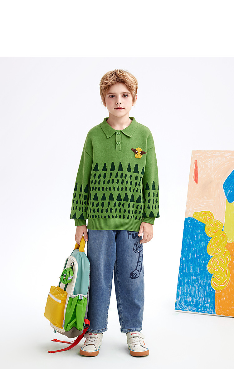 【MQD】童装POLO领毛衣冬季新款休闲针织衫卡通9434U0701