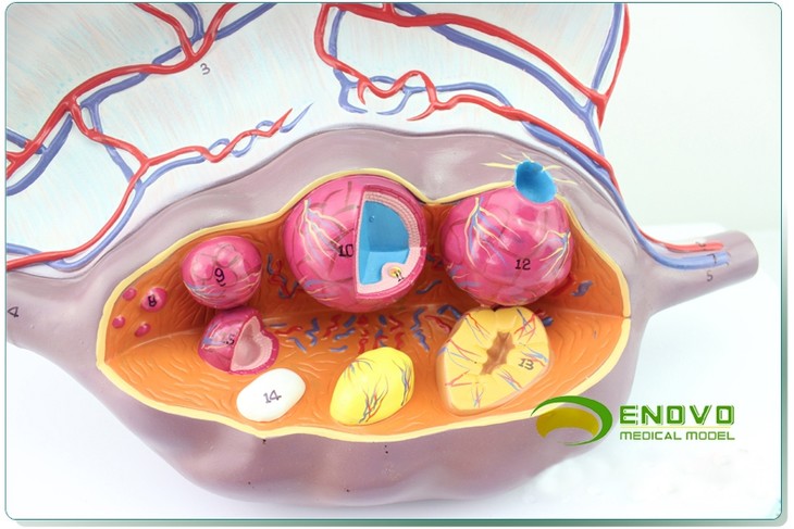 该模型可拆分为三部分,输卵管可以独立取下 五倍放大 详细的设计了子宫的输卵管及子宫伞的血管和解剖形态,并且详细的解剖了卵泡,展现了卵泡在不同阶段的表现,并且设计了单独的初级的卵泡白体横截面解剖 展示其内部结构