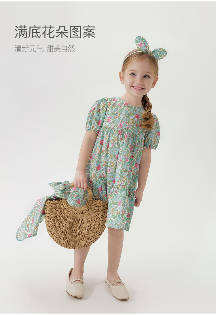 【马克珍妮 芦芙系列】夏装新款 女童花卉泡泡袖连衣裙220317