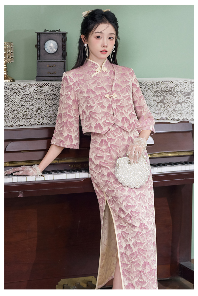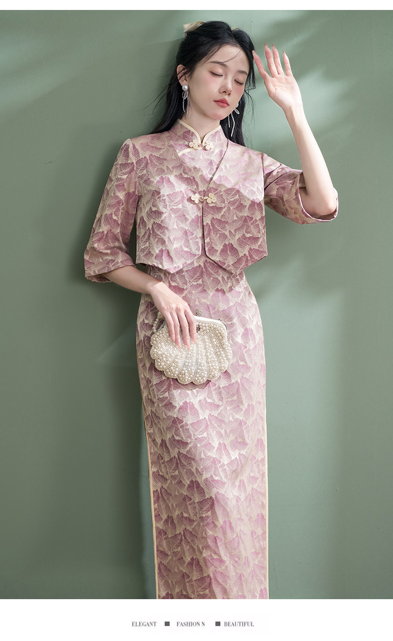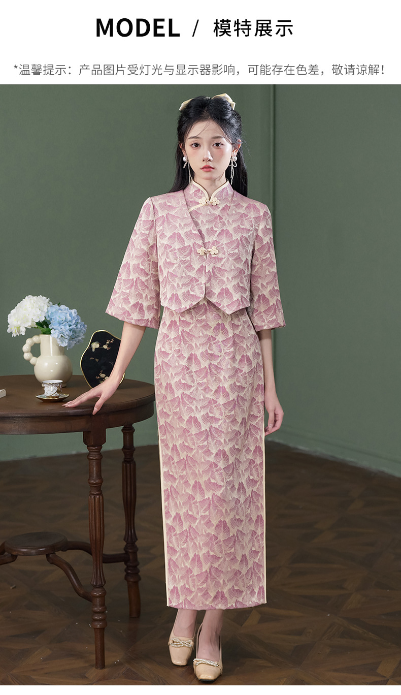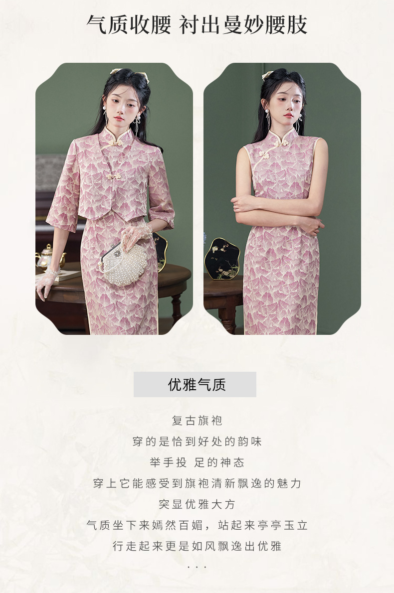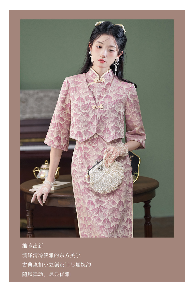 XL1102 2024年秋季新款改良旗袍日常国风修身年轻款粉色小香风气质高级感 商品图2