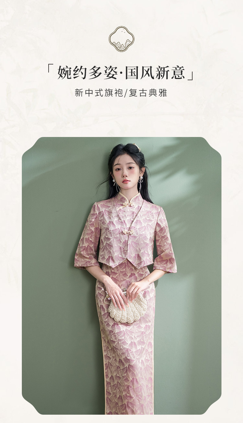 XL1102 2024年秋季新款改良旗袍日常国风修身年轻款粉色小香风气质高级感