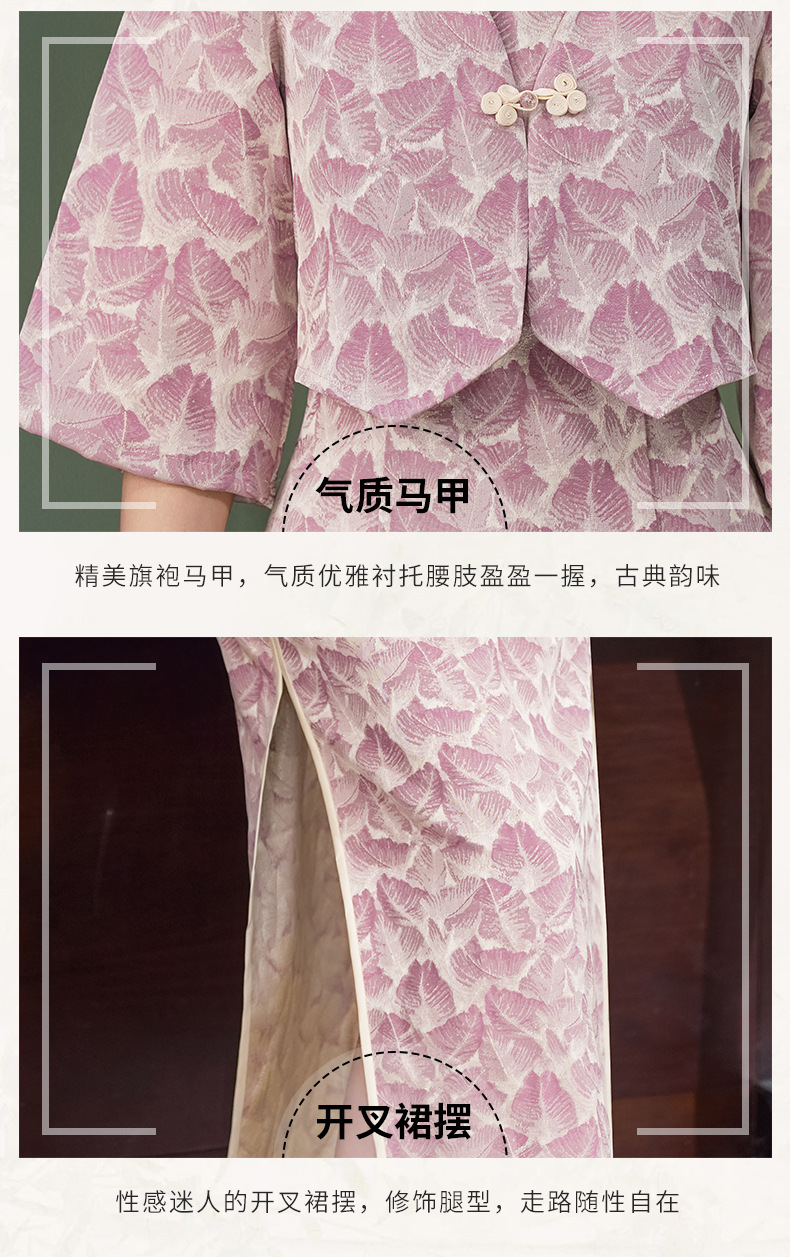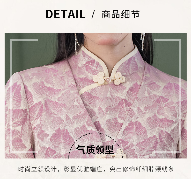 XL1102 2024年秋季新款改良旗袍日常国风修身年轻款粉色小香风气质高级感 商品图3