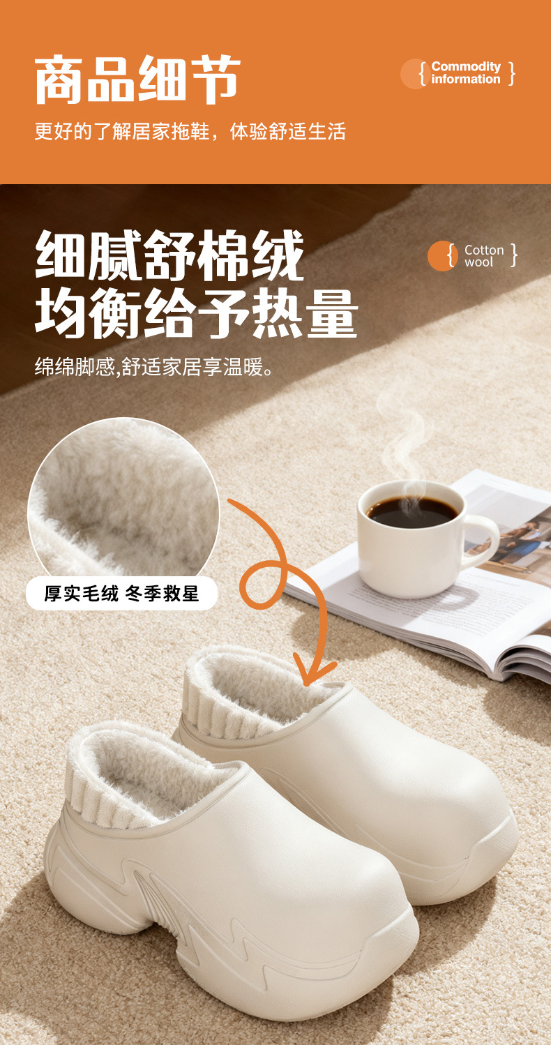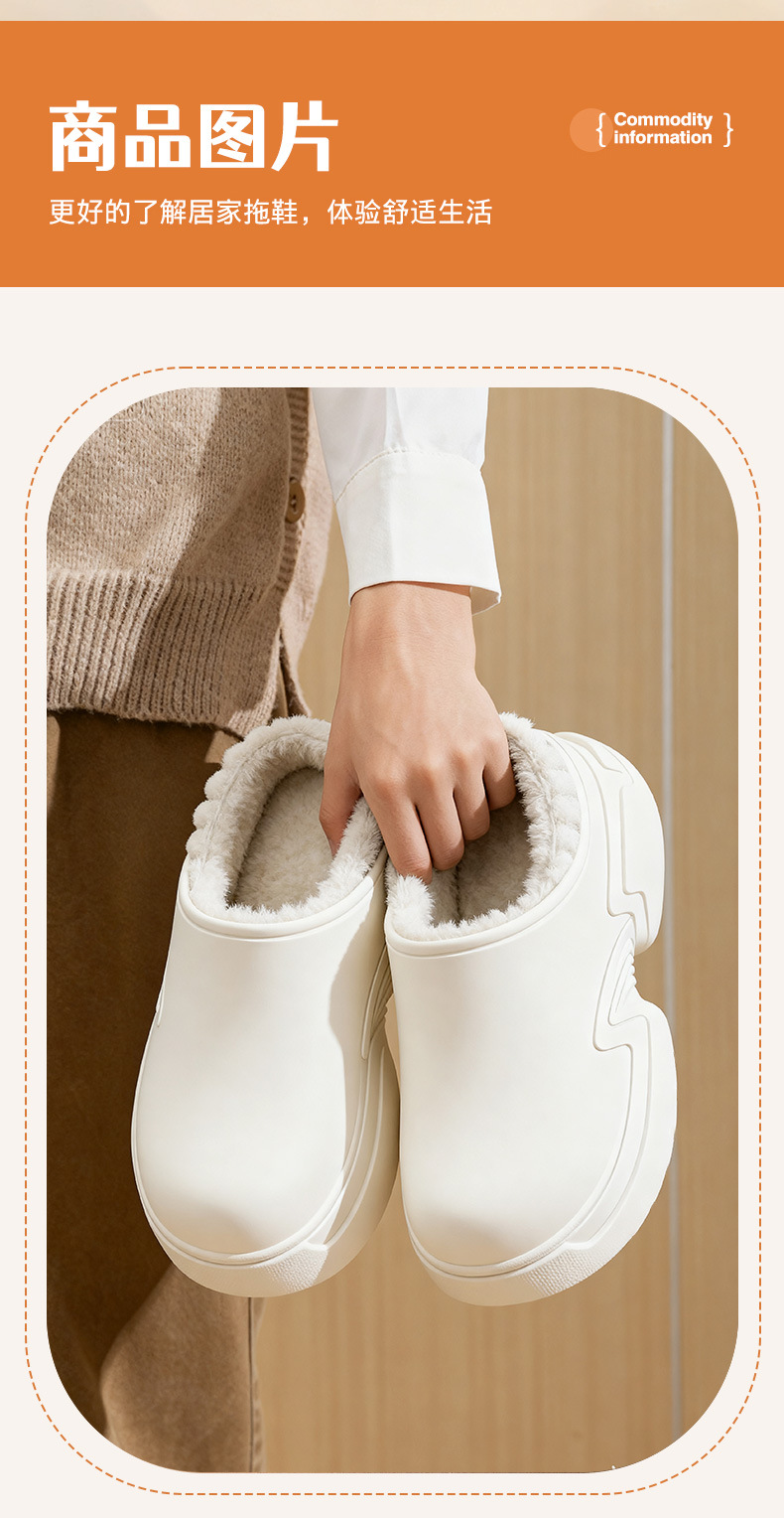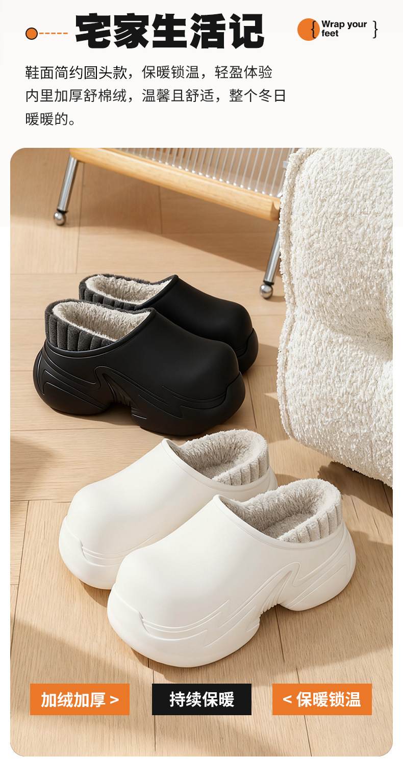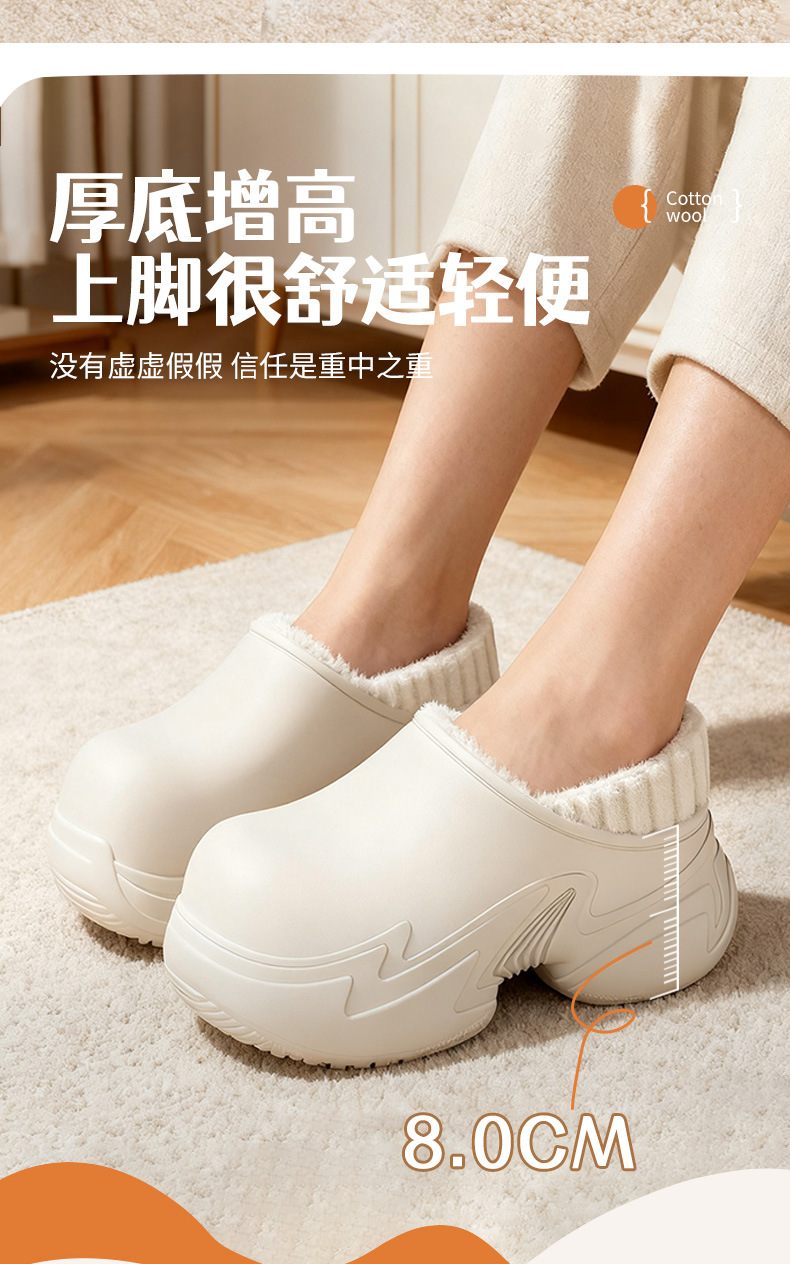 【百搭8cm增高防水❗️加绒保暖不掉毛】棉拖鞋女外穿防滑包跟家居保暖女款耐磨毛绒棉鞋冬天。hc