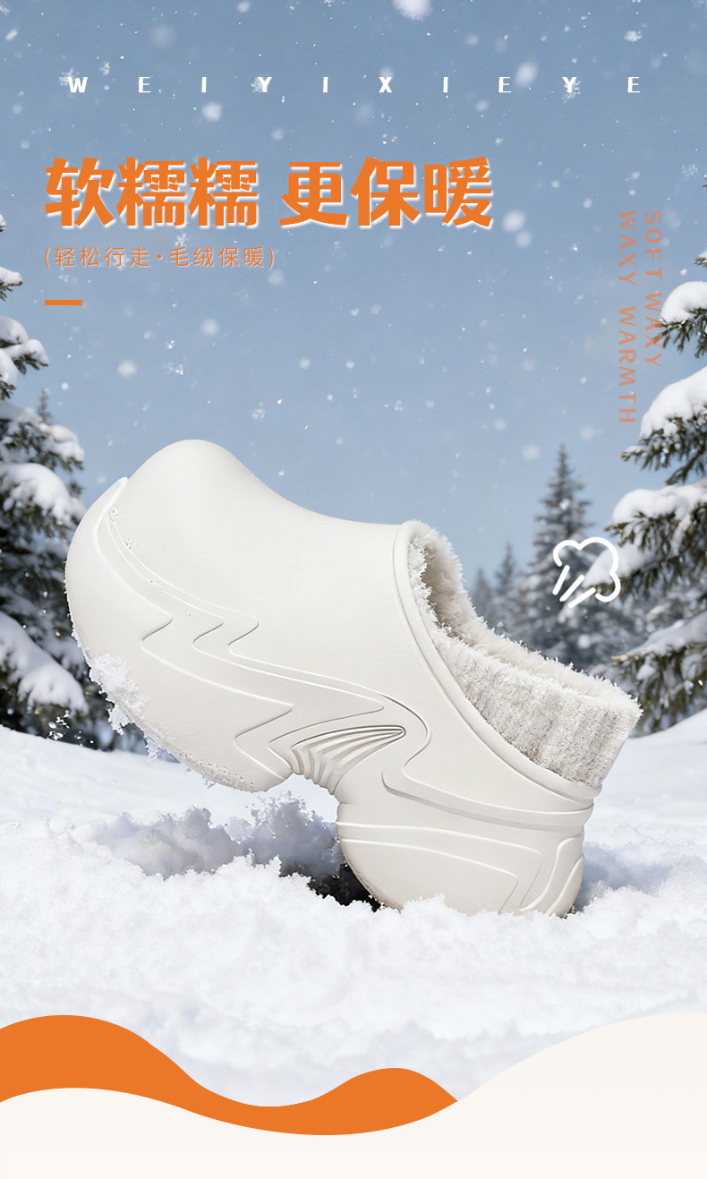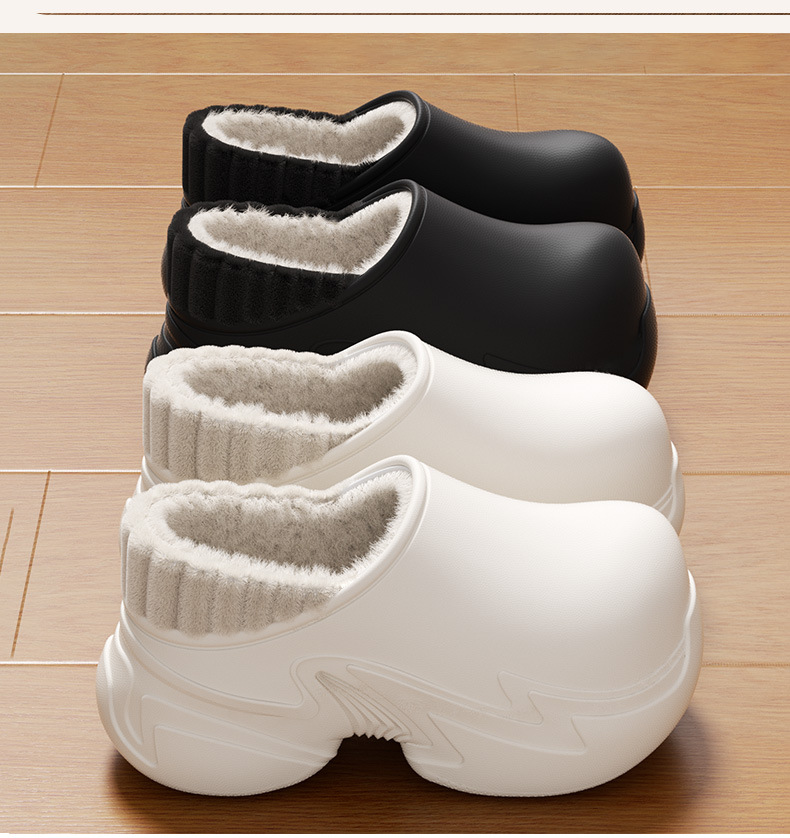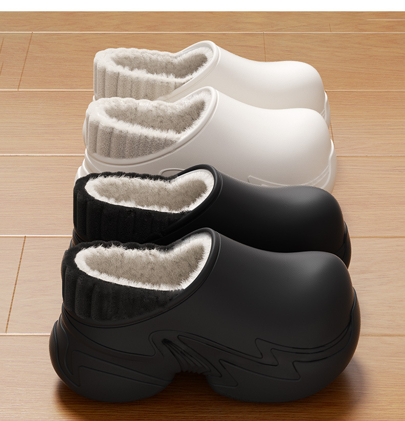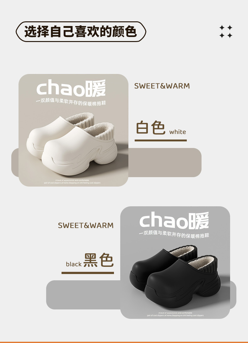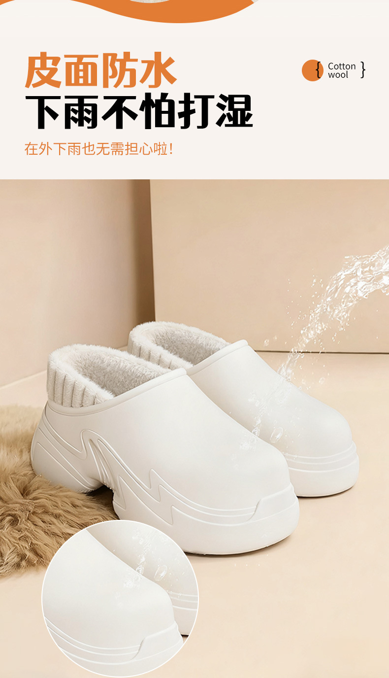 【百搭8cm增高防水❗️加绒保暖不掉毛】棉拖鞋女外穿防滑包跟家居保暖女款耐磨毛绒棉鞋冬天。hc