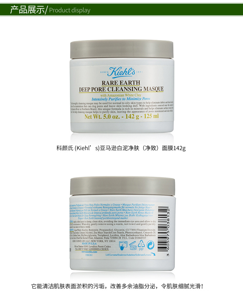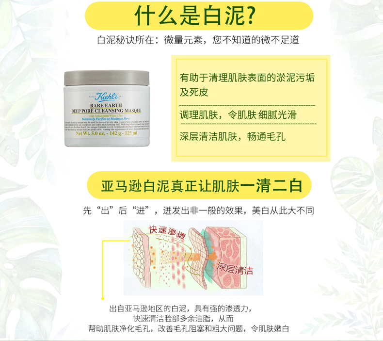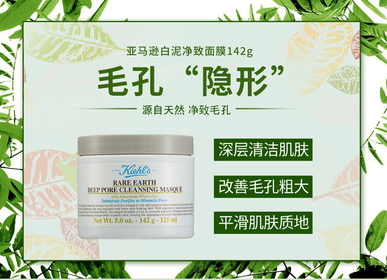 专柜355 科颜氏二代亚马逊白泥净致面膜125ml深层清洁控油去黑头